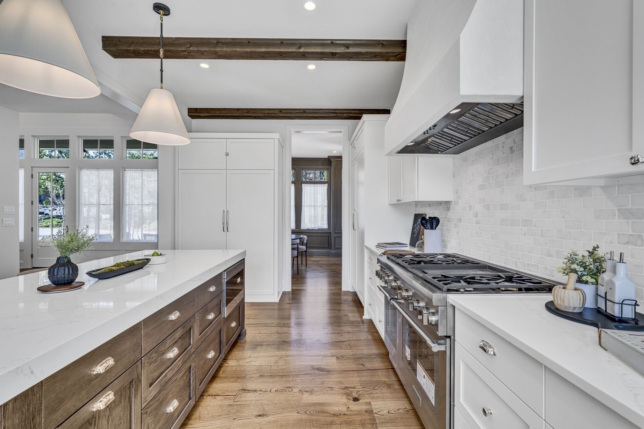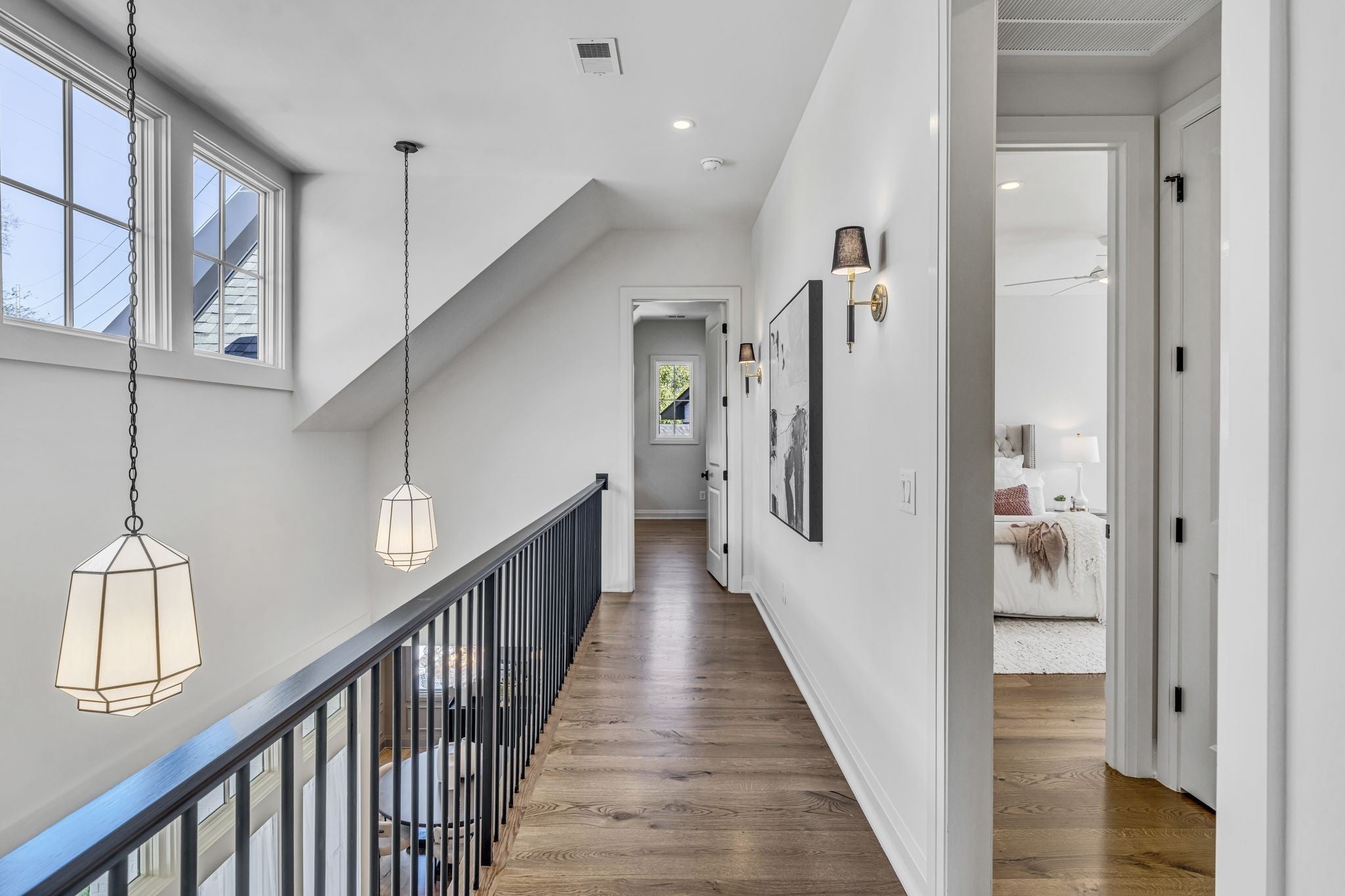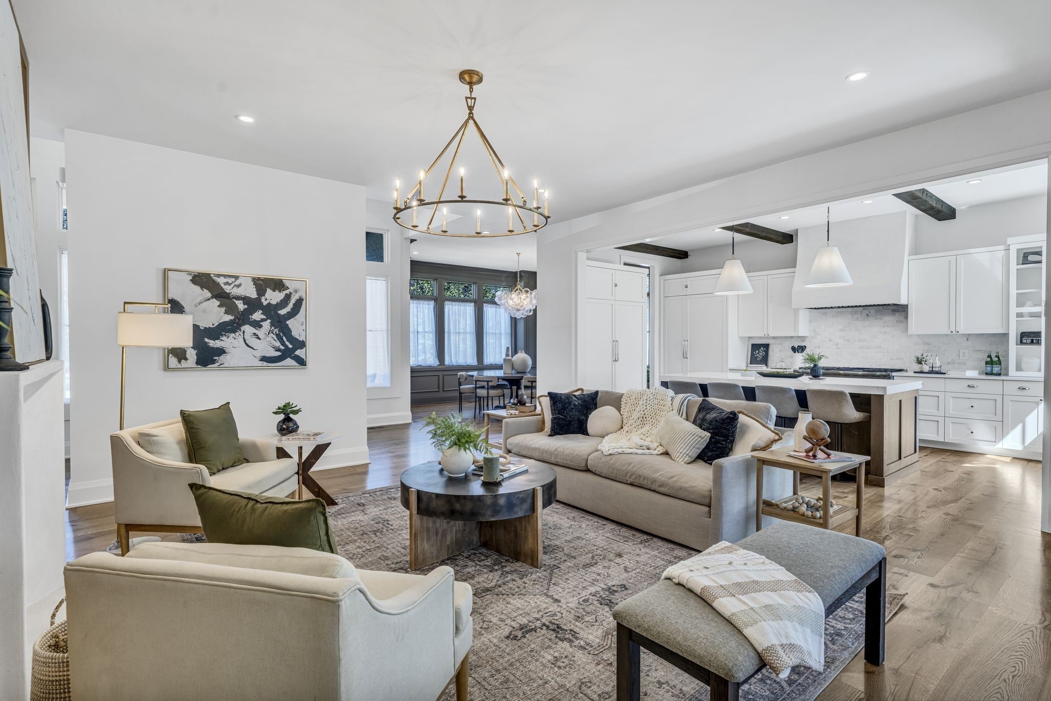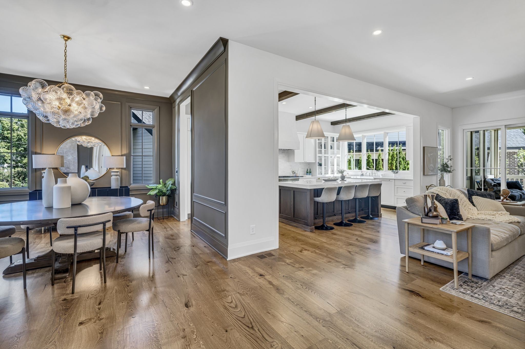 Premier location, one block from the neighborhood commercial district boasting locally owned restaurants, retail stores, rec center, a 27 hole golf course, driving range and a 2.8 mile greenway loop - Richland Creek greenway. Custom home includes extra wide 10” sand finished white oak hardwood floors throughout, custom cabinetry, multiple built-ins and elevator ready. The main level includes private guest suite, while upstairs includes primary bedroom with dual closets and two more guest suites. Upgrades include designer lighting, wood beams, stone patios, screened in porch, fully fenced yard, and electric vehicle charger wiring. Short commute to Vanderbilt, St. Thomas, downtown Nashville or Green Hills.