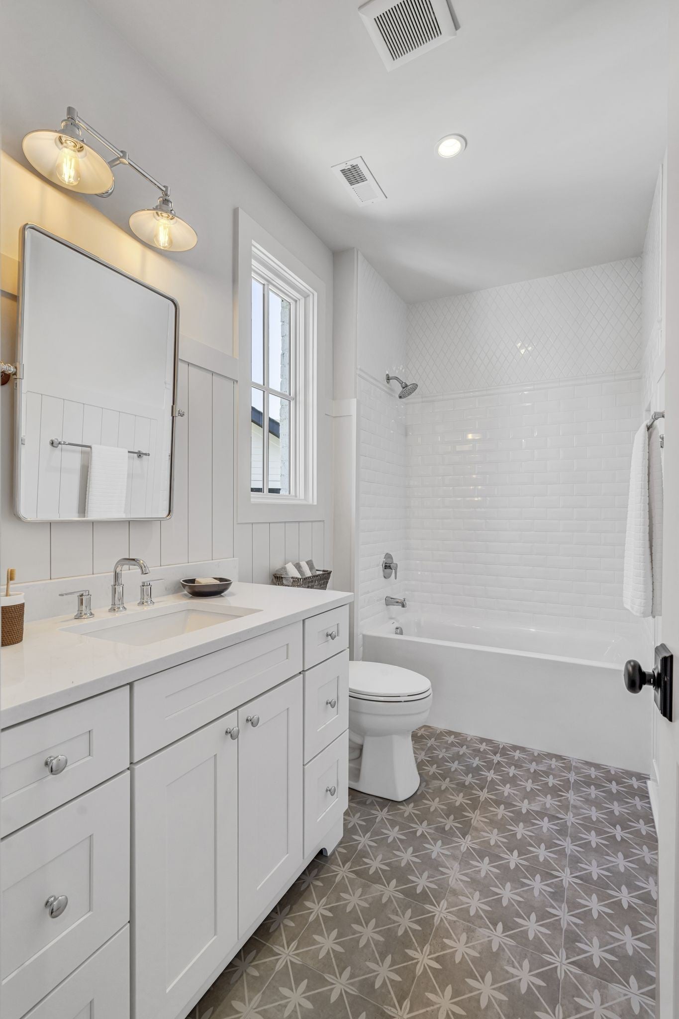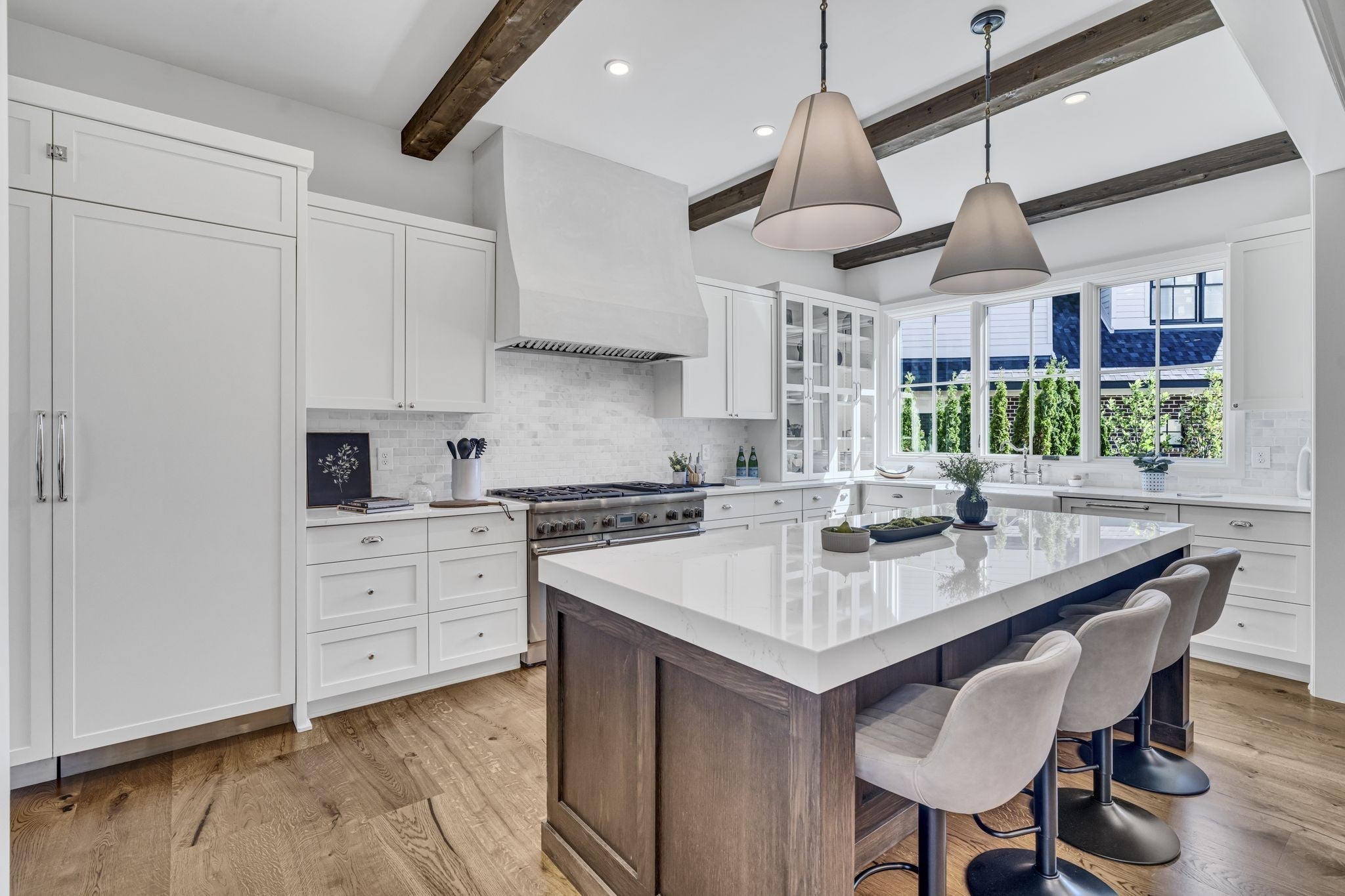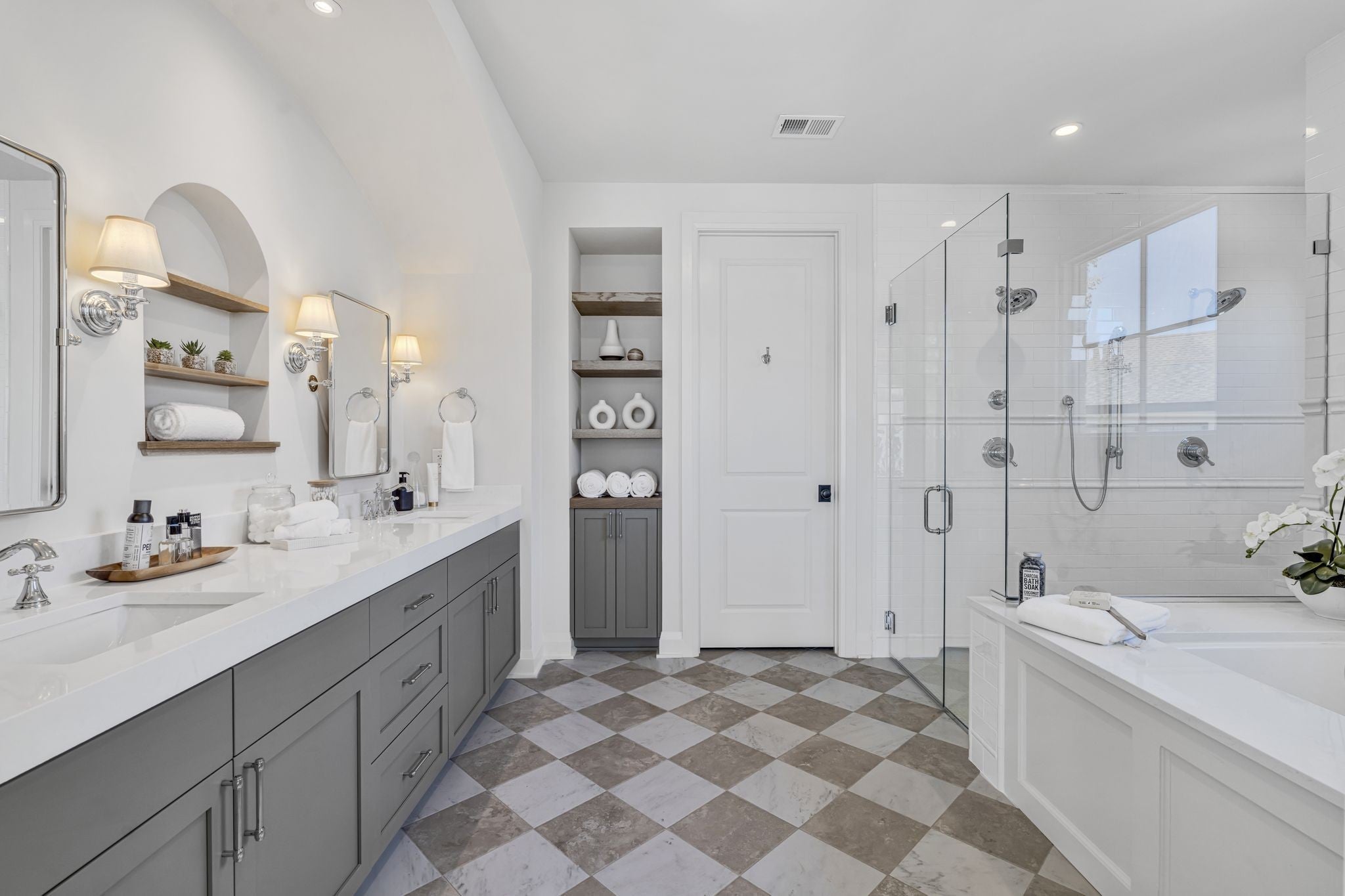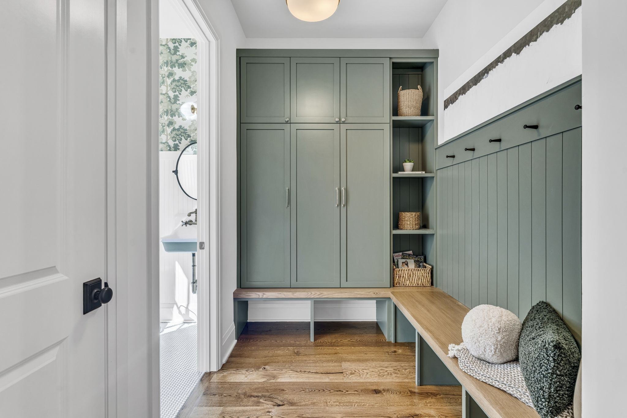 Premier location, one block from the neighborhood commercial district boasting locally owned restaurants, retail stores, rec center, a 27 hole golf course, driving range and a 2.8 mile greenway loop - Richland Creek greenway. Custom home includes extra wide 10” sand finished white oak hardwood floors throughout, custom cabinetry, multiple built-ins and elevator ready. The main level includes private guest suite, while upstairs includes primary bedroom with dual closets and two more guest suites. Upgrades include designer lighting, wood beams, stone patios, screened in porch, fully fenced yard, and electric vehicle charger wiring. Short commute to Vanderbilt, St. Thomas, downtown Nashville or Green Hills.