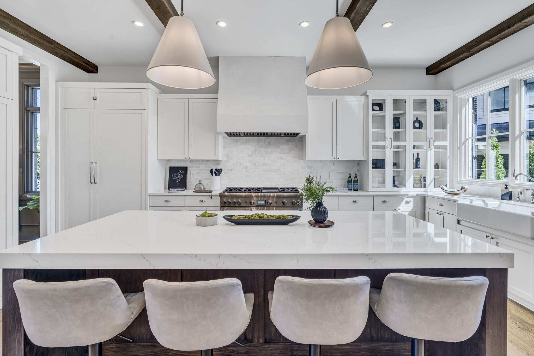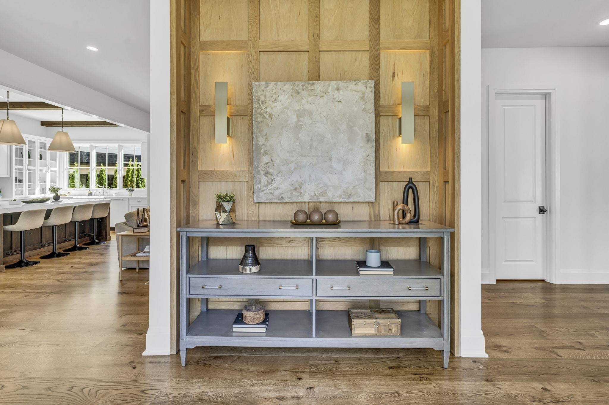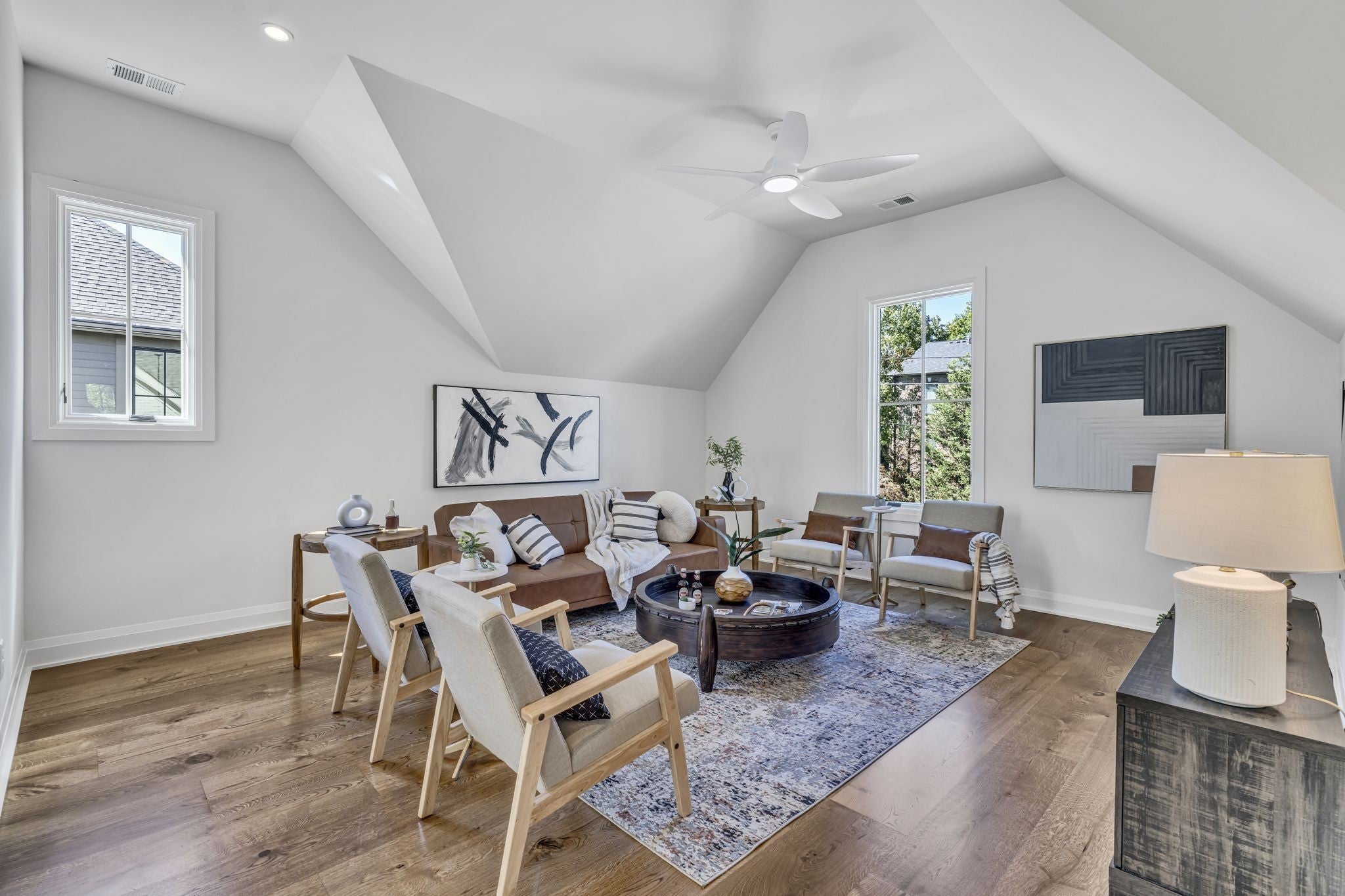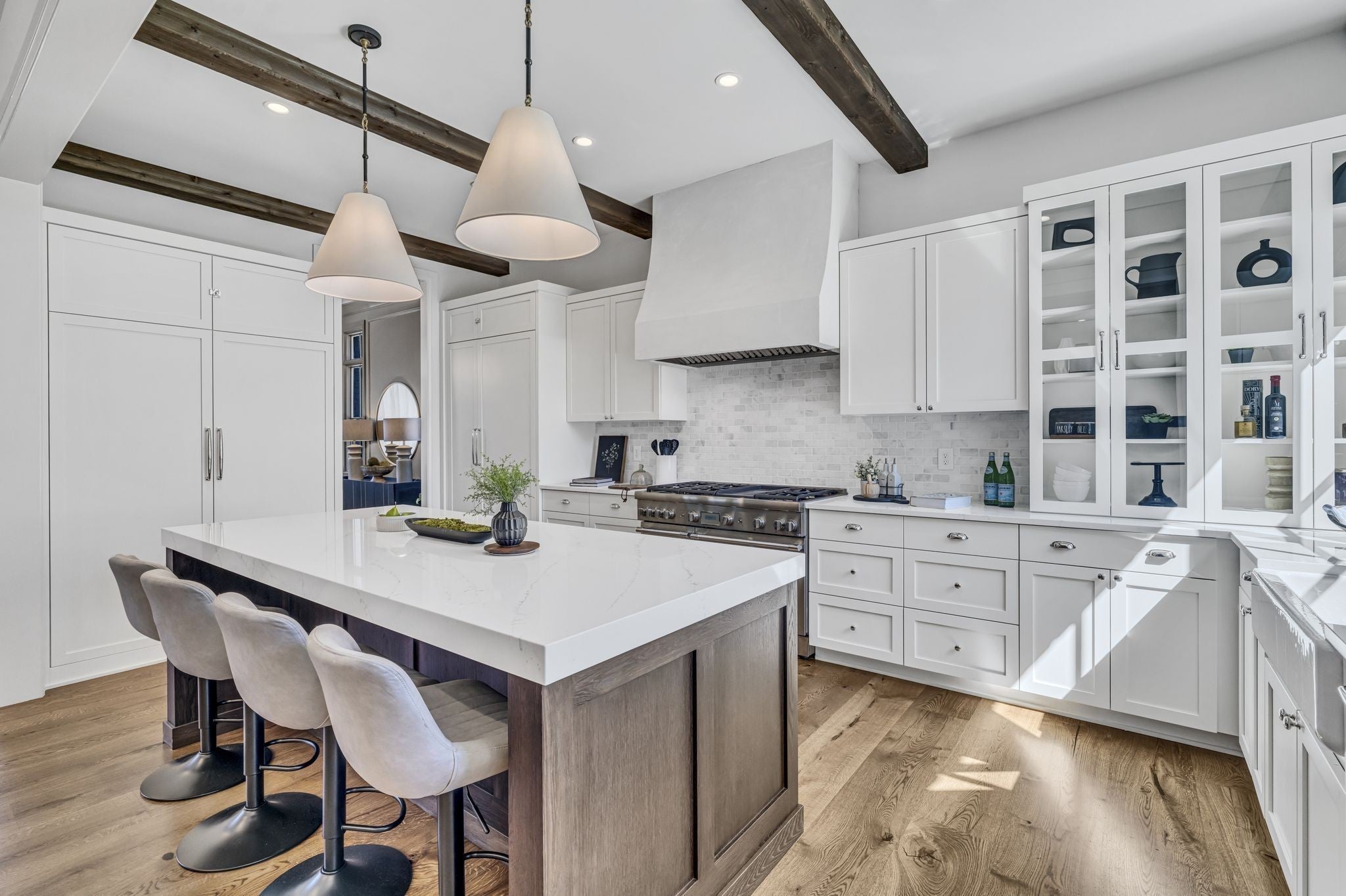 Premier location, one block from the neighborhood commercial district boasting locally owned restaurants, retail stores, rec center, a 27 hole golf course, driving range and a 2.8 mile greenway loop - Richland Creek greenway. Custom home includes extra wide 10” sand finished white oak hardwood floors throughout, custom cabinetry, multiple built-ins and elevator ready. The main level includes private guest suite, while upstairs includes primary bedroom with dual closets and two more guest suites. Upgrades include designer lighting, wood beams, stone patios, screened in porch, fully fenced yard, and electric vehicle charger wiring. Short commute to Vanderbilt, St. Thomas, downtown Nashville or Green Hills.