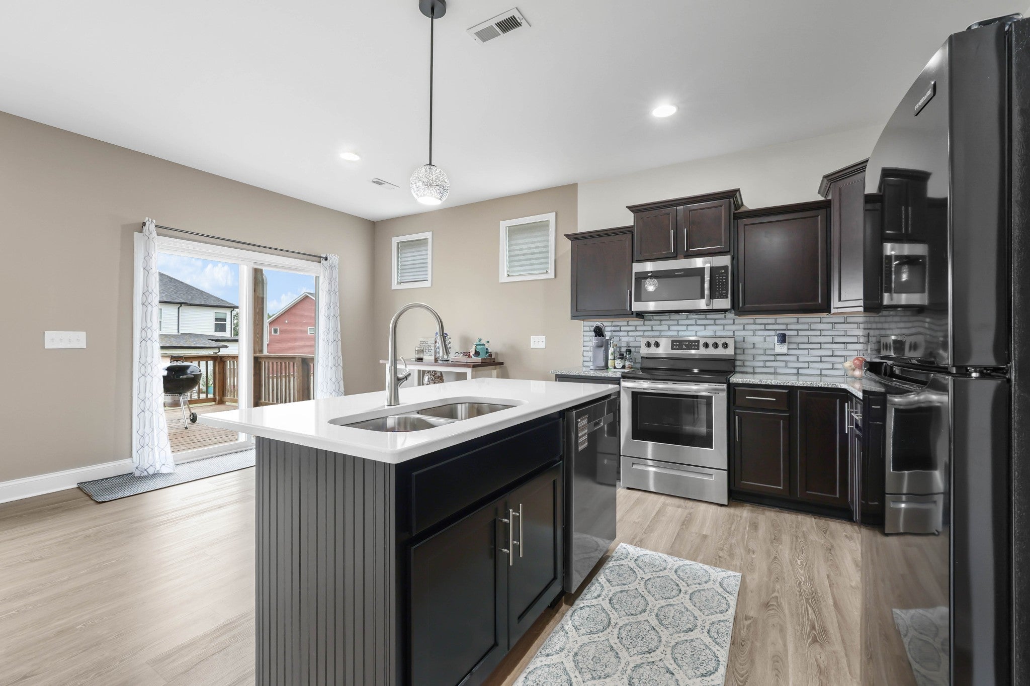 - Oven, Range, Dishwasher, Disposal, Microwave, Refrigerator, Stainless Steel Appliance(s)