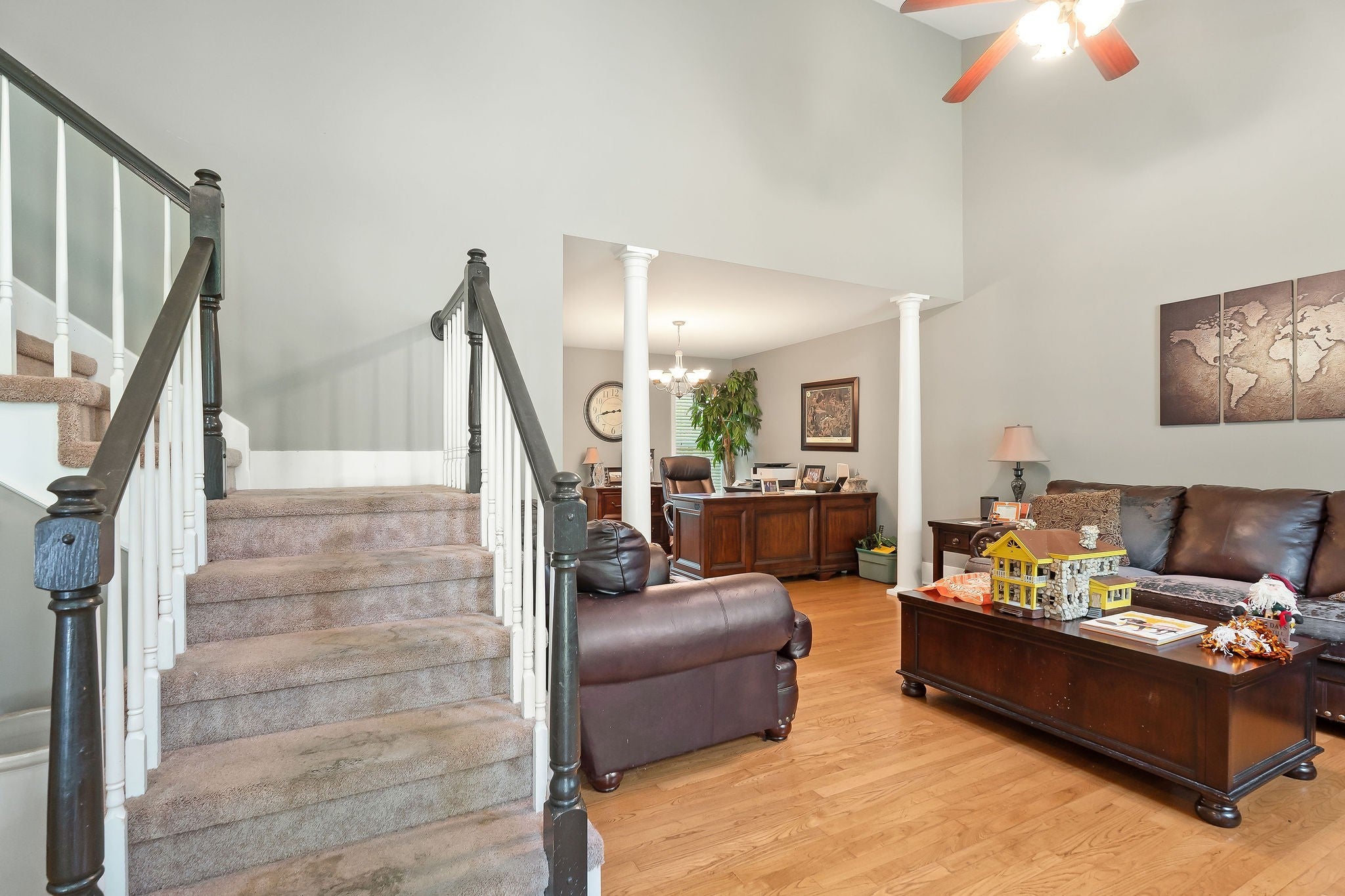 Enjoy peaceful golf course living with a scenic view of Hole 8 green at White Plains Golf Course—ideally situated to enjoy the scenic view while remaining safely distanced from errant golf balls. This well-appointed home features hardwood flooring throughout the main level and a cozy gas fireplace that adds warmth and charm to the living space. The finished walkout basement is set up as a movie room, offering a perfect retreat for entertaining or relaxing. Step outside to a covered back porch overlooking the serene landscape. Residents enjoy access to community amenities including a pool and tennis courts, all for a low annual HOA fee of just $200. Located in one of Cookeville’s most desirable neighborhoods, this property offers the perfect blend of comfort, privacy, and lifestyle.