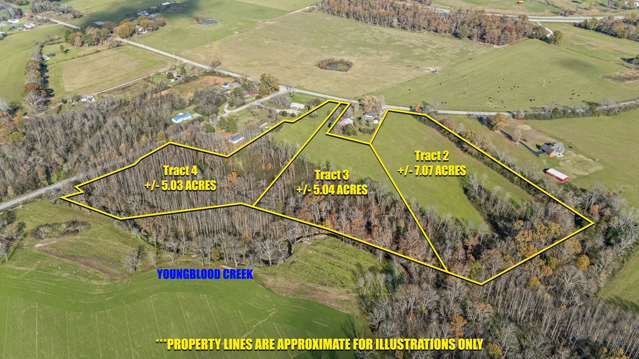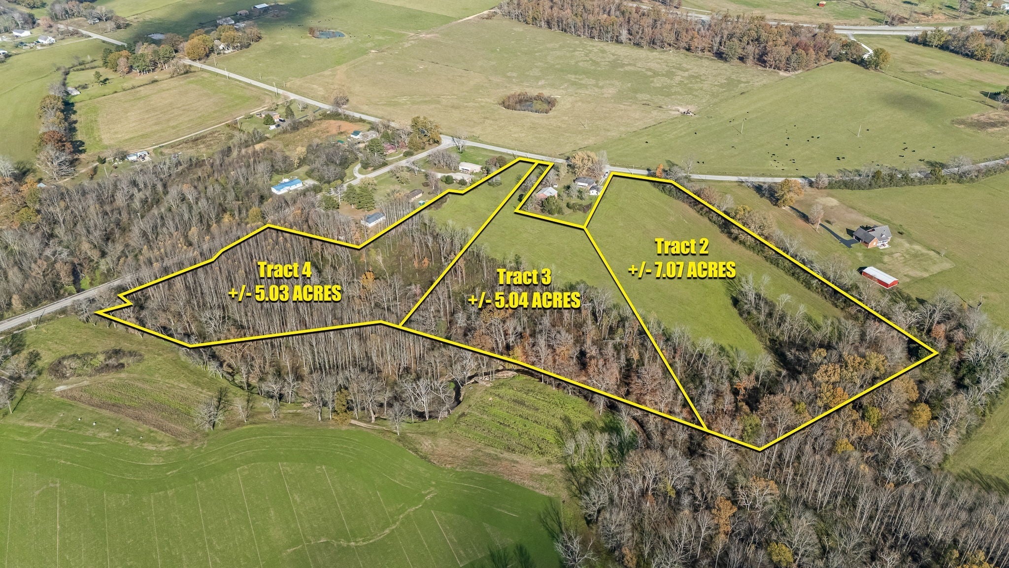 17.14 acres with road frontage on both Old McMinnville Hwy as well as Pleasant View Rd. Acreage is broken into 3 tracts - Tract 2 is 7.07 acres with a 4 bdrm perc site (MLS # 2972462), Tract 3 is 5.04 acres with a 3 bdrm perc site (MLS # 2972465) and Tract 4 is 5.03 acres with a 3 bdrm perc site (MLS # 2972467). Tracts 3 and 4 have creek access, Tract 2 does not. Tract 4 has road frontage on both Old McMinnville Hwy. and Pleasant View Rd. Tract 4 also has an old spring house and spring on it. Mostly level with both cleared and wooded landscape. Beautiful setting for your dream home surrounded by beautiful farmland. A small portion of Tracts 3 & 4 are in a flood plain down by the creek. See attached survey marking the area. Come see... you won't be disappointed. Make sure to watch the video for a better overall feel of this land.