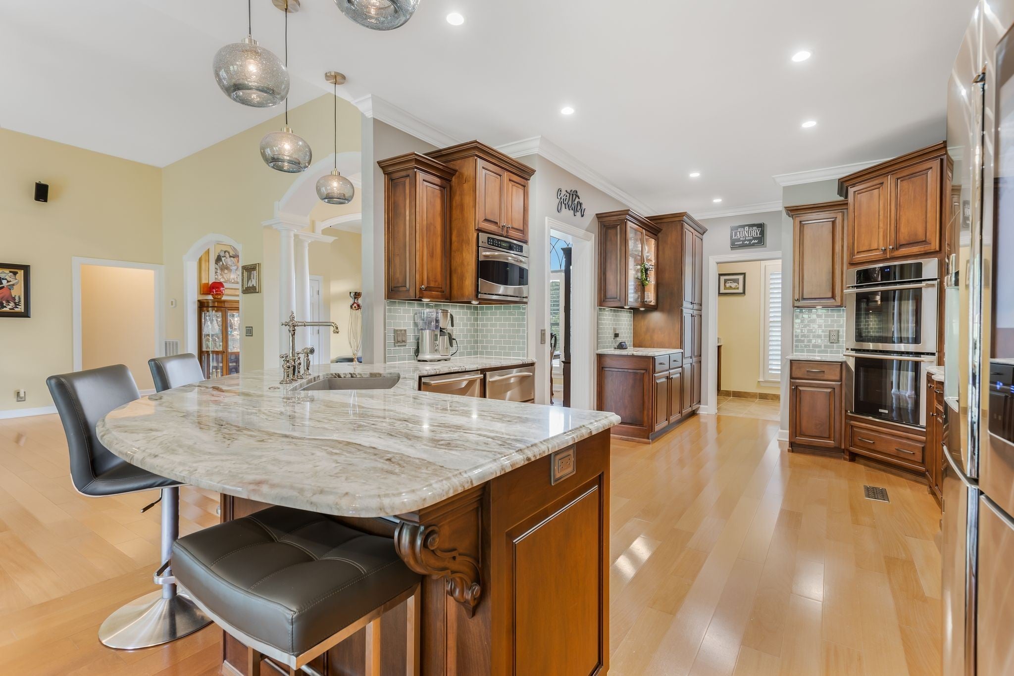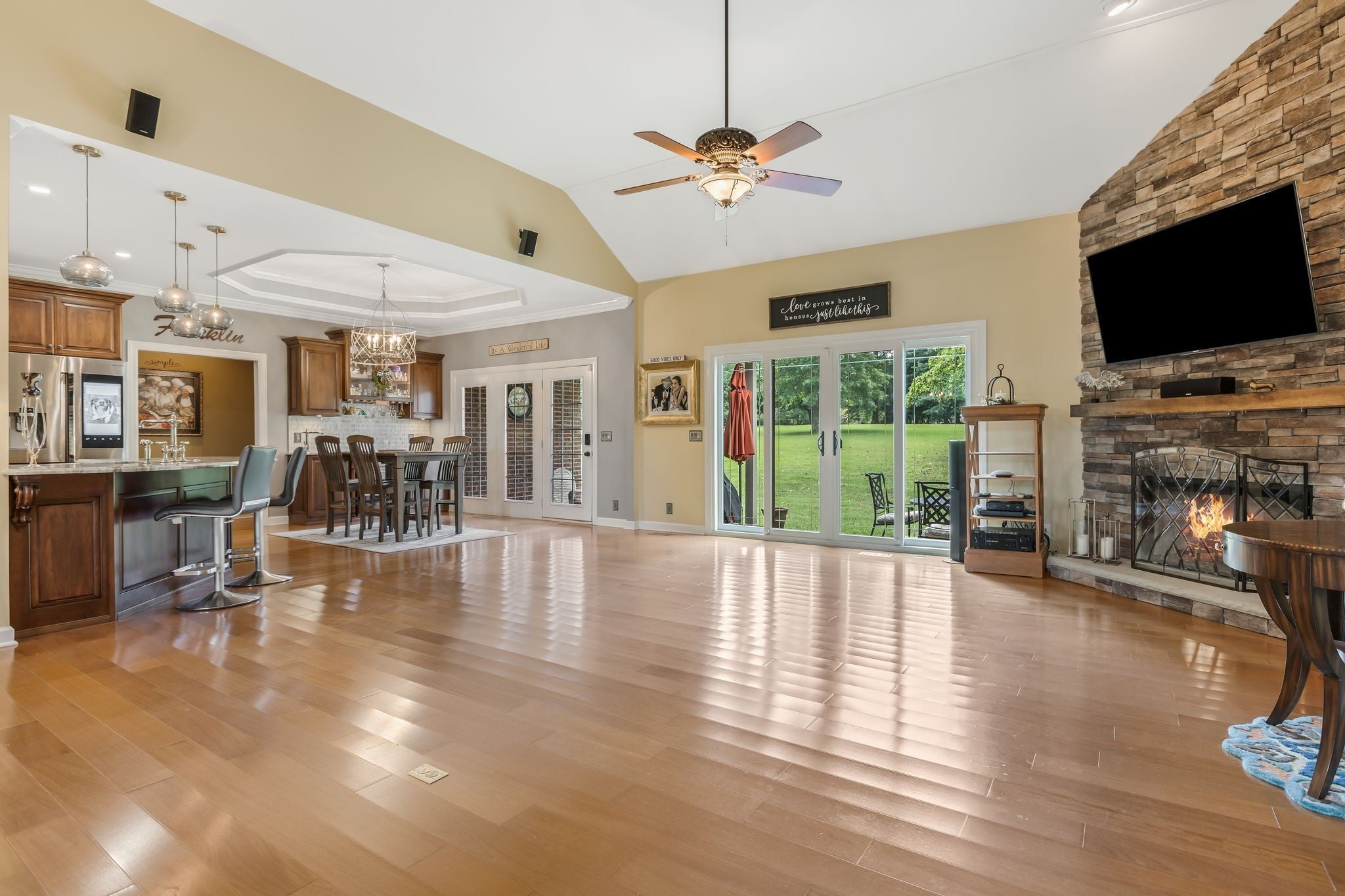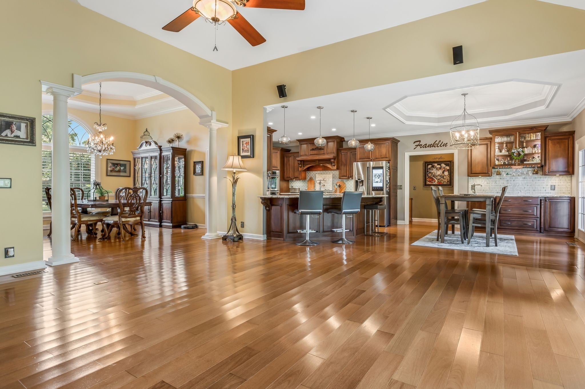 Welcome to this beautifully renovated single-level home in the highly-sought-after Barrington Estates. Situated on a spacious 1.26-acre lot, this 3400+ sq. ft. residence offers a perfect blend of timeless charm and modern updates. Featuring 3 en-suite bedrooms, each with a full bath and walk-in closet, plus 2 additional half-baths, this home provides comfort and privacy for all. The open-concept floor plan boasts gleaming hardwood floors throughout, a light-filled living area, and a versatile bonus room upstairs. The gourmet kitchen with custom cabinets flows seamlessly into the Main living and dining spaces, perfect for entertaining. The primary suite includes a California Closets custom design, while the updated bath showcases high-end finishes.Located minutes from historic downtown Franklin, top-rated schools, and local amenities, this move-in ready property offers the ideal combination of space, style, and convenience.