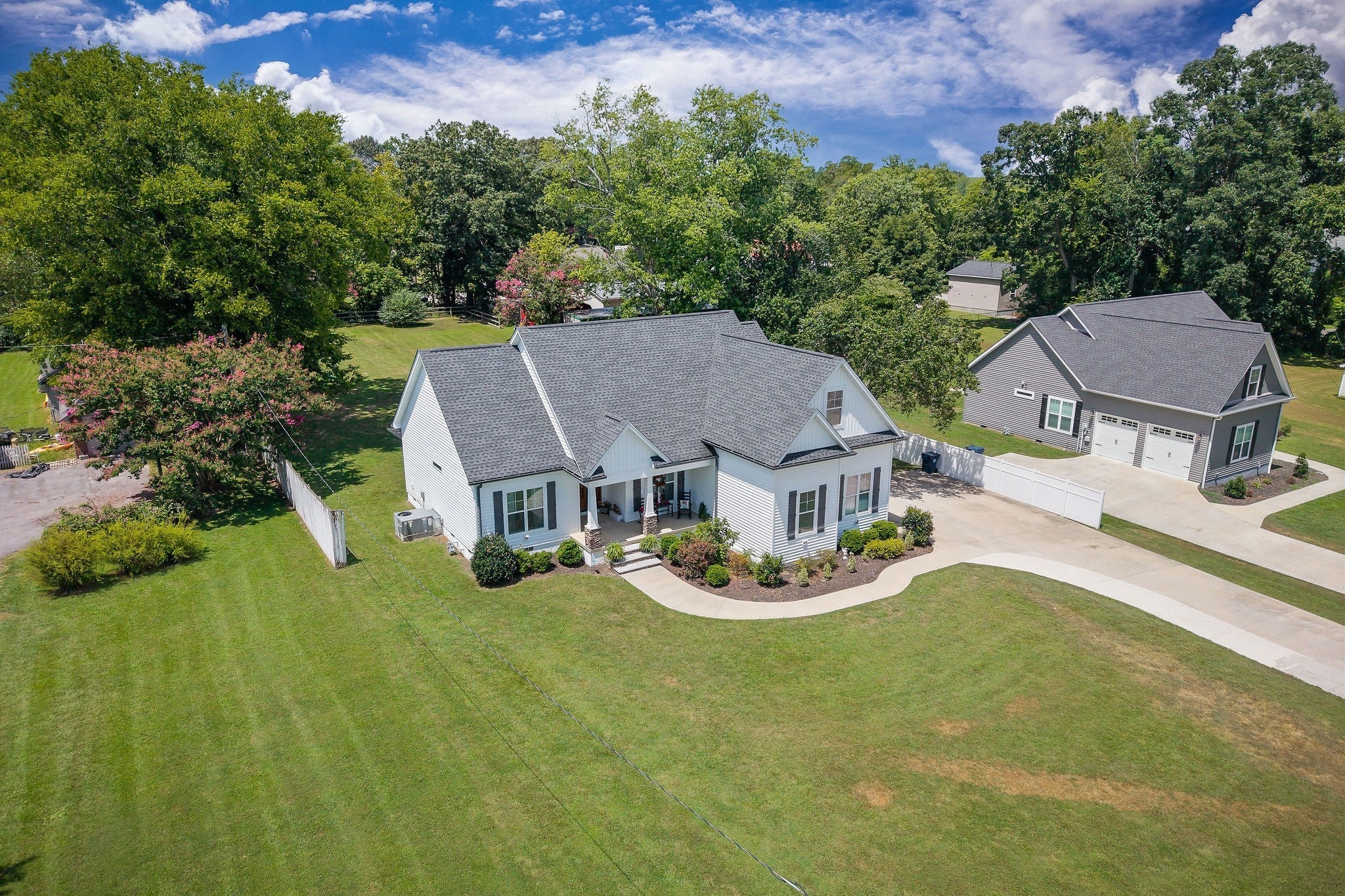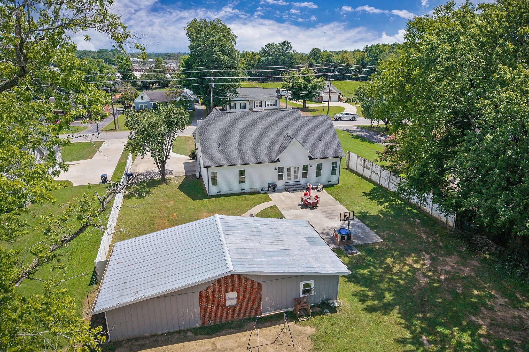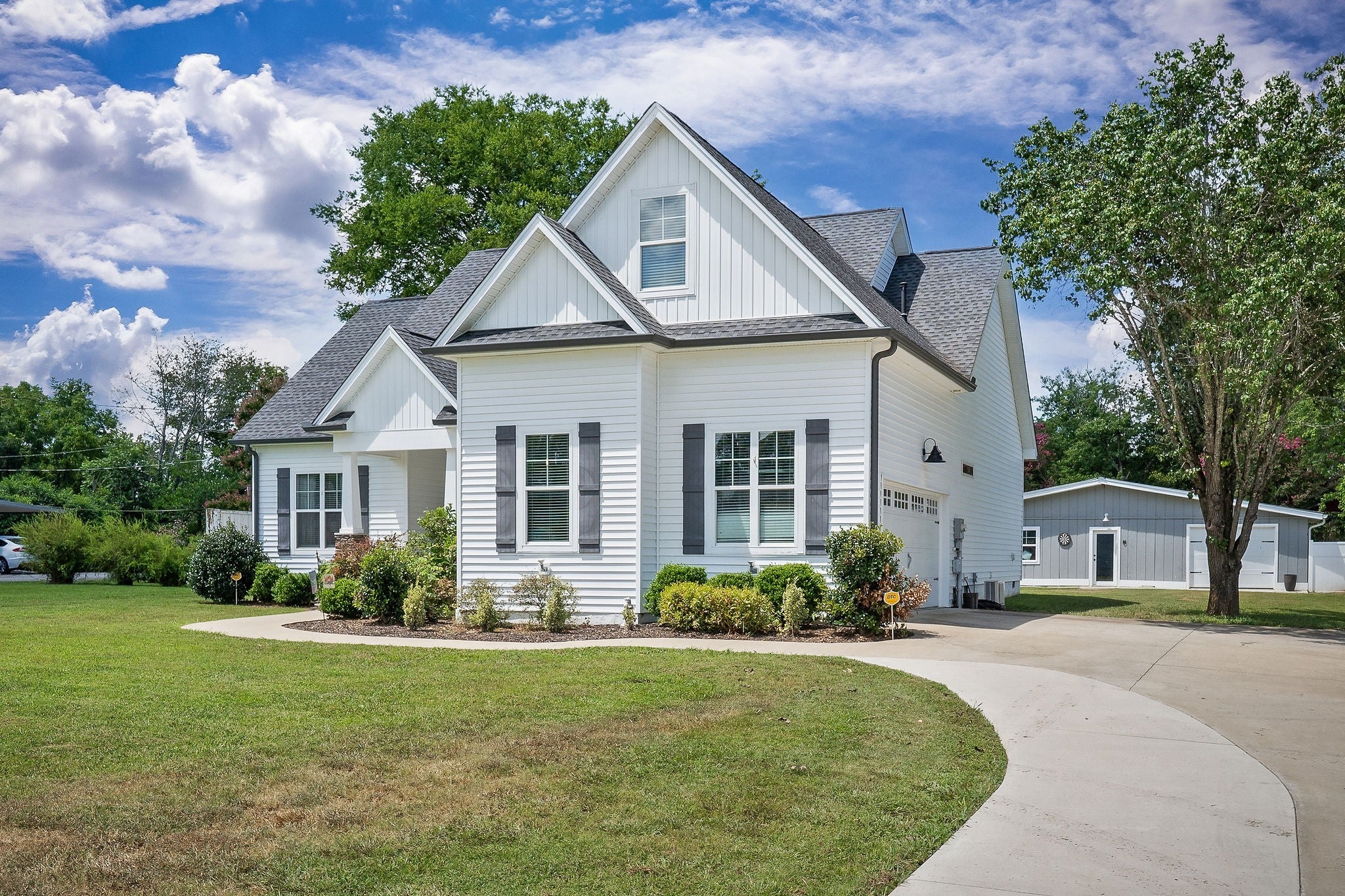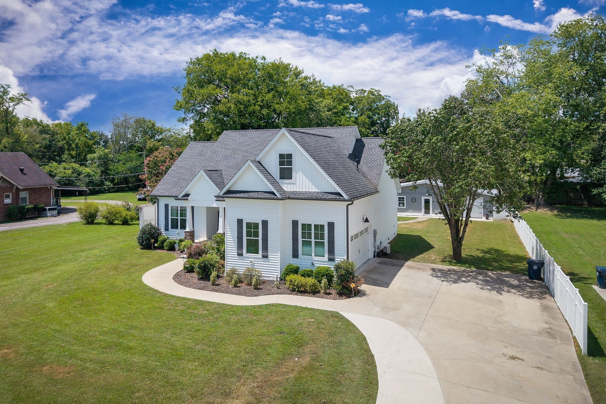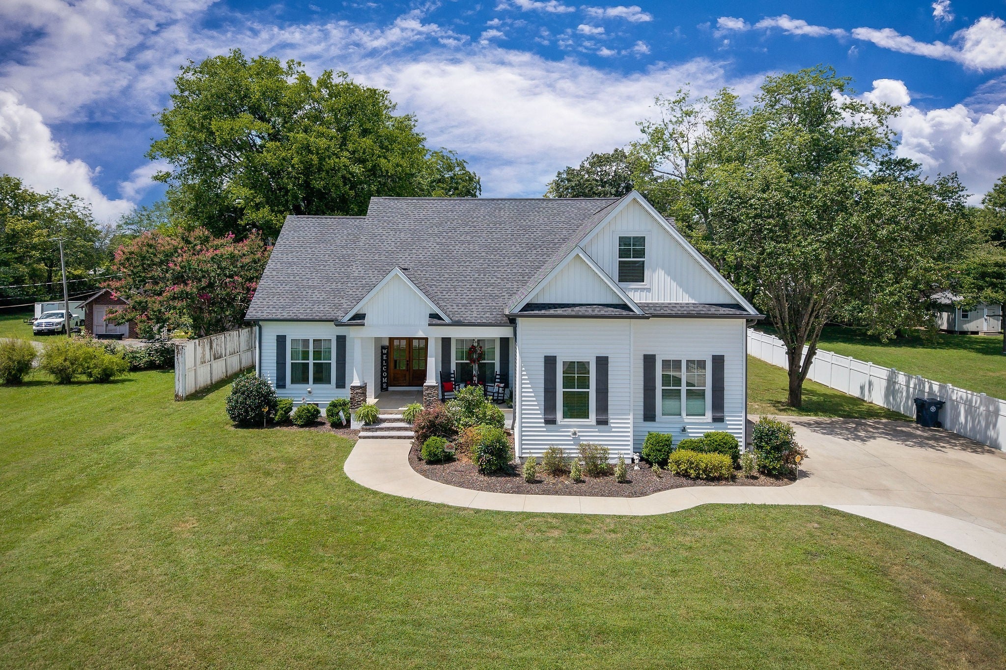 Looking for a high-end, spacious home with 4 bedrooms, 2 baths with an open concept design in a desirable neighborhood? This split bedroom plan offers privacy, with 3 bedrooms on the main level with the upstairs leading right into a large 4th bedroom, or recreation room, and/or an office which is equipped with a closet and dual heat & air. The kitchen has plenty of counter space for meal prep, and a pantry, that opens into a spacious living room & a dining area which is perfect for entertaining guests & family with recessed lighting throughout. The utility room leads into the oversized 2 car garage, providing ample storage space. The large walk-in attic with some flooring offers even more storage options. Situated in a convenient & sought after location, this property features a concrete driveway, and beautiful landscaping surrounding the sidewalk that leads to the beautiful front porch. The spacious back yard, which extends all the way to the back street, providing two road frontages for added convenience. In back the large concrete patio and walkway lead to a unique building with 3 separate entrances with electricity. The first entrance could be used as a workshop/ work space, the middle entrance features sheetrock and recessed lights as well as a cooling unit, making this perfect for an office or entertainment space, or even living quarters, the third entrance includes a garage door, ideal for working on vehicles or as an additional workshop area. Unlimited choices/multi usage with this building. The huge backyard also features an outdoor swing set, perfect for family enjoyment and cookouts while enjoying the firepit on those cool, crisp nights roasting marshmallows. This property offers the best of both worlds - quick access to town amenities & a nearby park, while still providing a peaceful and private retreat in the back yard. Built in 2019, this home still looks brand new. Located about one hour to Nashville & minutes to Center Hill Lake.