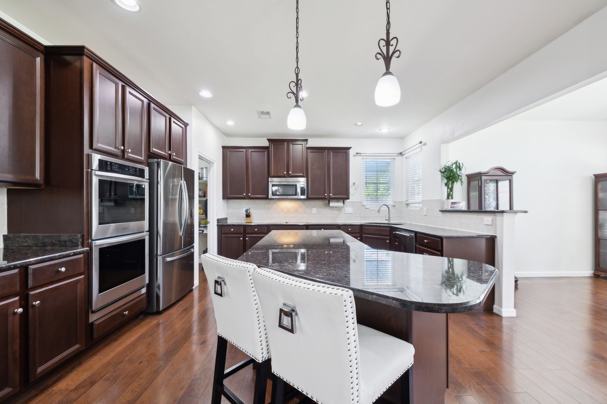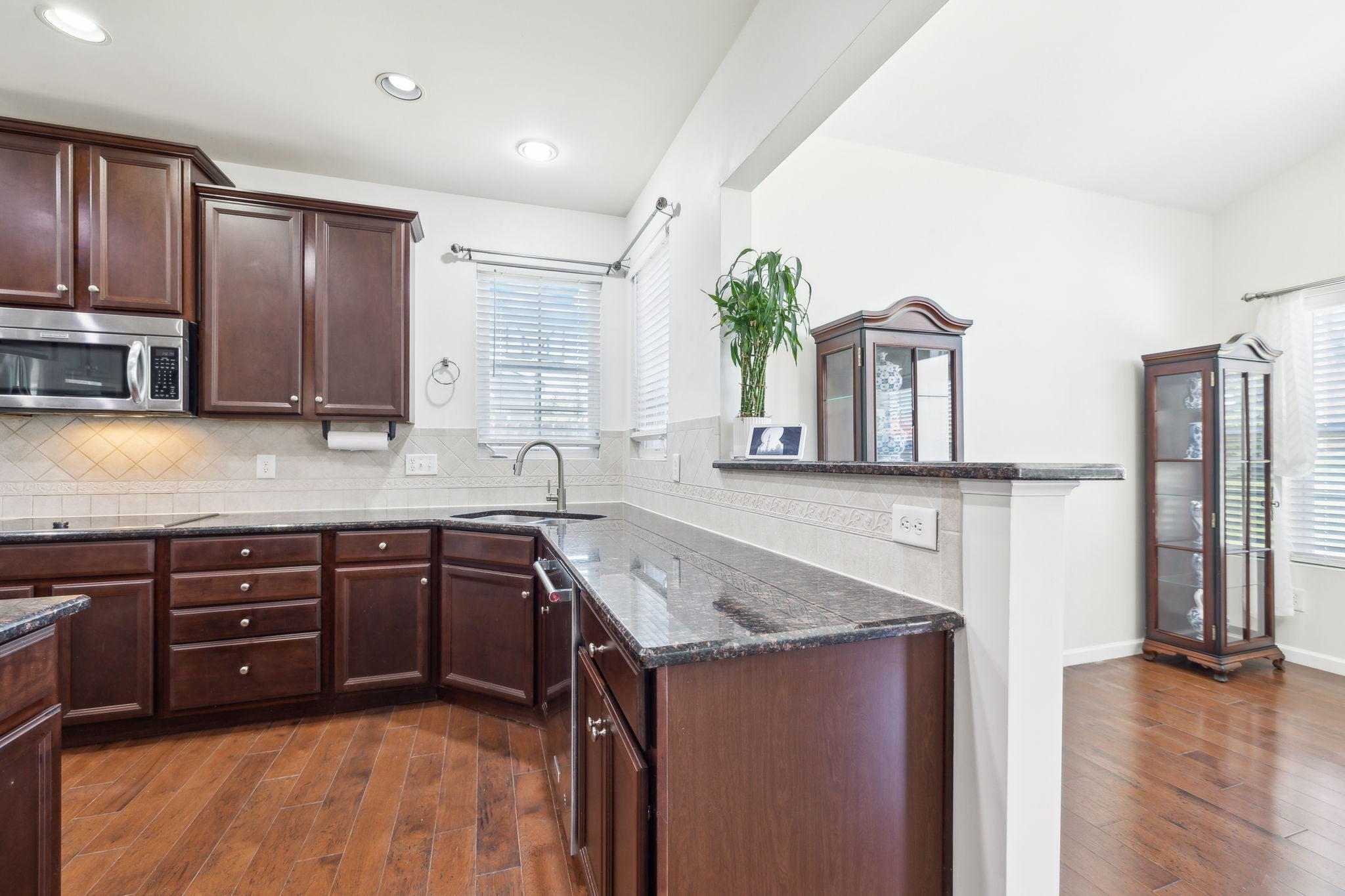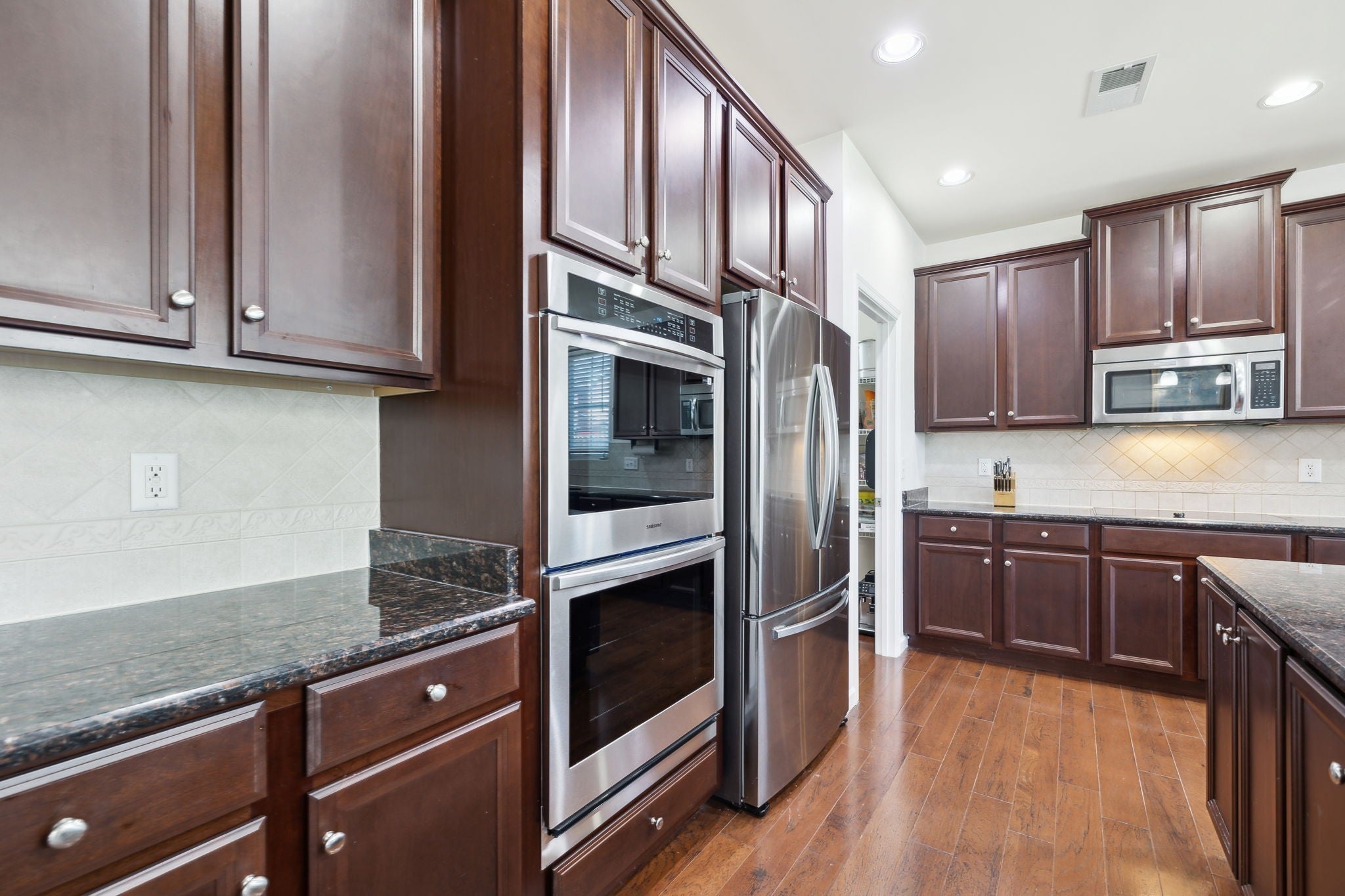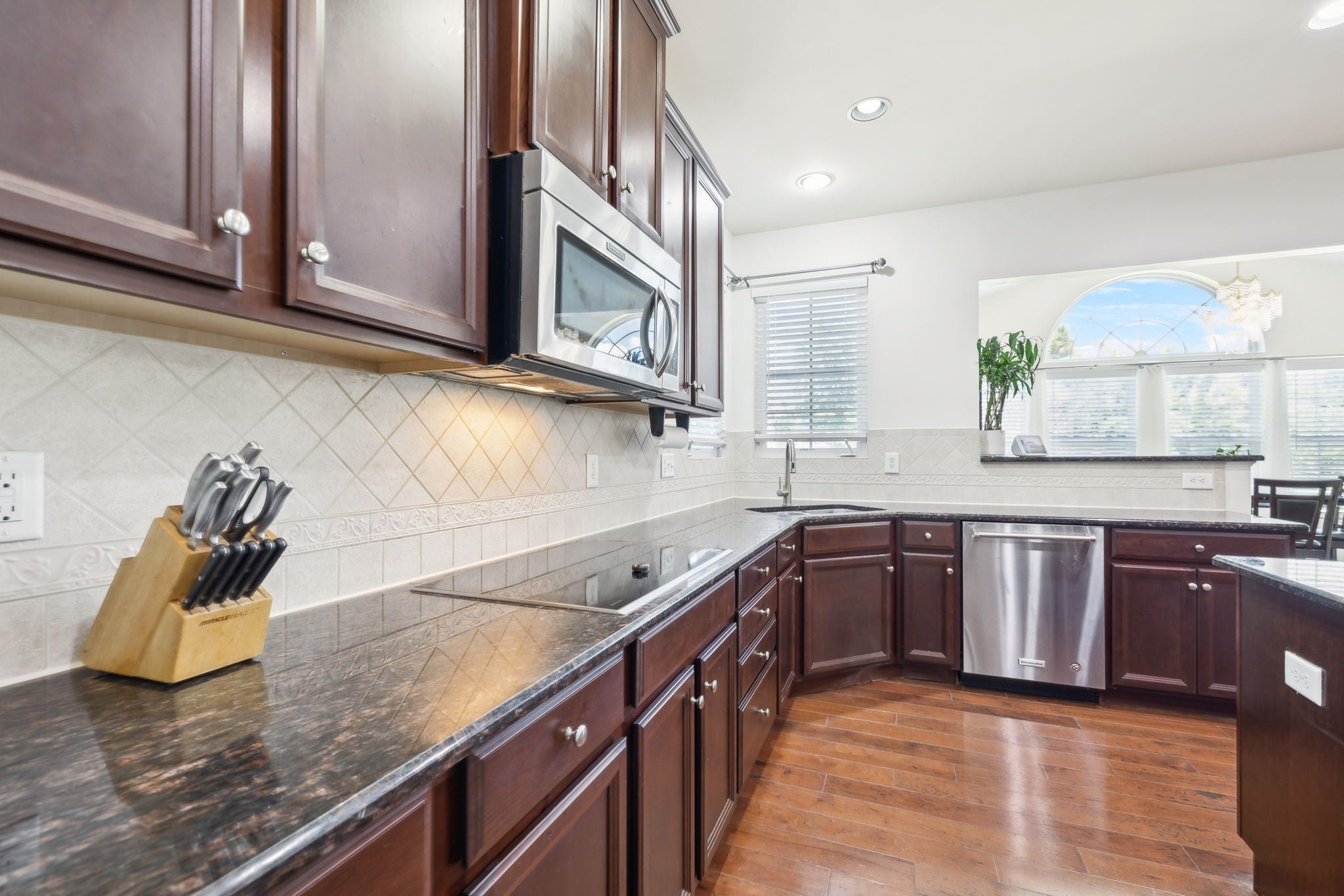 - Double Oven, Cooktop, Dishwasher, Disposal, Microwave