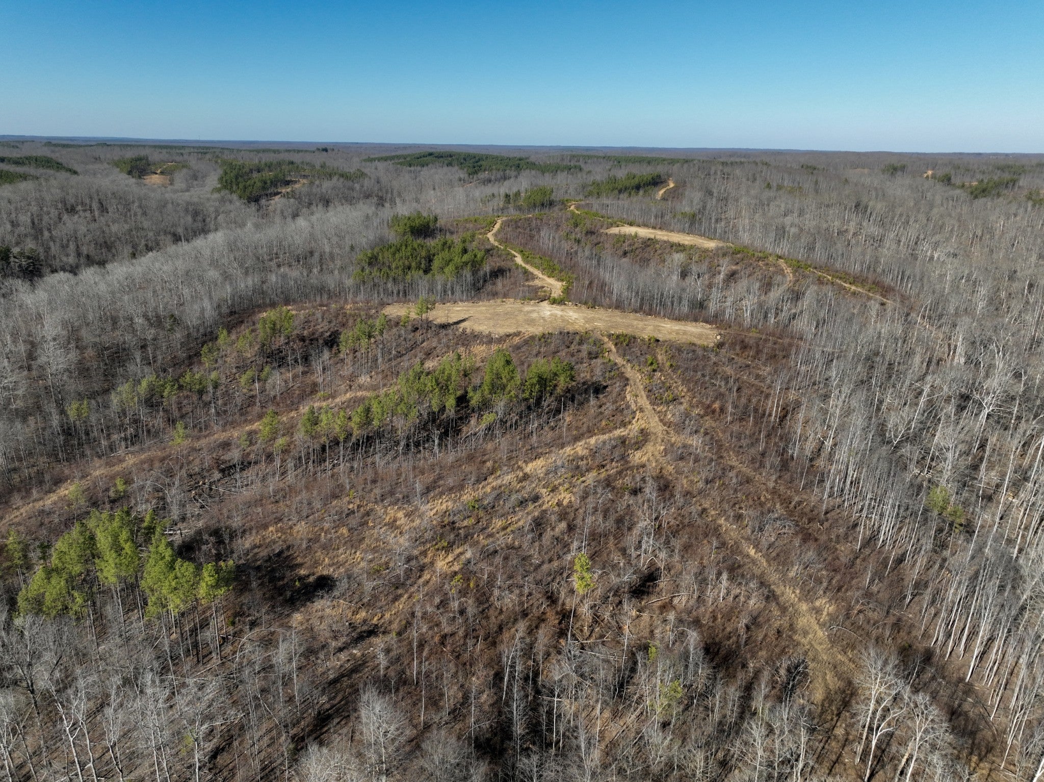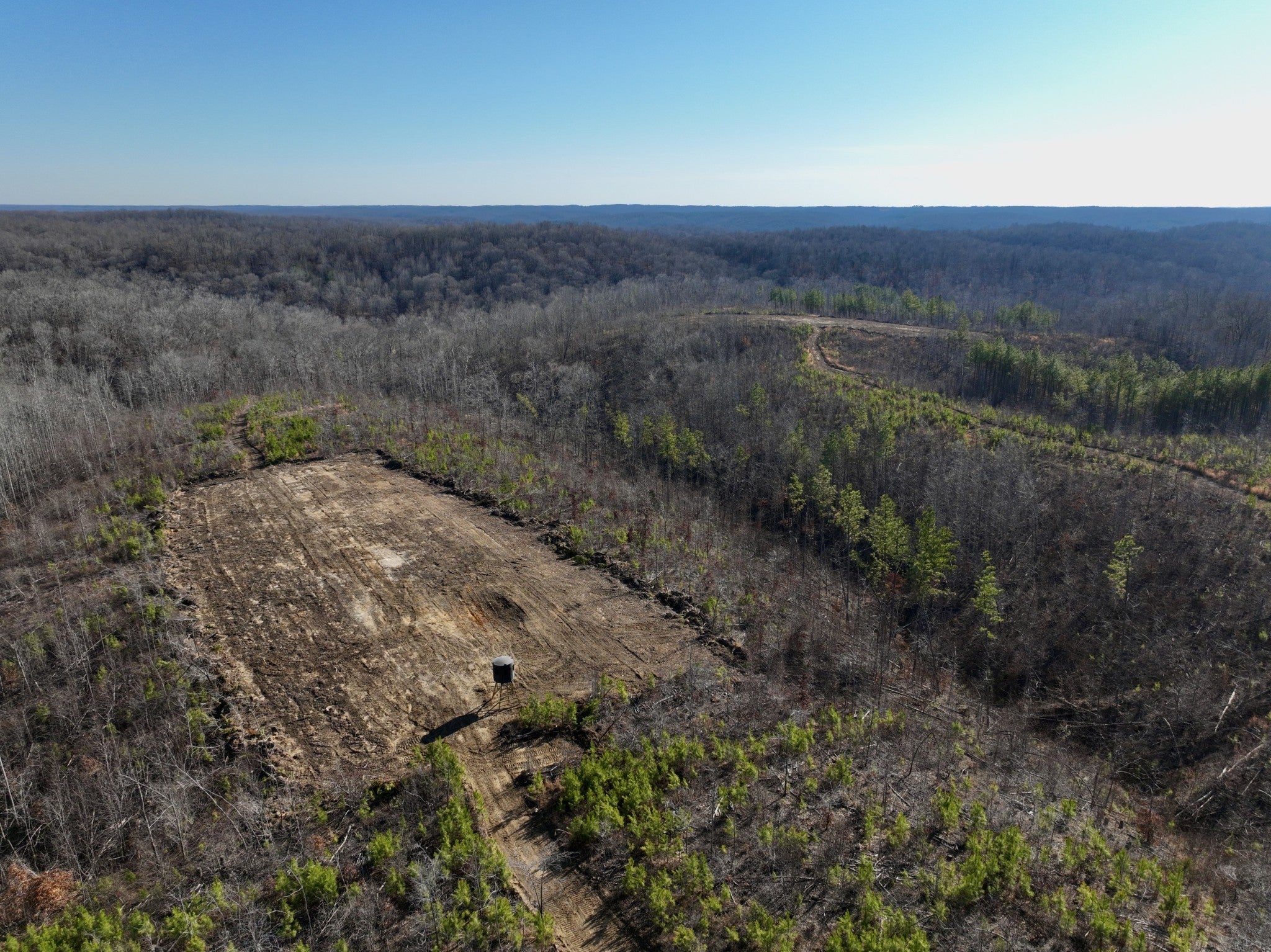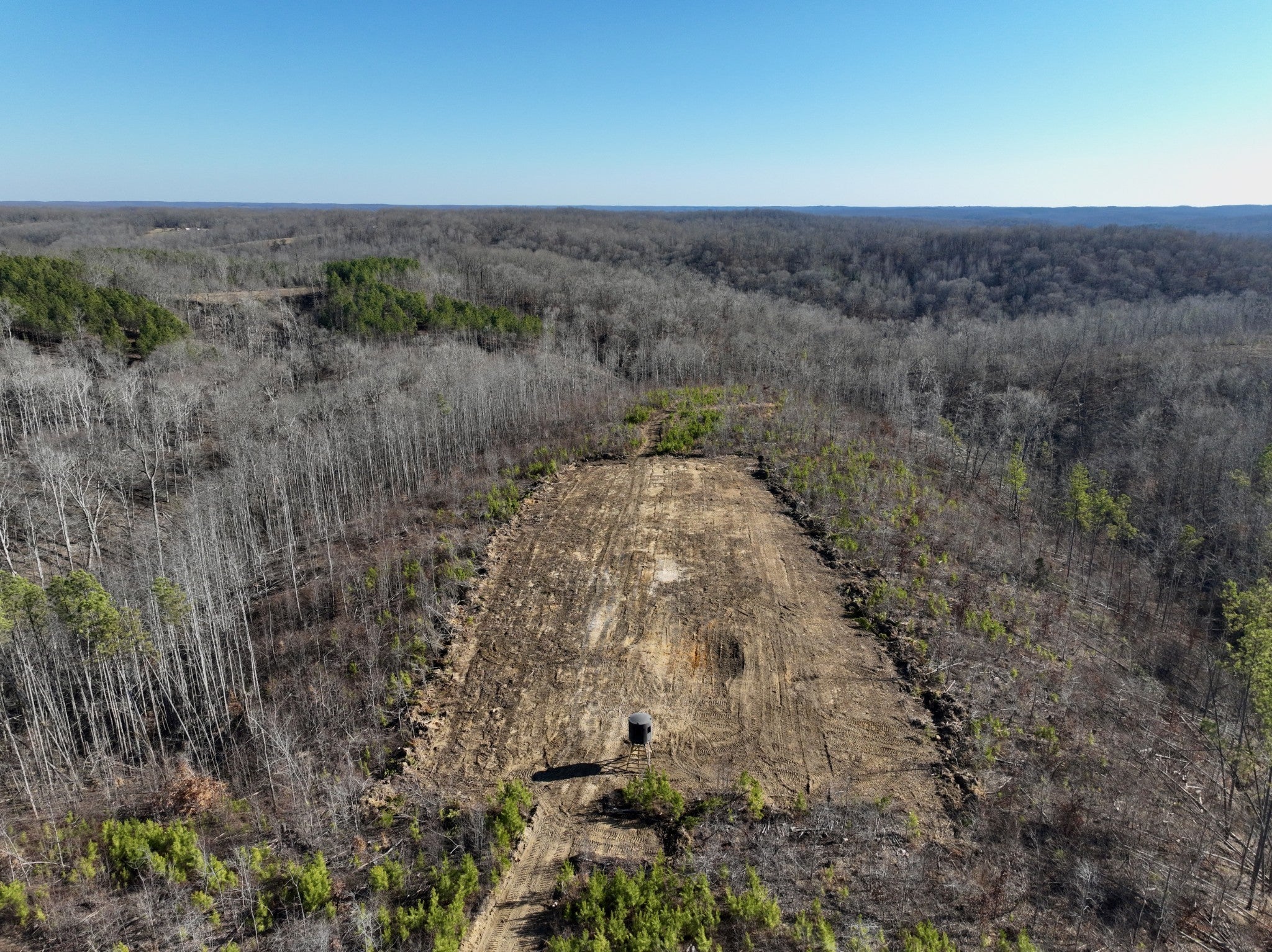 This property is designed with deer and turkey hunting in mind, offering numerous improvements to enhance your hunting experience. Multiple food plots are already in place, with a soon to be installed Banks blind, feeder, and Spartan cellular camera included for added convenience. The rolling topography features areas of steeper terrain, creating natural funnels and pinch points that optimize wildlife movement. The diverse timber stand consists of softwoods, mast-producing hardwoods, and planted pines, with select-cut areas that encourage new growth for dense security and bedding cover. A creek and feeder streams provide a reliable water source for wildlife. Gravel access roads ensure easy navigation, and the property boasts road frontage along the southern side with an established entry point. With adjoining tracts also available for purchase, this is a prime opportunity to expand your hunting grounds!