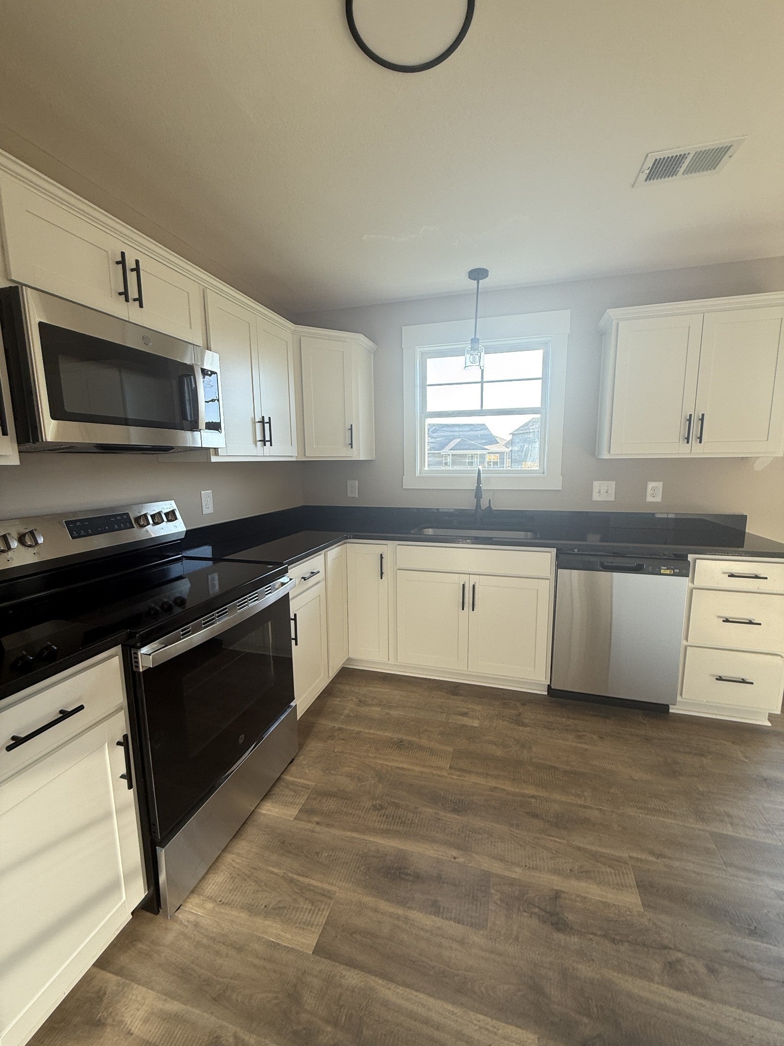 - Electric Oven, Cooktop, Dishwasher, Disposal, Microwave, Stainless Steel Appliance(s)