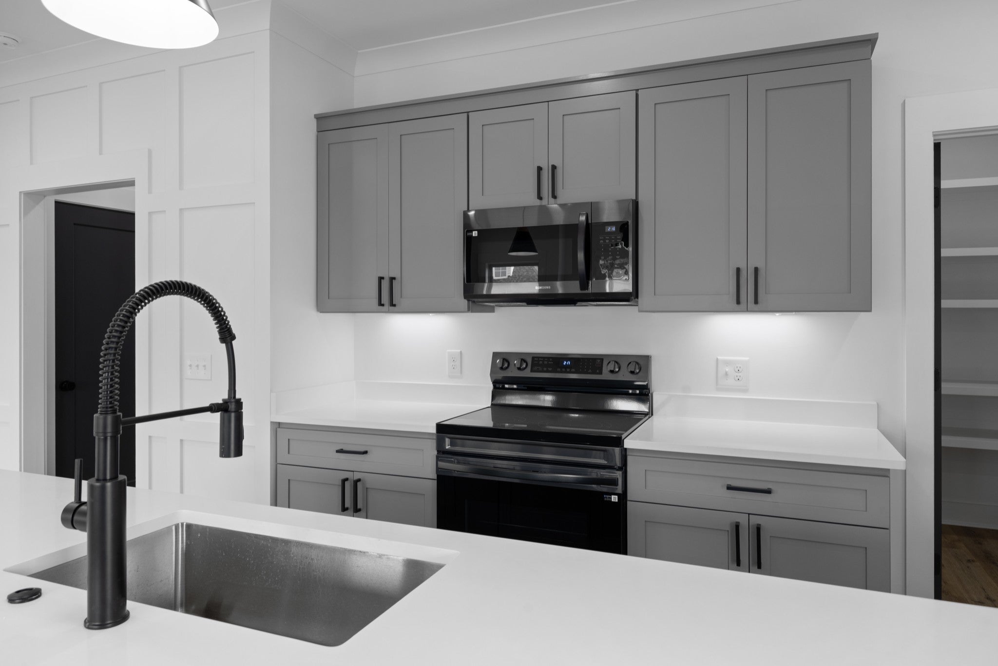 - Electric Range, Dishwasher, Disposal, Microwave, Stainless Steel Appliance(s)