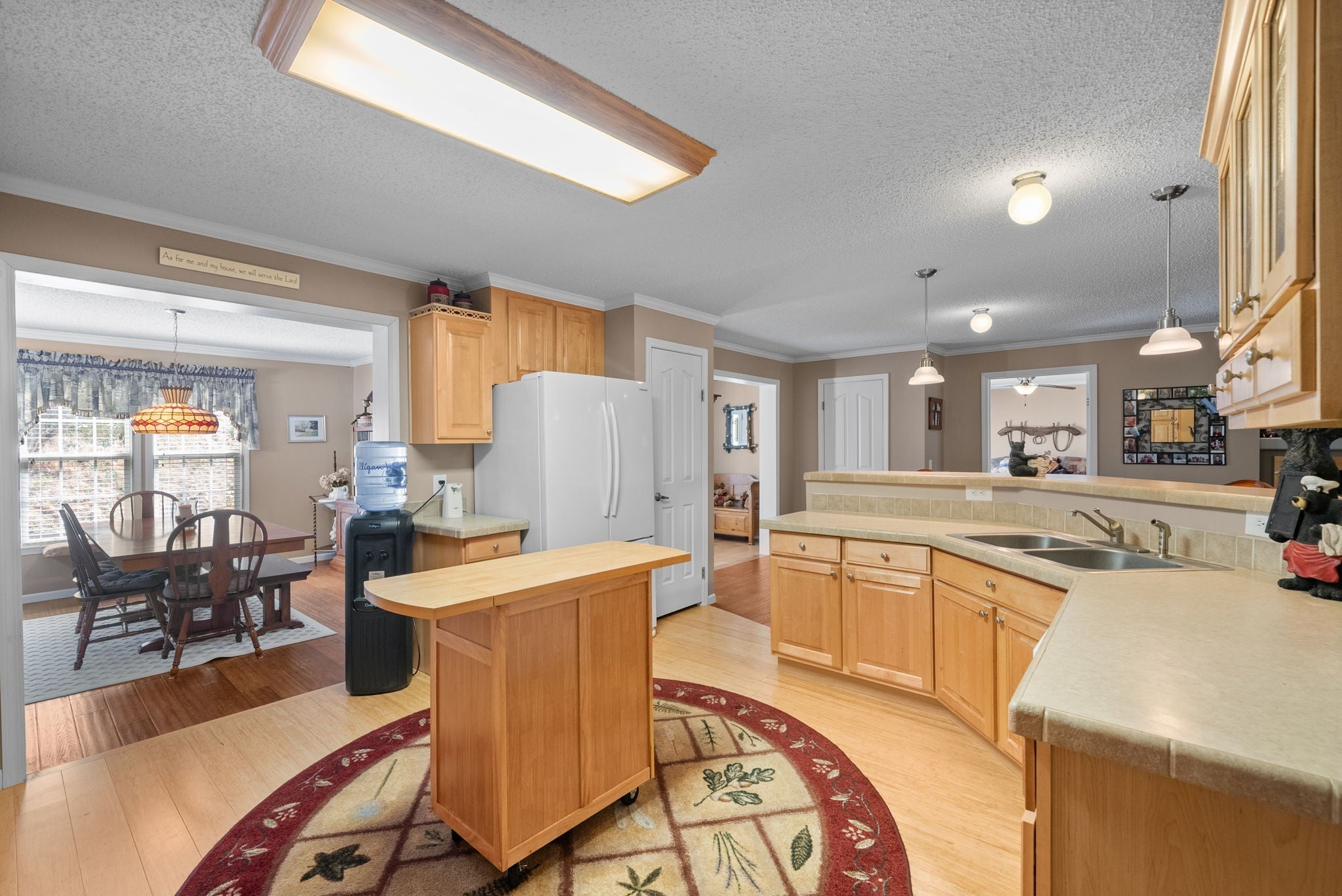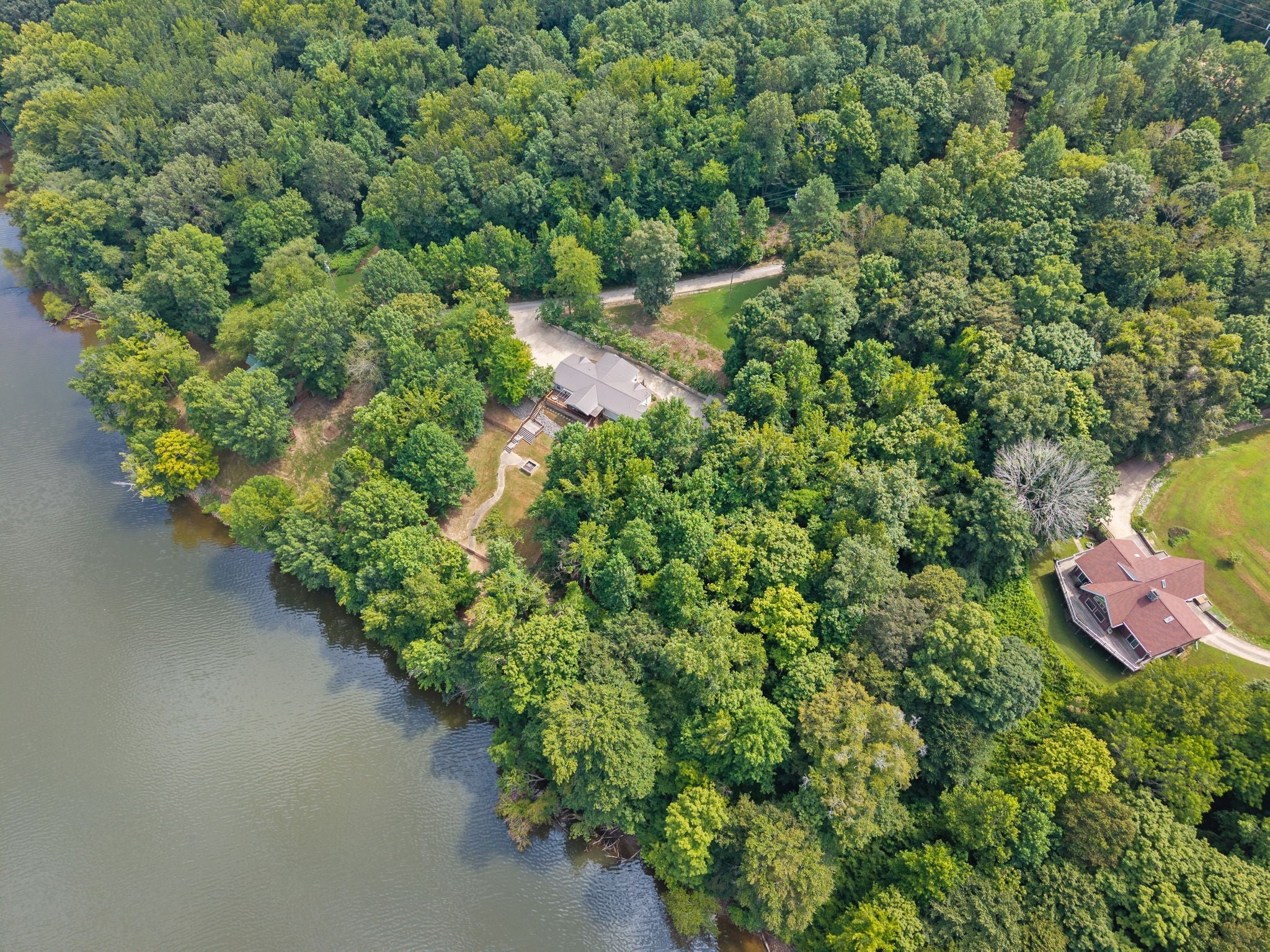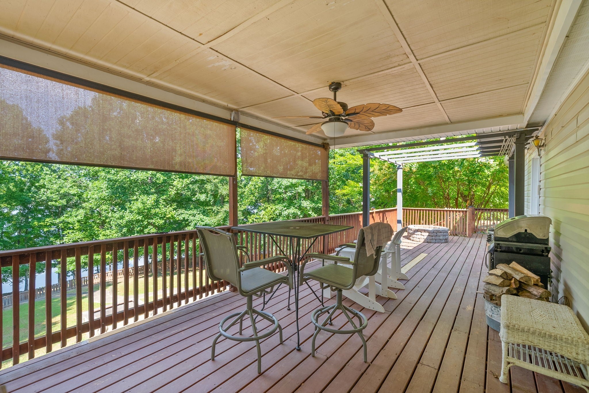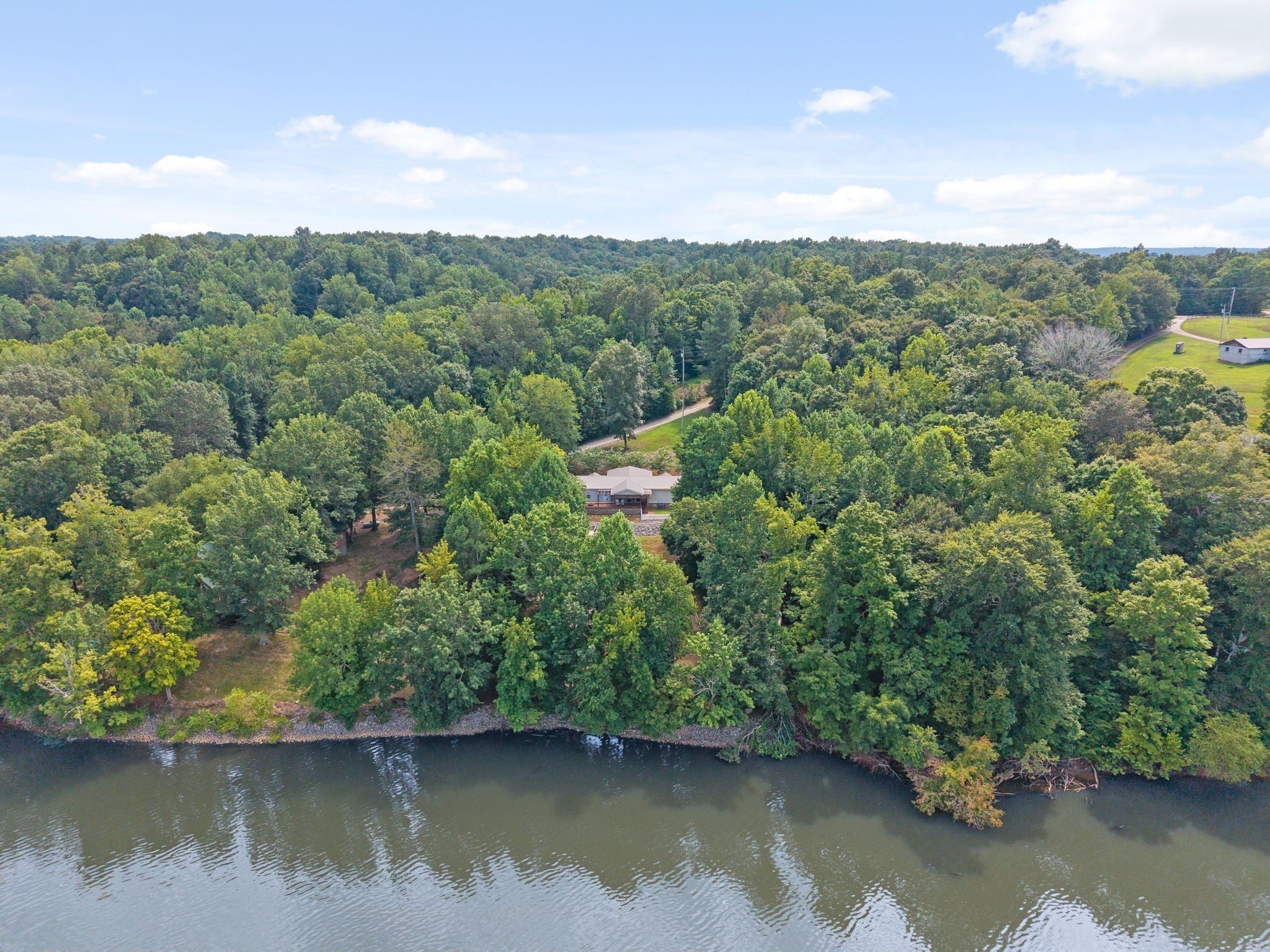 Escape to the tranquility of rural waterfront living! This beautiful home offers an open concept floor plan, precisely placed to enjoy the water view. Gathering room with side built in section with gas logs fireplace-divider bar to the spacious kitchen then leading to the dining room. Master bedroom features a spacious bath and walk in closet. Unique office space in the hallway leading to the 2 guest bedrooms. Laundry room offers a separate door to the back deck. Easy flow floor plan and spacious layout. The back deck is the spot with part covered and part open decking, firepit to the side and steps down to driveway or mid-deck and leading to the back lawn and walkway toward the water. Fenced back lawn is ready for the pets, You find a generous driveway space beyond the front of the home and to the detached garage. Garage is a 2 section connecting setup ; 24 x 11 with back door to additional space and a side 25x16 w/ ample cabinets and storage racks. A storage area is found behind the garage, as well.