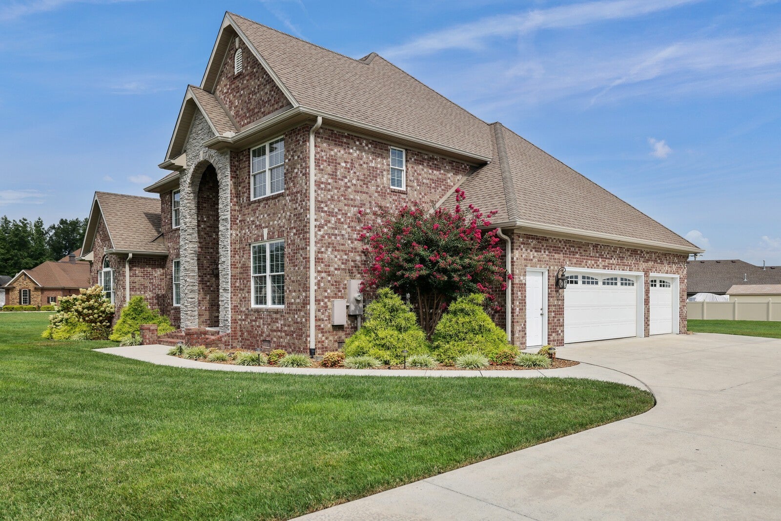 Motivated Sellers!! Up to 1% lender credit on the loan amount when buyer uses Seller's Preferred Lender. Seller offering $10,000 in closing costs or use for a rate buy down! Welcome to this car enthusiast's dream home! You will love this stunning 4-bedroom, 3.5-bath home in Manchester, TN, set on a large double lot with over $100,000 in upgrades. With a wraparound driveway and a rare combination of 7 garage spaces, a 3-car attached garage and a 4-car detached garage, you’ll have all the room you need for hot rods, hobbies, or storage. Inside, the home offers a welcoming open layout, highlighted by a stone-accent gas fireplace, all-new LED lighting, and thoughtful finishes throughout including a central vacuum system. The kitchen and living spaces flow seamlessly to outdoor living areas, including a screened-in patio and a brand-new covered patio, perfect for year-round enjoyment. Wonderful primary suite with tray ceilings and en-suite bathroom with dual vanity, jacuzzi tub, and shower. Upstairs, the home has been optimized for entertaining with flex space across from the home theatre room. The private, fenced backyard is enhanced by mature landscaping and a well water irrigation system installed in 2023. No high water bills to water the lawn! Major updates include a new water heater (2022), detached garage roof (2024), privacy fence (2023), concrete patio extension, and all new tall toilets. The wraparound driveway was completed in 2023, and the detached garage was extended to accommodate additional vehicles in 2024. Additional features include a NCR alarm system & Ring camera for peace of mind. With its spacious floorplan, extensive upgrades, and rare 7-car garage setup, this property offers the perfect blend of comfort, functionality, and value. Up to 1% lender credit on the loan amount when buyer uses Seller's Preferred Lender.