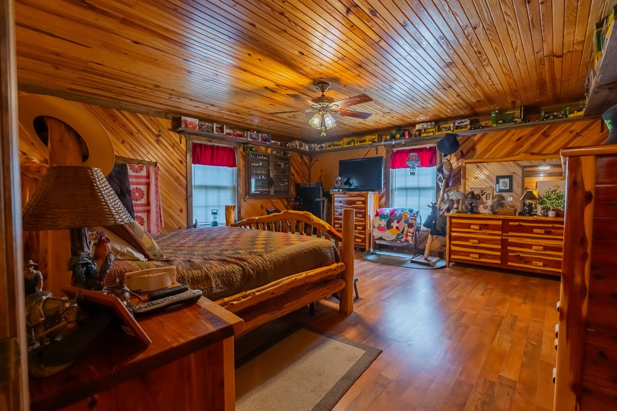 Discover your private Tennessee mountain sanctuary at 4012 Payne Cove Road in Pelham TN, where 5 pristine acres meet authentic Gatlinburg-style luxury living just minutes from both Nashville and Chattanooga via I-24. This exceptional 2,644 square foot brick mountain estate showcases dramatic cathedral ceilings with massive wooden beams, custom hickory cabinets displaying master craftsmanship, and a stunning loft perfect for home office or artist studio overlooking the open-concept living areas. The thoughtful split floor plan provides 3 spacious bedrooms and 2 full bathrooms with privacy and comfort, while soaring ceilings capture the essence of classic Tennessee mountain architecture throughout this turnkey country property. Beyond the main residence, nearly 5 usable acres include an impressive 58x48 pole barn ideal for RV storage, farm equipment, workshop, or livestock operations, plus a generous 36x30 detached garage providing additional vehicle and hobby space. Pure, cold mountain well water and durable brick construction ensure low-maintenance country living, while the versatile property works beautifully as gentleman's farm, horse property, weekend retreat, or Airbnb investment opportunity. Located in scenic Grundy County near South Cumberland State Park, world-famous Caverns music venue, and Elk River recreation including fishing and kayaking, this Pelham mountain home delivers unbeatable value combining privacy, quality construction, abundant storage, and strategic highway access between Tennessee's major cities. Schedule your showing today to experience this rare Grundy County gem offering acreage, outbuildings, and mountain living convenience.