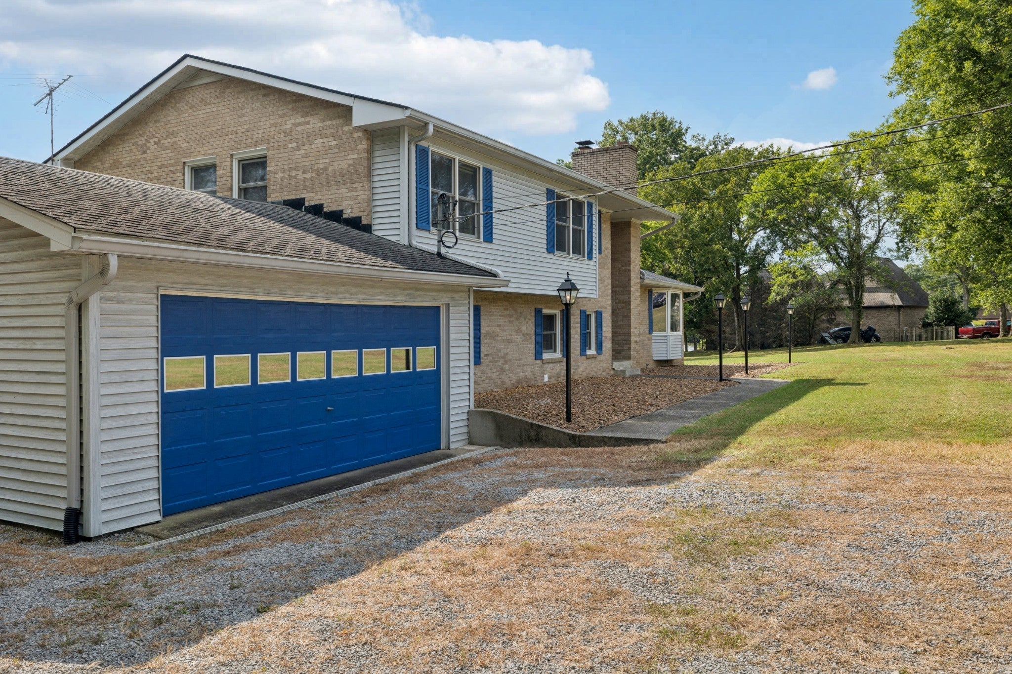 - Garage Door Opener, Garage Faces Front, Driveway, Gravel