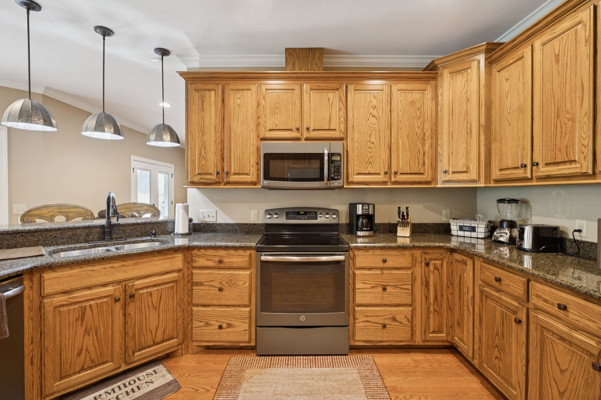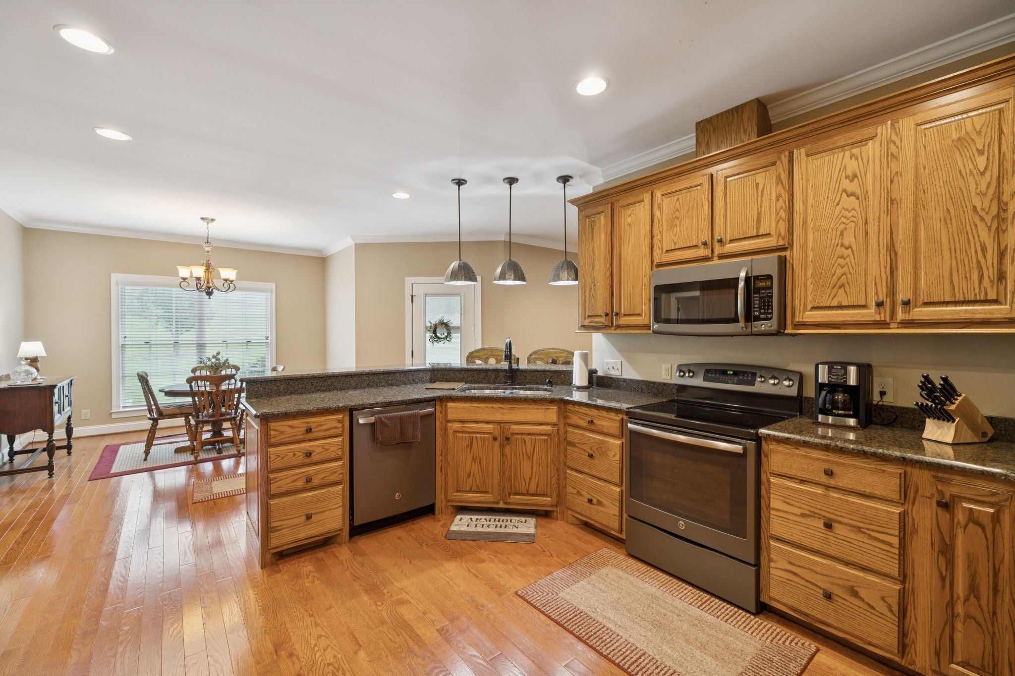 - Electric Oven, Electric Range, Dishwasher, Disposal, Microwave, Refrigerator, Stainless Steel Appliance(s)