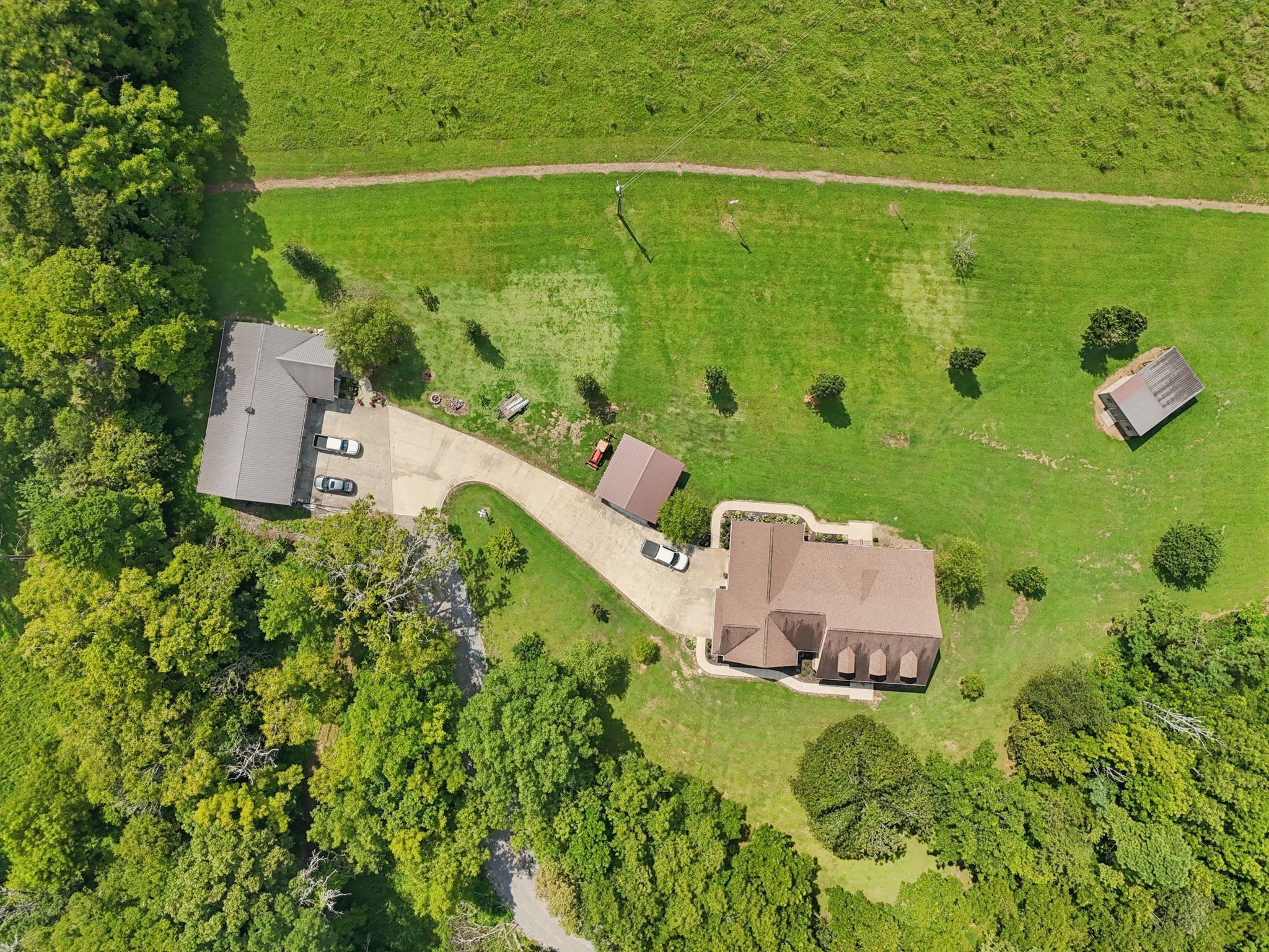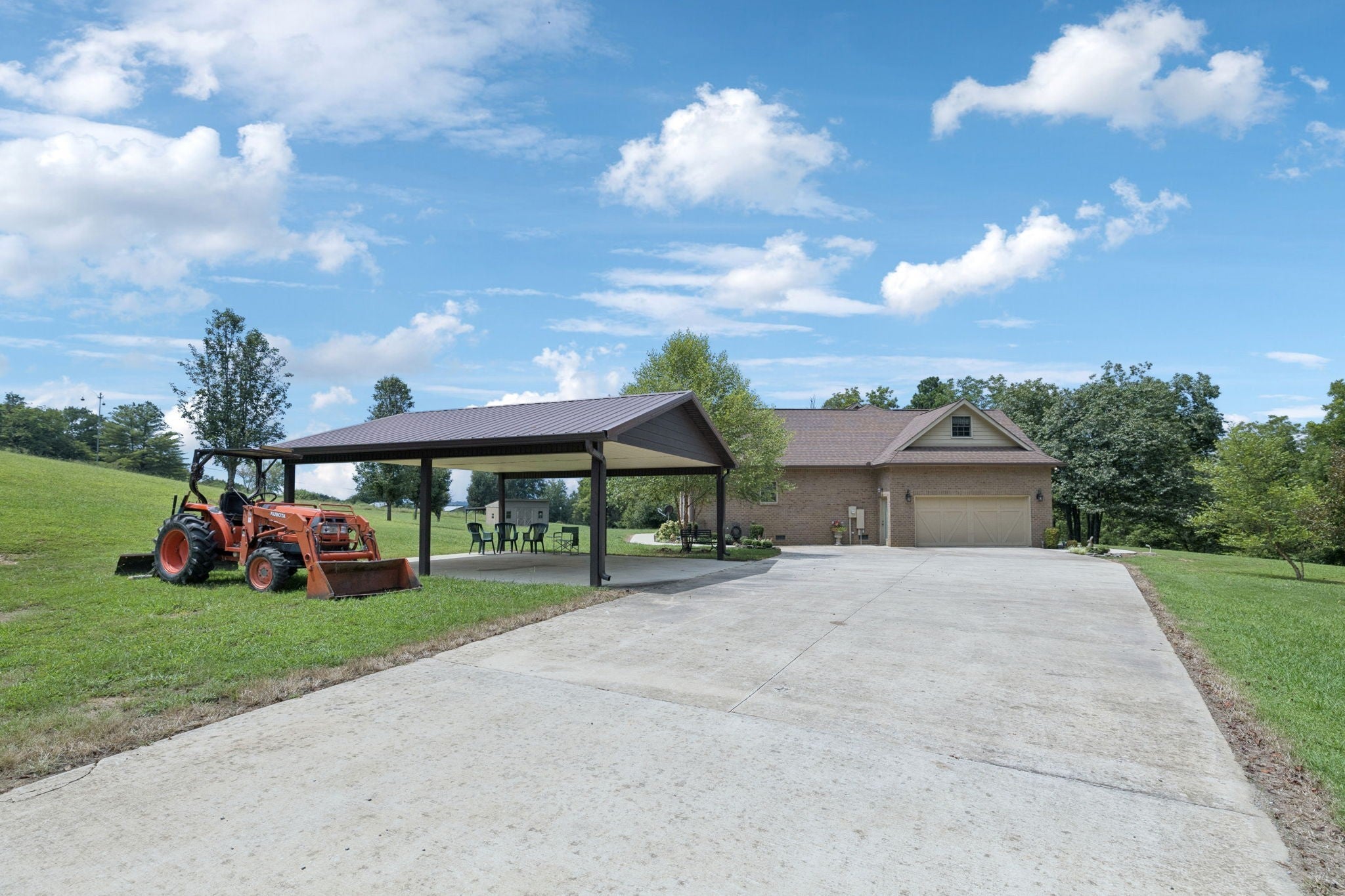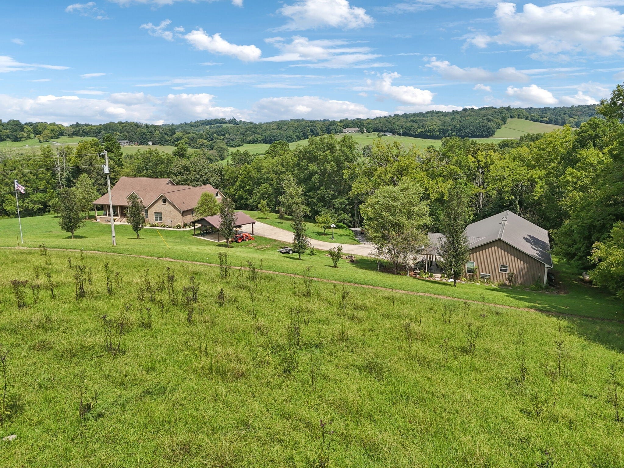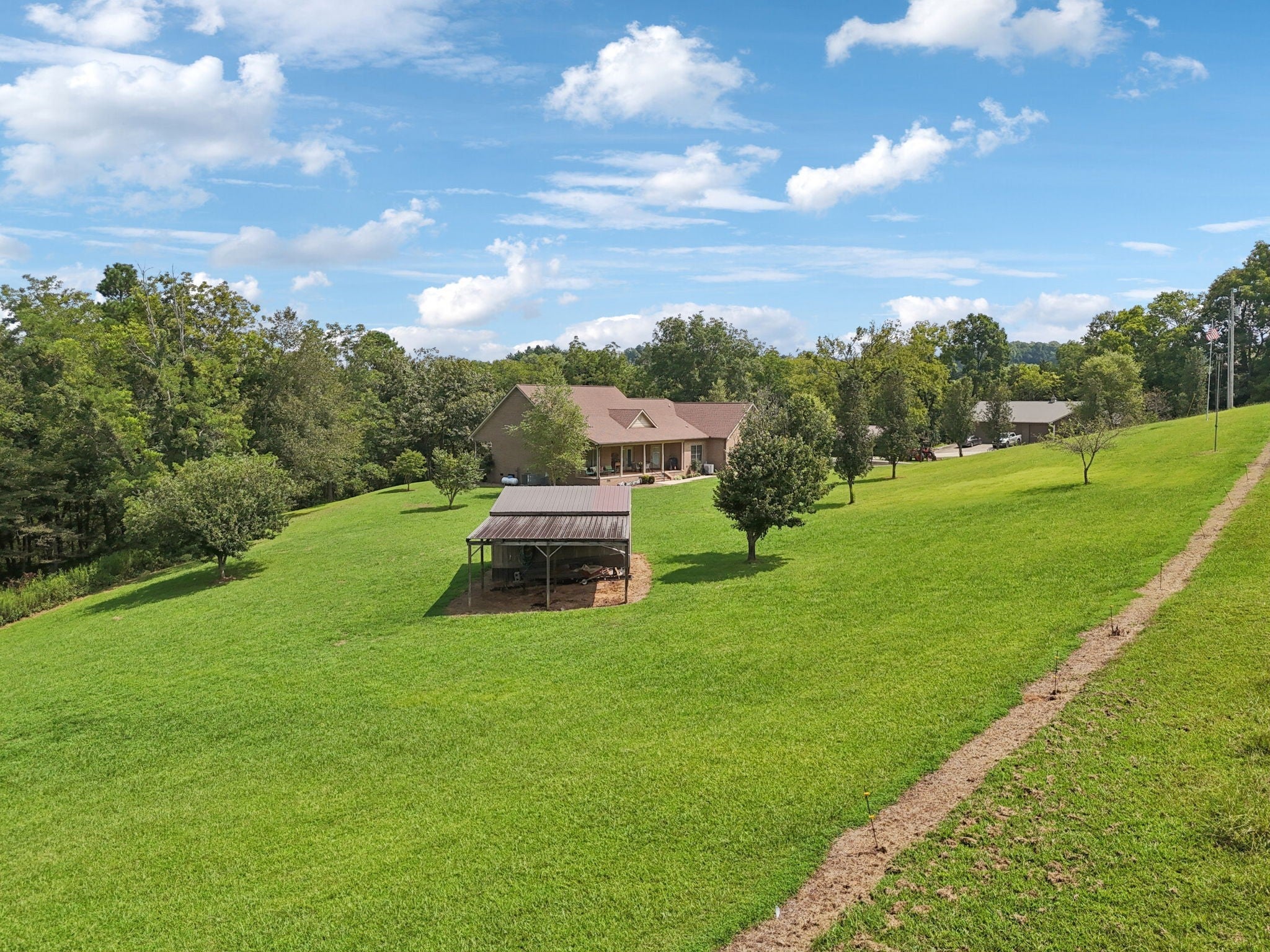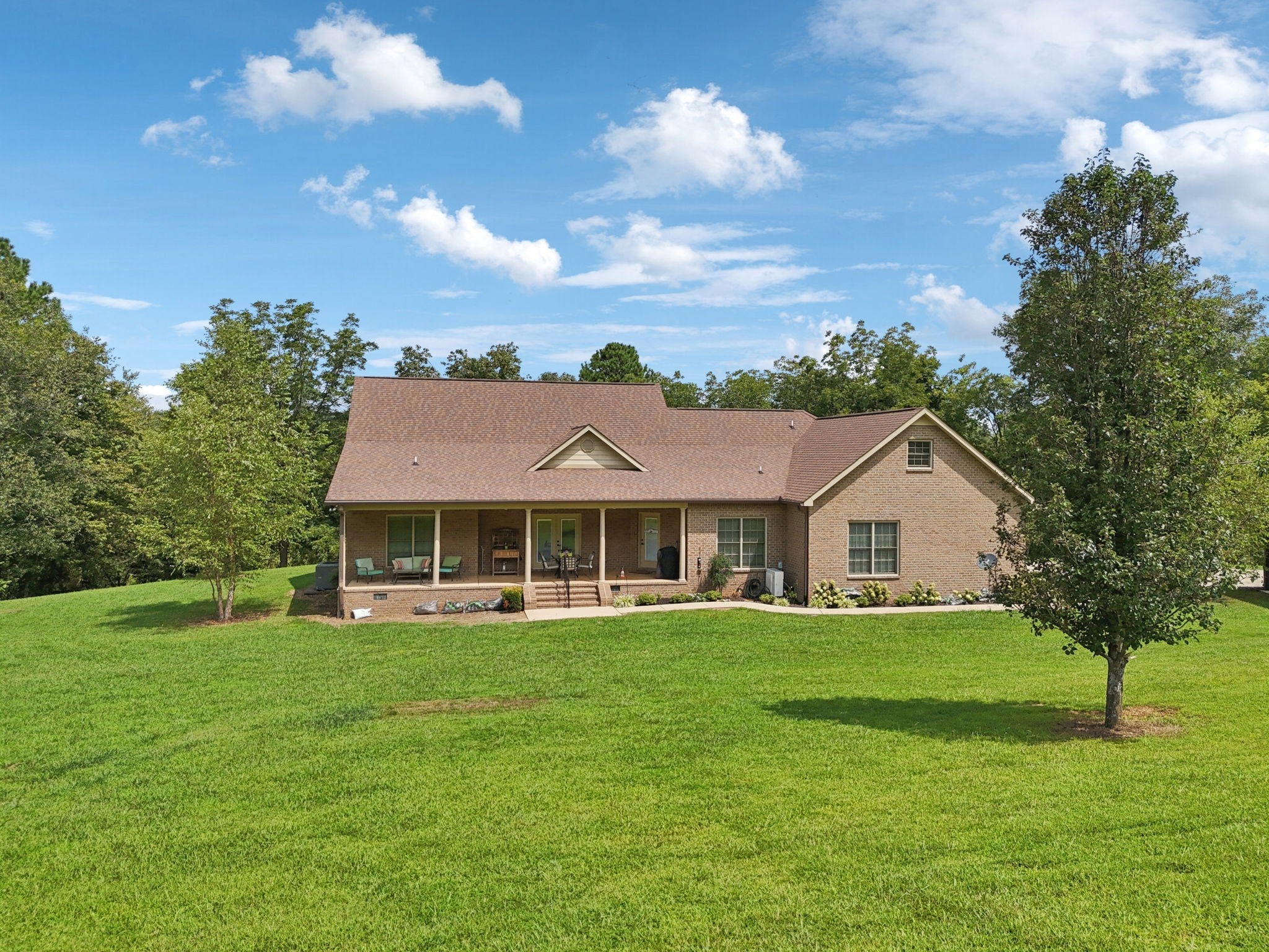 Welcome to your country paradise! Beautiful 18 acre property complete with a natural spring and a pond and 2,800+ sf gorgeous brick 3 bdrm, 2.5 bath home w/Bonus/Rec room on 2nd level, as well as walk-in attic storage or expansion area! This home built in 2014 has covered front & back porches (8x38 & 8x40) to watch the wildlife and enjoy the peaceful serenity, attached 2-car garage & detached 24x26 carport on concrete pad. There is also a detached building that houses a 600+ sf apartment/guest house, built in 2007, with covered front patio, kitchen (Stove & Refrigerator remain), full bath & combo living/dining/bedroom area attached to a 3-car garage/shop w/concrete pad, cabinets, electricity & water! You wind your way from the entrance with an open gate, up the wooded hillside to the property at the top of hill! The main home is mostly on one level with large Owner Suite, spacious open Kitchen/Dining/Eat-In & Living Room w/stacked rock propane fireplace and beautiful finished wood flooring! Kitchen has granite counters, walk-in pantry, counter bar and all Kitchen appliances remain (GE Stove, Dishwasher, Microwave & Refrigerator). An outbuilding with lean-to also remains. This home is a wonderful oasis with woods, acreage, pond, natural spring and privacy! All offers to be on TAR forms.