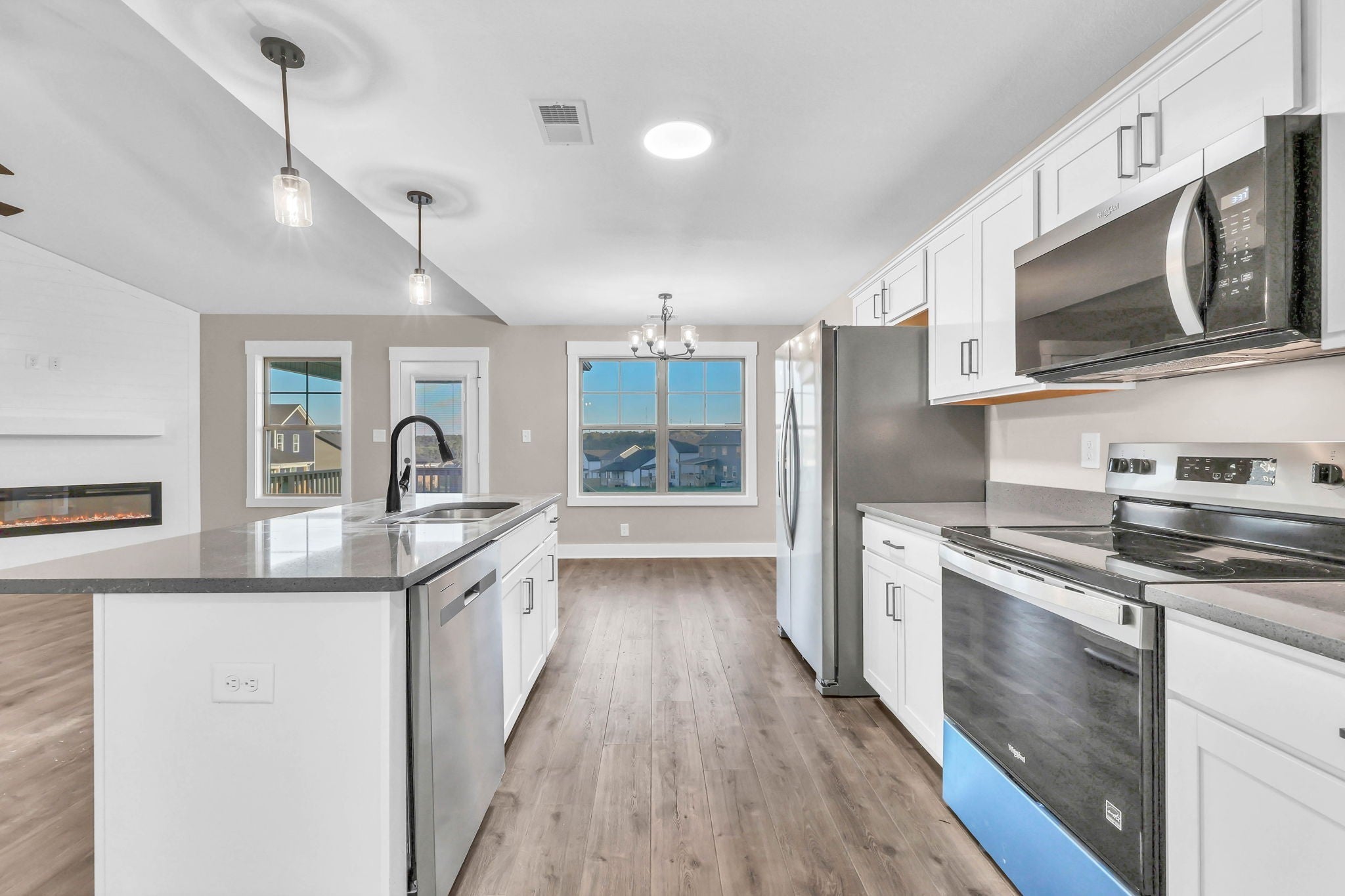 New Construction - Amelia Floor Plan - minutes from FORT CAMPBELL, Downtown Clarksville or I24 with an easy commute to Nashville. Open concept ranch great for entertaining or spending time with family. The living room has soaring ceilings and a shiplap facing electric fireplace. The kitchen is right off the LR featuring beautiful granite countertops, SS appliances and an extra large island perfect for extra seating. This home is a split bedroom floor plan with the primary separate from the guest bedrooms. Primary ensuite features a trey ceiling and EXTRA large closet. Covered back deck. Epoxy flooring in the garage for a clean look. $17,500 in Seller Concessions with a full price offer. Call today to schedule your appointment. MOVE IN READY!