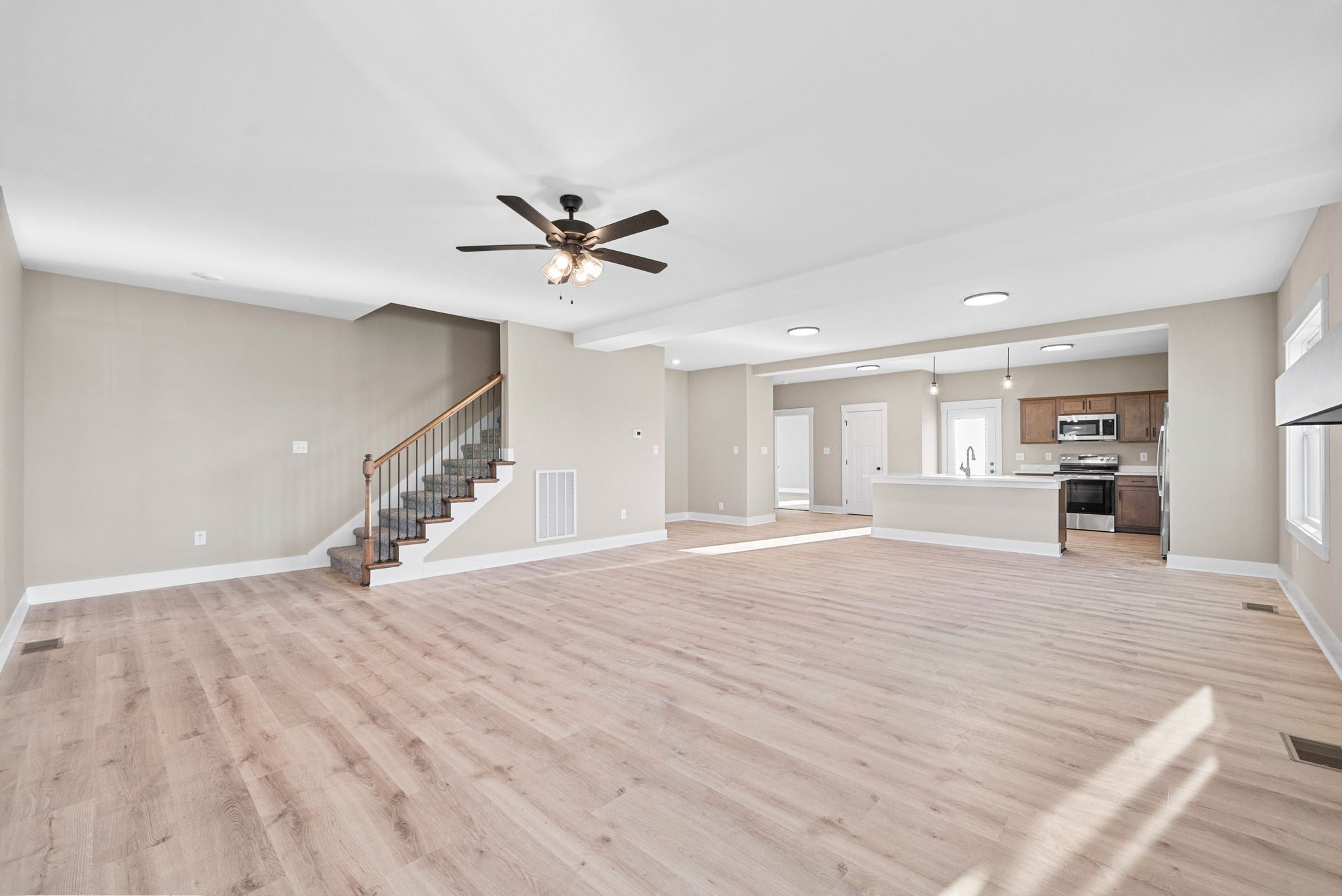 - Air Filter, Ceiling Fan(s), Entrance Foyer, Open Floorplan, Pantry, Kitchen Island