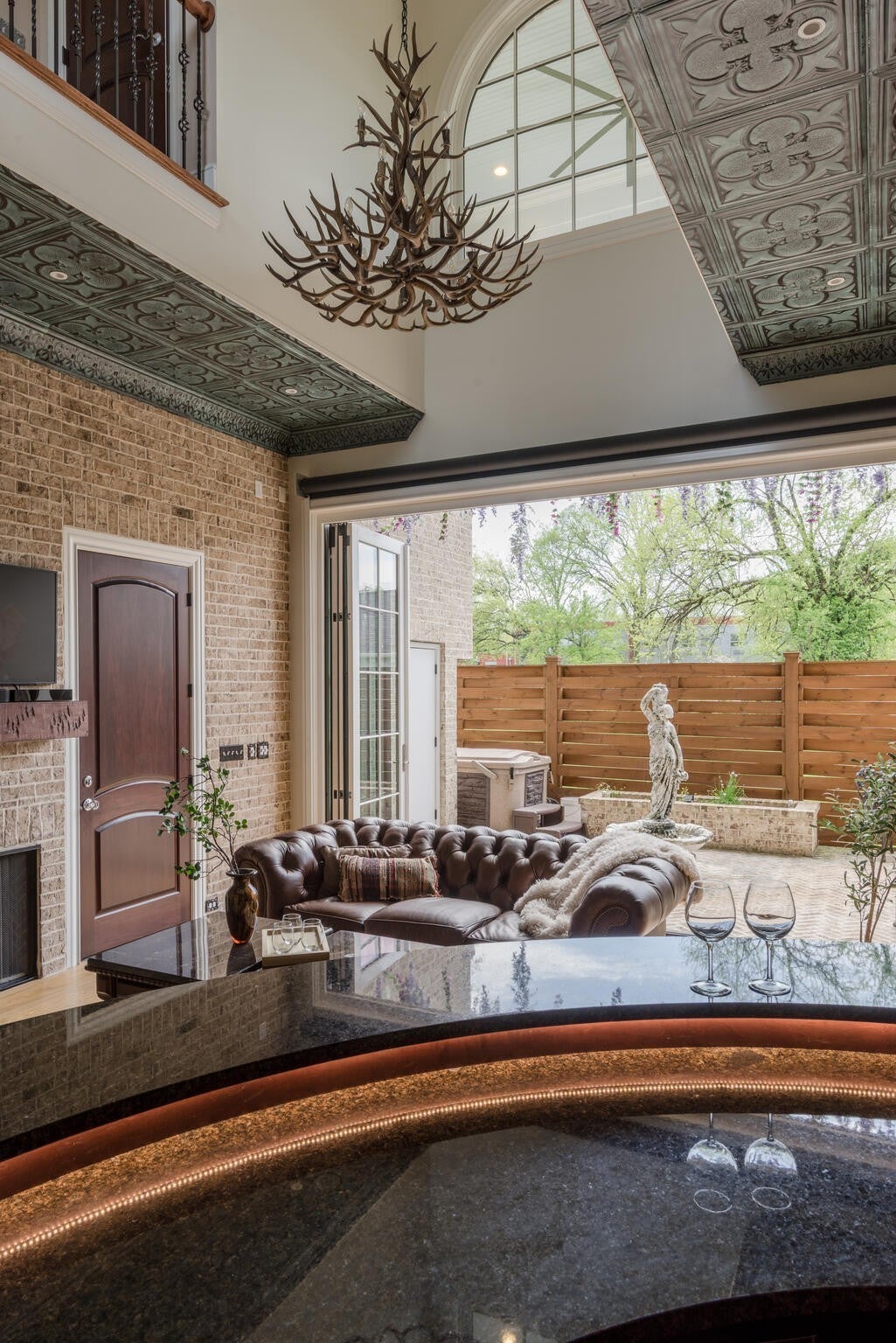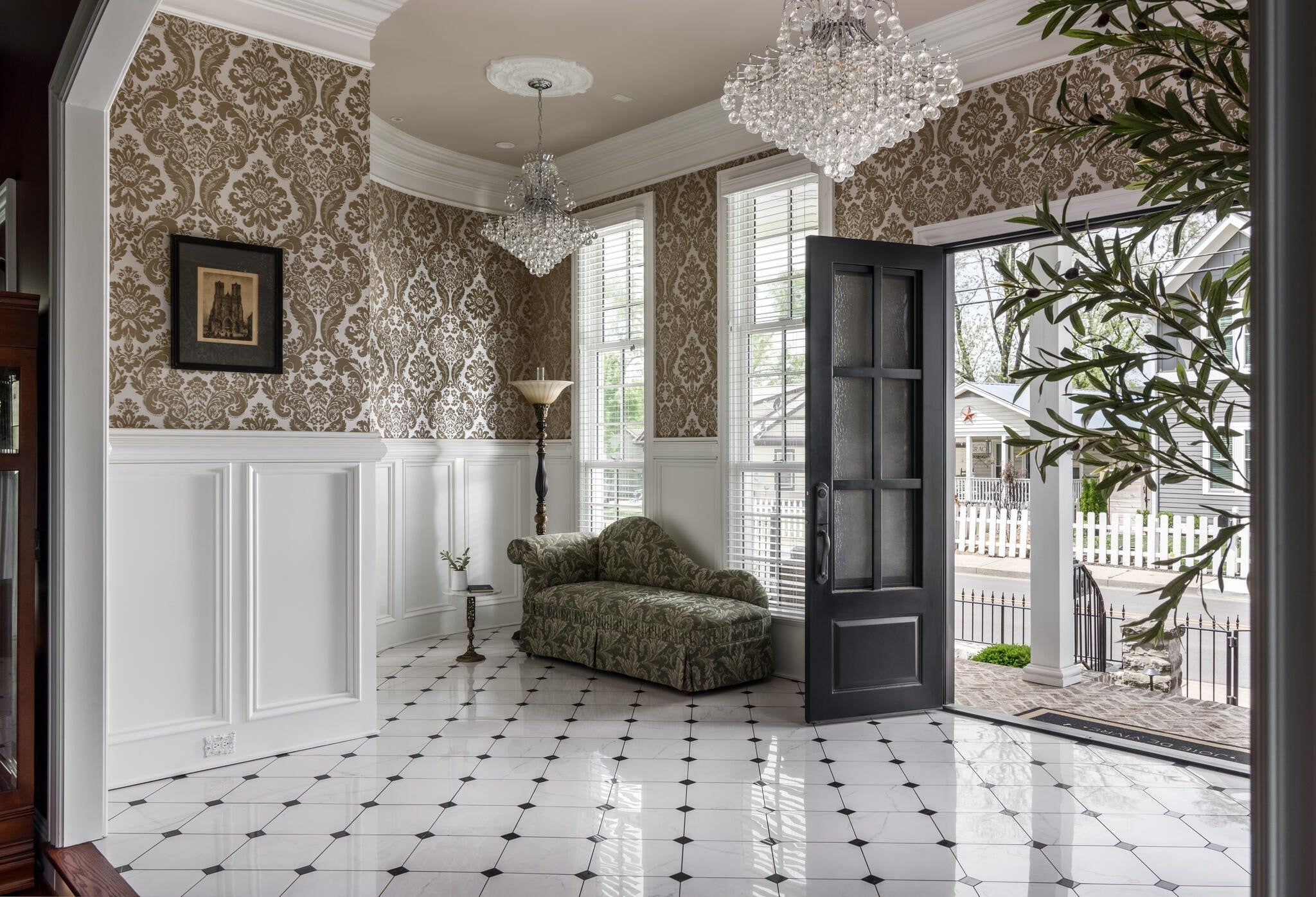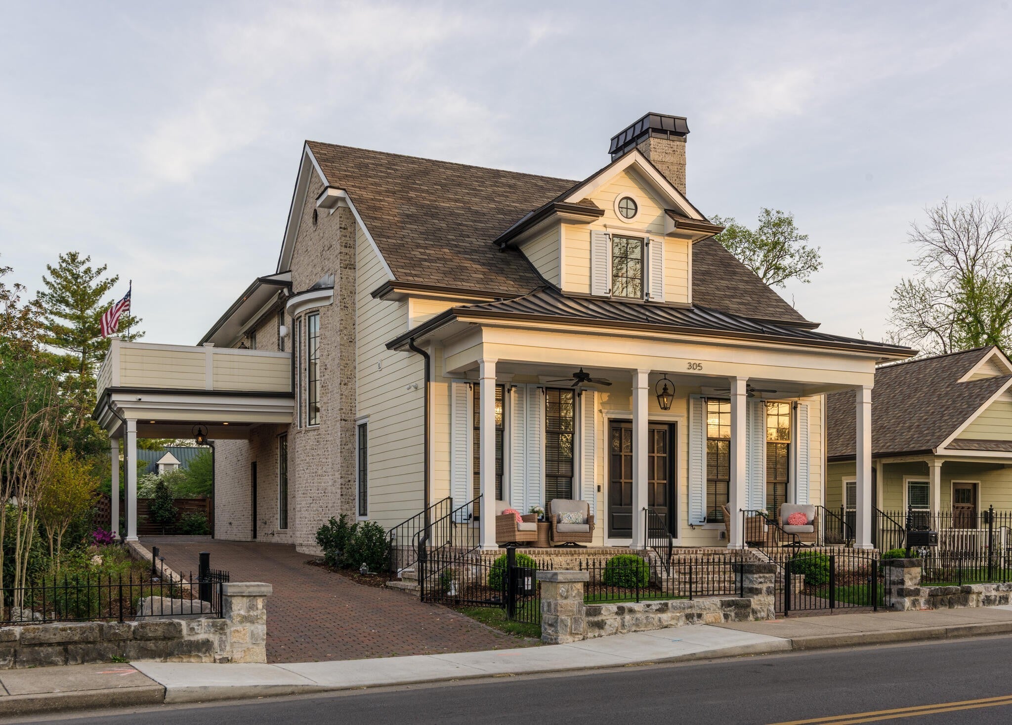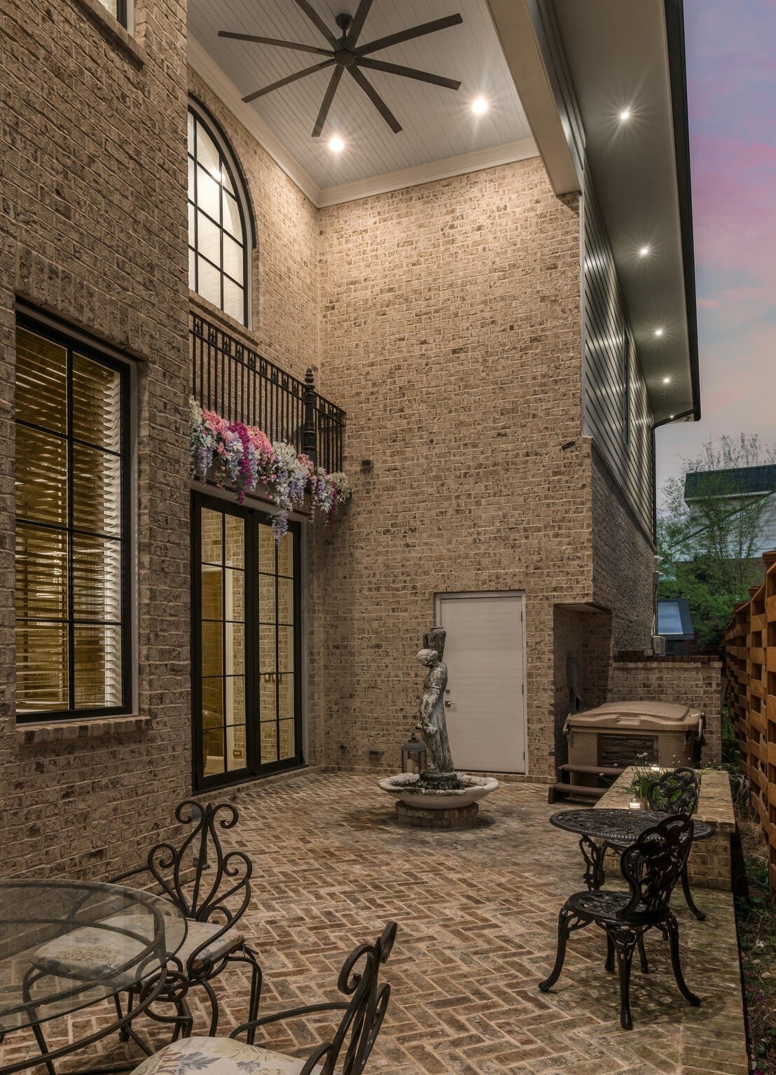 305 Natchez Street isn’t just a home — it’s a statement. Inspired by the charm and romance of New Orleans’ French Quarter, this one-of-a-kind, Louisiana-style estate sits just steps from downtown Franklin. Completed in Fall 2023, this architectural gem marries timeless elegance with cutting-edge sustainability, delivering a residence that’s as captivating as it is conscious. Enter through a sweeping curved foyer where a dramatic spiral staircase and sparkling crystal chandeliers set the tone. Entertain with flair in expansive open-concept living spaces framed by grand arches, intricate custom trim, and a full Sonos system throughout. The chef’s kitchen stuns with 12-foot cherry cabinetry, waterfall quartz countertops, and professional-grade Viking appliances — while a 420-bottle Tuscan wine cellar adds instant sommelier cred. Upstairs, the primary suite is pure indulgence: dual closets, a dressing room, heated floors, a soaking tub, and a spa-worthy steam shower clad in Portuguese tile. Outdoor living reaches new heights with a New Orleans-style courtyard, a French Quarter-inspired hot tub retreat, and a porte-cochère entertainment zone with accent lighting and electric awning. Sustainable luxury is at the core: 82 solar panels, 6 battery walls, 2 EV chargers, and a greenhouse with raised garden beds. With a private elevator, full in-law suite, and security system, this home is equal parts glamour and functionality.