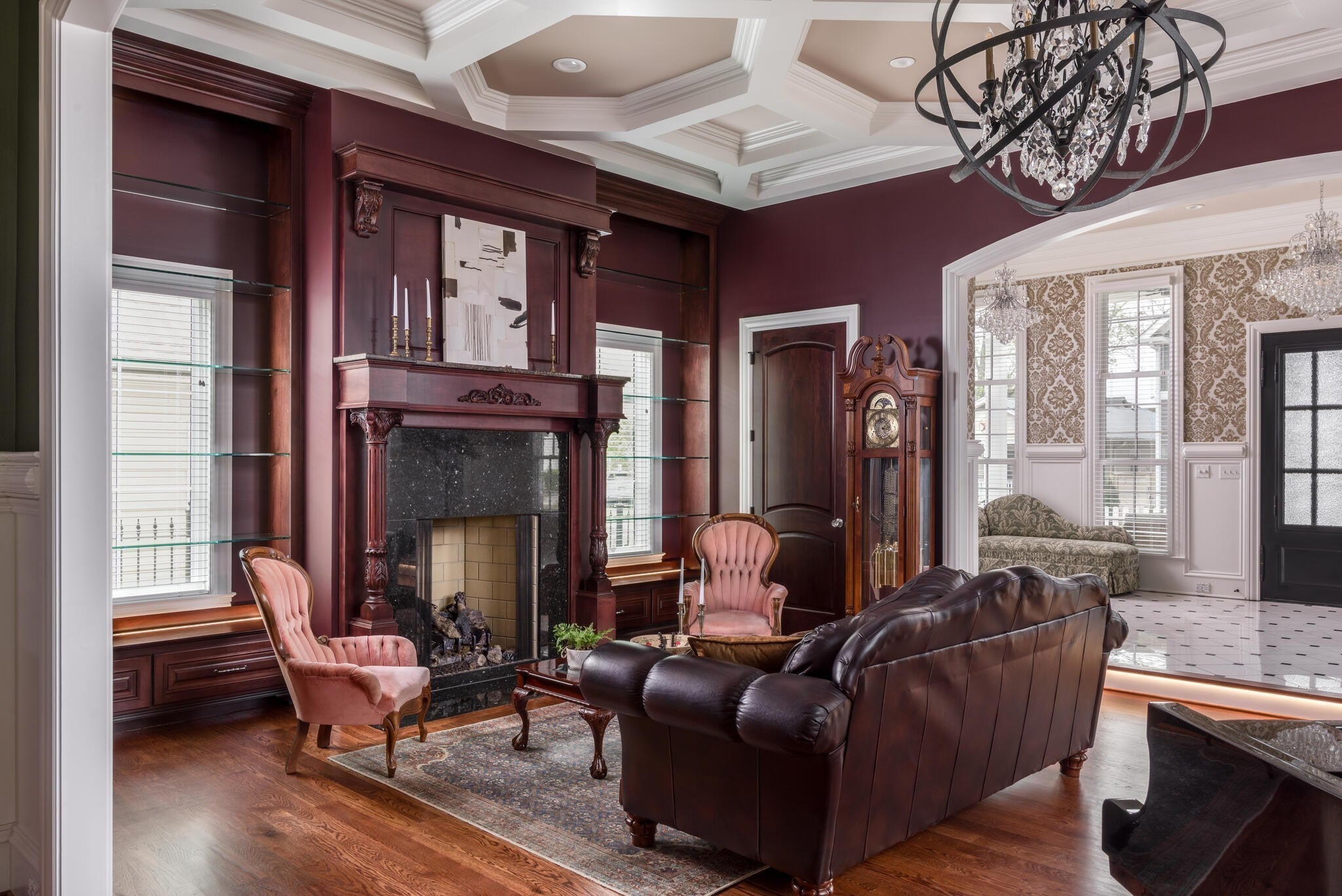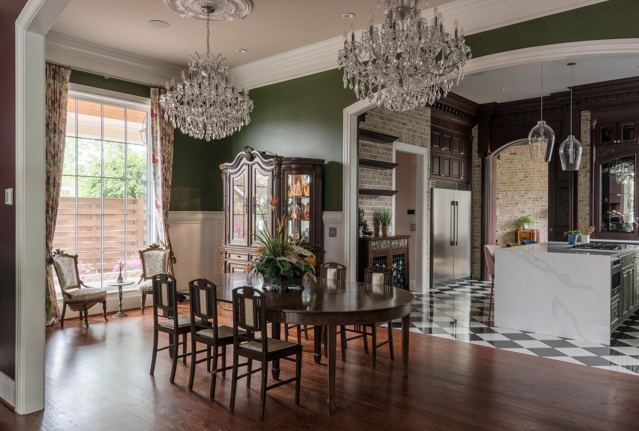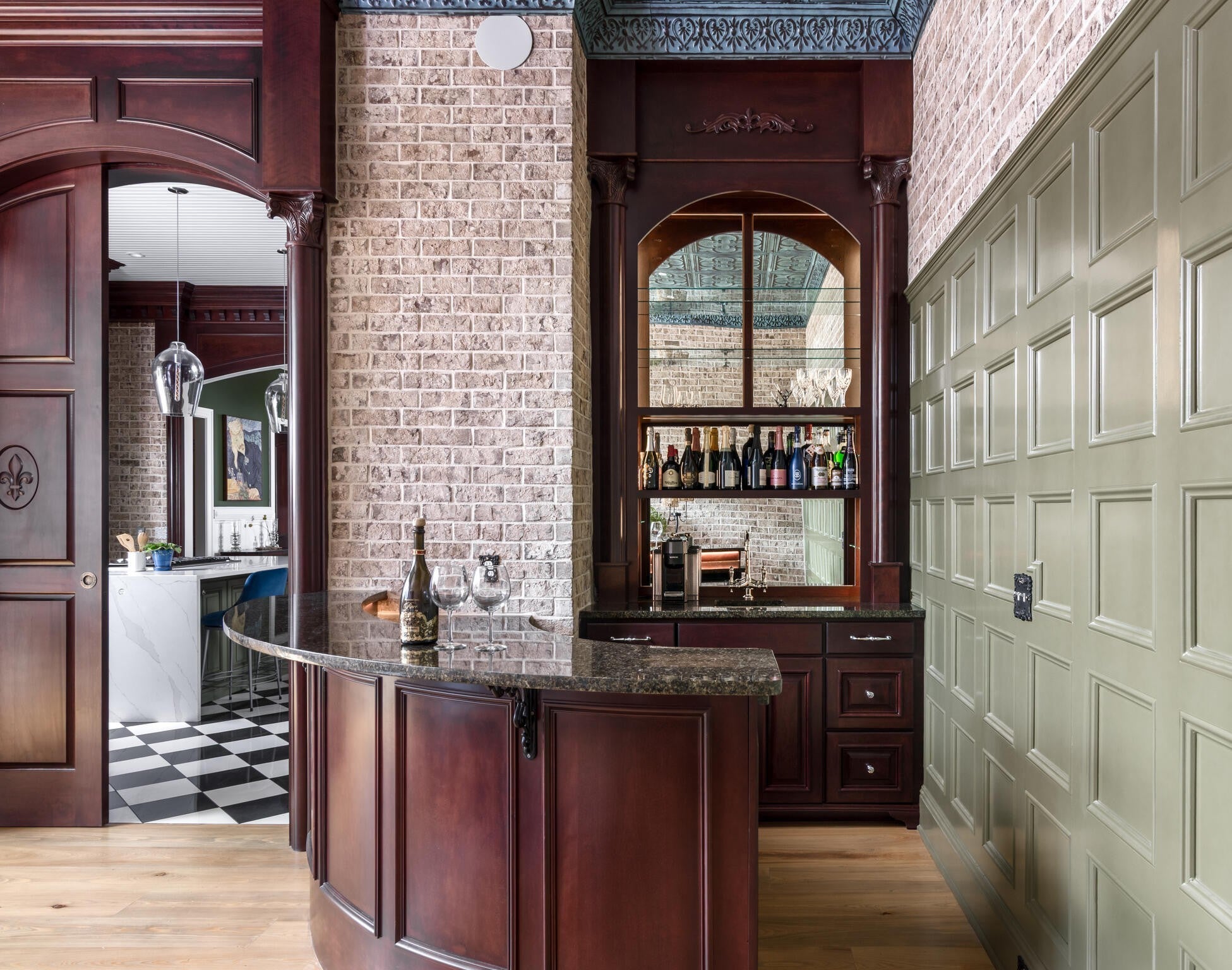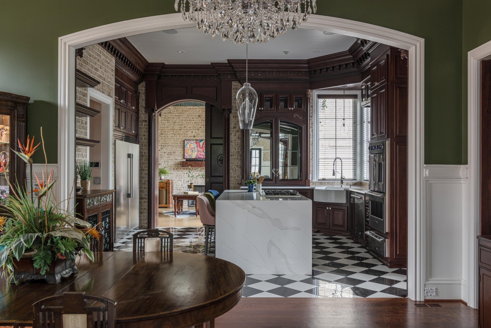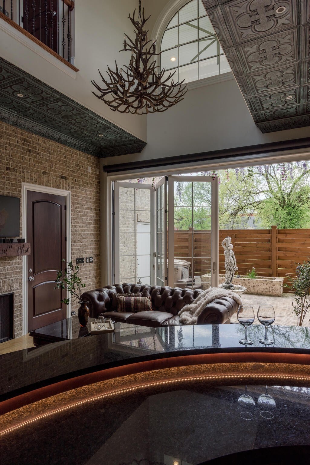 305 Natchez Street isn’t just a home — it’s a statement. Inspired by the charm and romance of New Orleans’ French Quarter, this one-of-a-kind, Louisiana-style estate sits just steps from downtown Franklin. Completed in Fall 2023, this architectural gem marries timeless elegance with cutting-edge sustainability, delivering a residence that’s as captivating as it is conscious. Enter through a sweeping curved foyer where a dramatic spiral staircase and sparkling crystal chandeliers set the tone. Entertain with flair in expansive open-concept living spaces framed by grand arches, intricate custom trim, and a full Sonos system throughout. The chef’s kitchen stuns with 12-foot cherry cabinetry, waterfall quartz countertops, and professional-grade Viking appliances — while a 420-bottle Tuscan wine cellar adds instant sommelier cred. Upstairs, the primary suite is pure indulgence: dual closets, a dressing room, heated floors, a soaking tub, and a spa-worthy steam shower clad in Portuguese tile. Outdoor living reaches new heights with a New Orleans-style courtyard, a French Quarter-inspired hot tub retreat, and a porte-cochère entertainment zone with accent lighting and electric awning. Sustainable luxury is at the core: 82 solar panels, 6 battery walls, 2 EV chargers, and a greenhouse with raised garden beds. With a private elevator, full in-law suite, and security system, this home is equal parts glamour and functionality.