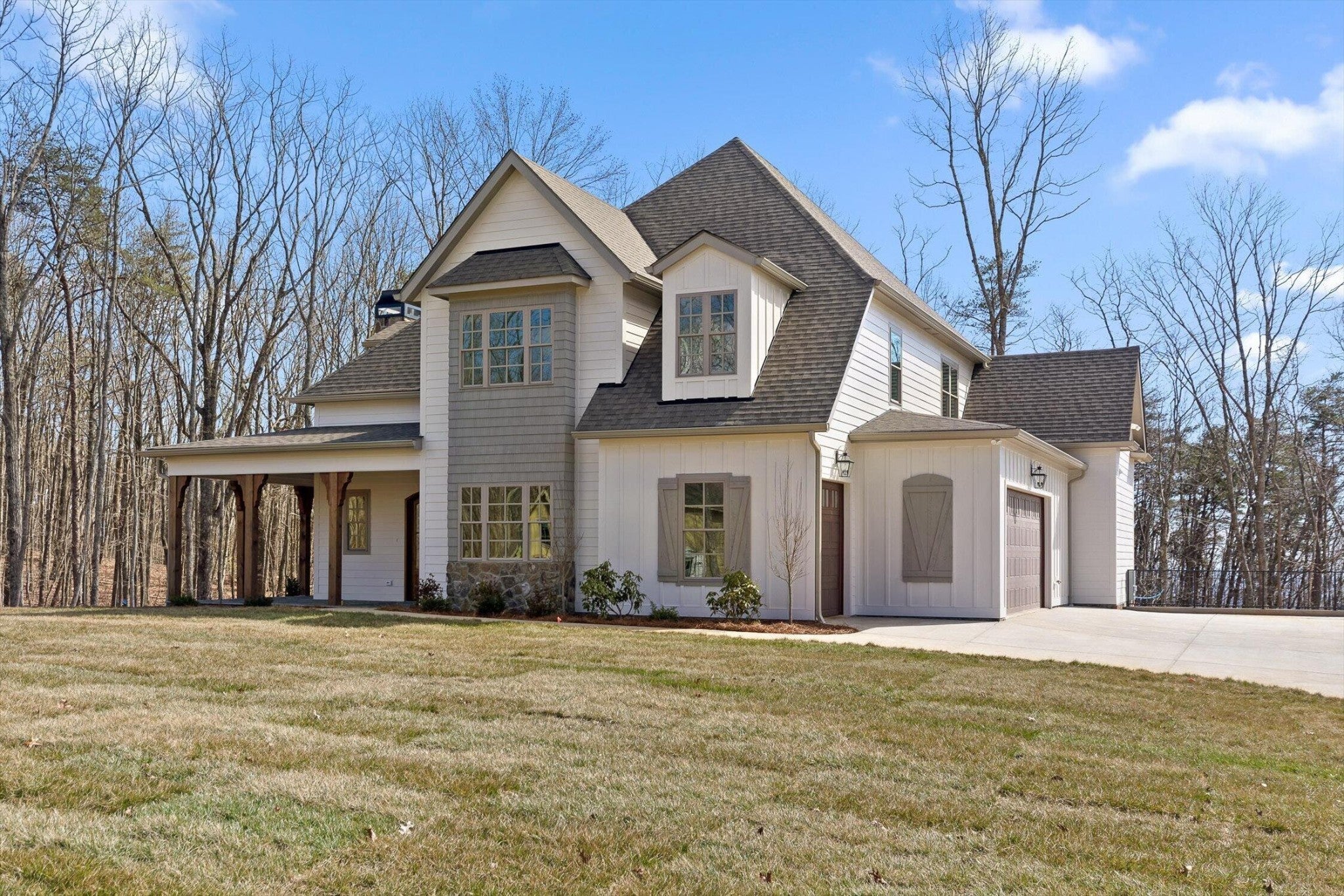 Welcome to your new luxury home in the desirable Flipper Bend gated community and situated on a spacious lot. This two-level, thoughtfully designed European inspired home offered by Pepper's Construction checks all the boxes. From southern inspired deep porches and decks to an efficient flow, you will get the best of both worlds. On the main level, you will find the primary suite, open kitchen and dining, grand family room with fireplace, a front room that can be either an office or scullery, powder room, and of course the spacious 2.5 car garage. The second level provides three bedrooms, one with an ensuite-bath, one hall bath and a large bonus room. This home is under construction but there is time for you to make personal selections if you get in early. Flipper Bend is a newer community tucked into an untouched portion of Signal Mountain, TN. Enter through the Gate House and find yourself immersed in a local community unlike anything else in Chattanooga. Each property is thoughtfully designed to harmonize with nature. Storybook views of the Tennessee valley, historic Cumberland plateau and surrounding areas abound. The community is perched high above the crowd below, allowing you to breathe, relax, and become one with the wonder surrounding you. Carefully planned hiking and biking paths meander for miles while an elevated community center with gorgeous brow views will entertain and relax you year around.