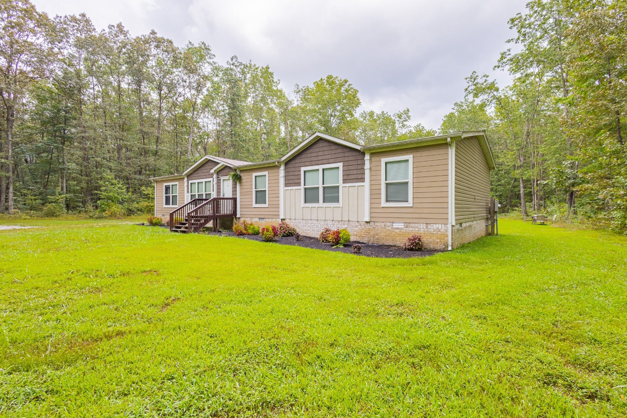 Welcome to 976 Espy Rd in Manchester, a gorgeous 5-acre wooded retreat offering both privacy and style. Built in 2017, this 4-bedroom, 2-bath home sits on a permanent foundation and is set 450 ft back from the county road, giving you the perfect blend of seclusion and convenience. The property boasts fresh NEW LVP flooring, NEW landscaping, and a brand-new 2025 water heater, making it truly move-in ready. Inside, the open split-bedroom floor plan includes both a living room and a den, a spacious eat-in kitchen with a massive island and tons of cabinetry, and a separate oversized laundry room. The primary suite offers a large walk-in closet and beautifully sized bathroom, while the additional bedrooms all feature large closets for extra storage. Step outside and enjoy a large cleared front and backyard complete with a shed that conveys, a cozy firepit ready for backyard sitting, and even a deer stand that stays with the property, perfect for nature lovers. With county taxes only and no HOA, this home delivers the ultimate combination of comfort, space, and country living.