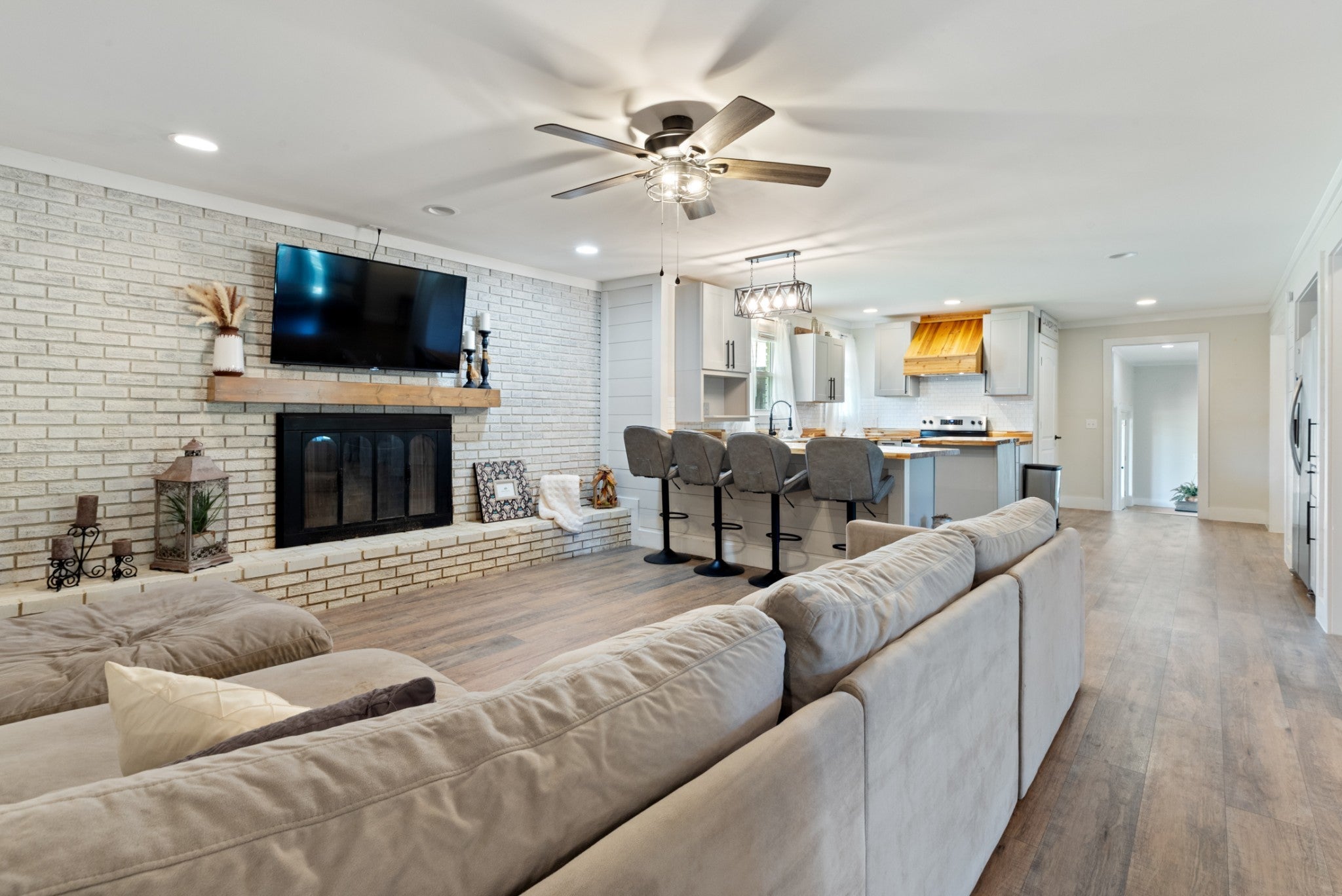 COMPLETELY RENOVATED HOME - BEAUTIFUL YARD WITH CREEK FRONTAGE....THIS ONE HAS IT ALL! * SELLER WILL PAY UP TO $10,000 FOR BUYER'S CLOSING COSTS!! * 2.77 Acres located on the East end of Waverly along Highway 70 * Convenient to local schools/shopping, Dickson & Nashville * Desirable acreage with level terrain * Beautiful shade trees * Creek with swimming hole * Plenty of room for children and pets to play, gatherings or any other type of outings * SPACIOUS ALL THE WAY AROUND! * This ONE LEVEL brick home has 4 bedrooms and 3 full bathrooms. * TWO PRIMARY SUITES * Custom interior renovations include all new flooring, windows, paint, shiplap, drywall, trim, light fixtures, cabinetry, doors, fixtures, etc. * TOTAL RENOVATION * Large entry area with lots of space going into the rear of the home * Formal living room and den offer optional areas for relaxation * Super nice kitchen with stainless appliances, on-trend colors, tile backsplash * Nice front entry foyer with hanging storage * Two-car carport and asphalt paved driveway * Ideal property for a Buyer looking for a sizeable move-in ready home! TONS OF ROOM AND AMENITIES WITH THIS PROPERTY!