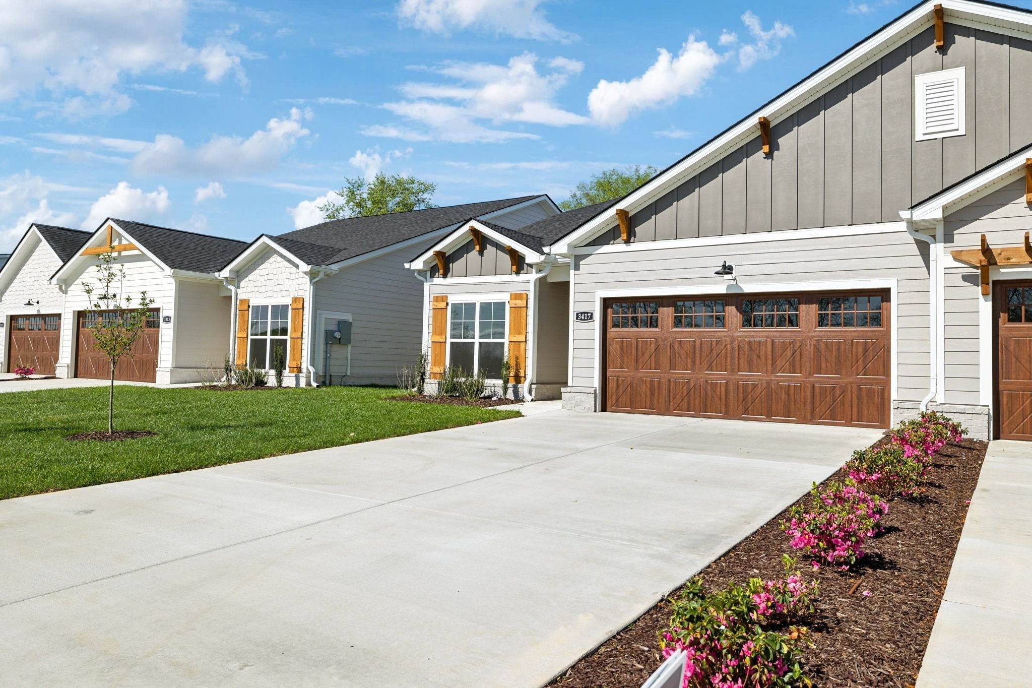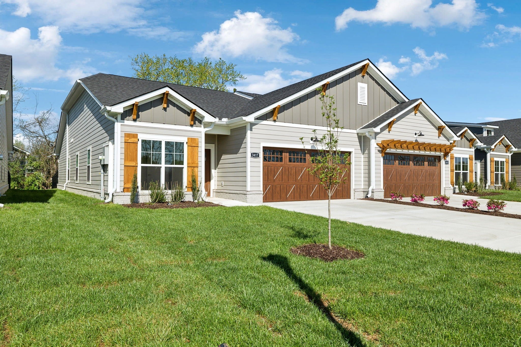 Beautiful New Community Cherry Blossom Downs | The Dogwood Plan A | Interior Package B |3 Bedroom | 2 Bath | Upgraded Selections Have Been Confirmed See Media Section | Built Ins | Beautiful Cabinets | Quartz Countertops | Laminated Hardwood | Backsplash | Free Standing Tub | Tile Walk in Shower | Board & Batten Shutters | No Steps | Back Porches | Fenced in Yard | HOA Mows Yards | HOA Maintains Landscaping |