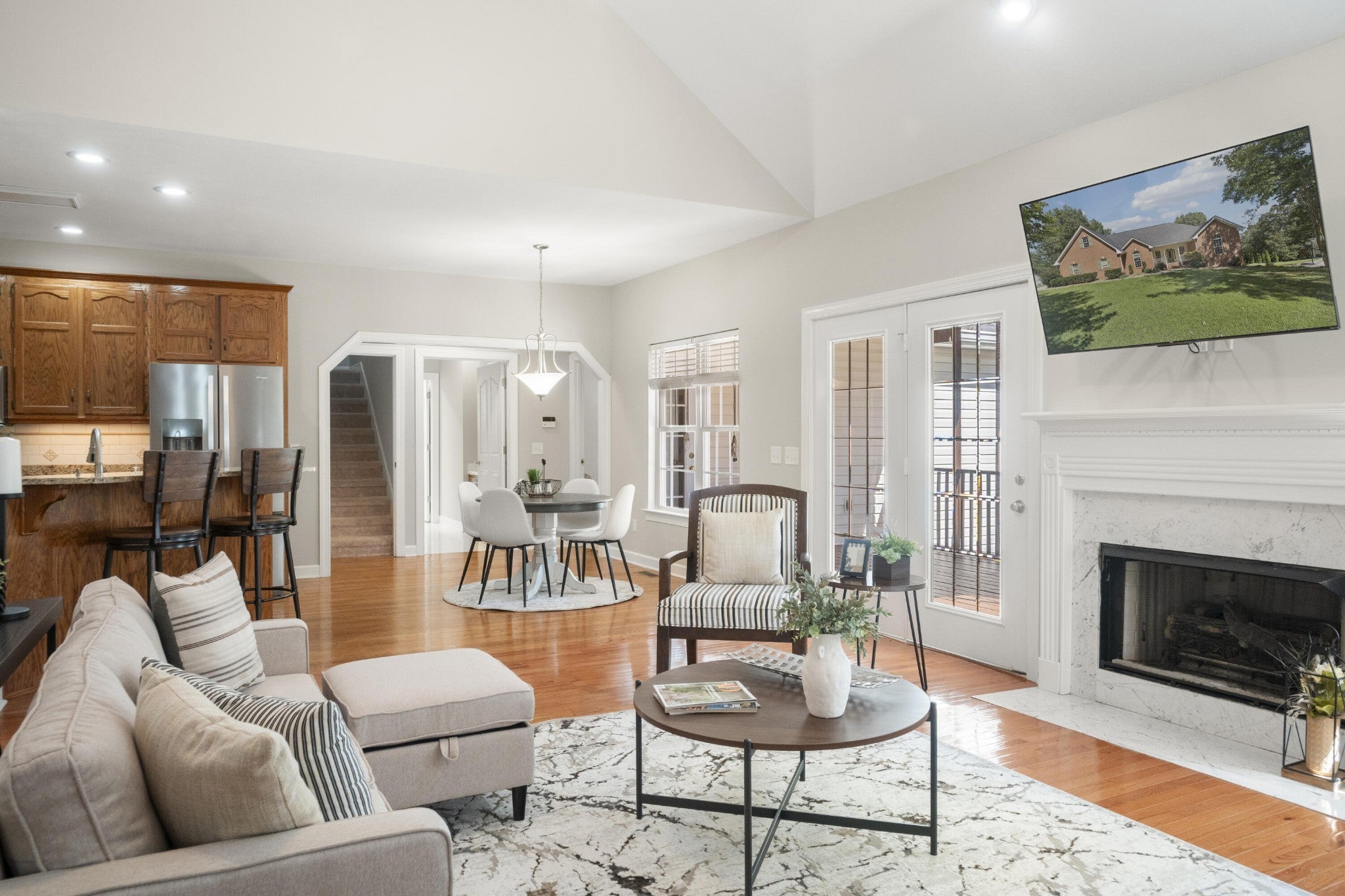 Welcome home to 7435 Coastal Drive! This amazing Harrison home is located in Island Point Estates between Highway 58 and Snow Hill Road, and only 30 minutes from downtown Chattanooga. This home is within 10 minutes of four boat ramps. Island Point community amenities include pickleball/ tennis court(s). This mostly brick 1998 Bill Fine single story home features 3 Bedrooms and 2.5 Baths (on main level) with a finished Bonus Room over the three car garage. When you enter the home, you arrive in the Foyer. Directly ahead is the spacious Great Room with hardwood flooring, gas log fireplace, and vaulted ceiling. To the right of the Foyer are the Guest Bedrooms and Full Bath. To the left is the Dining Room. The Great Room is combined with the Kitchen and casual dining area. A patio door leads to a spacious Screened Porch and expansive deck. The Kitchen has granite countertops, tile backsplash, under-cabinet lighting. Stainless Whirlpool appliances include a microwave/hood, electric range, integrated dishwasher, Adjacent to the Kitchen is a hallway leading to the garage, pantry, laundry with built-in desk area. The Primary Suite is a private retreat located away from the living areas on the back of the home with access to the Screened Porch. Featuring fresh paint , the Primary Bedroom is generously-sized and features an updated Bathroom with double sink vanity; jetted tub; walk-in shower with glass enclosure; and walk-in closet. Out the back is a screened deck and large uncovered deck. Stairs lead from the Great Room to a spacious finished basement with a bathroom and kitchen. There is HVAC throughout the basement! Additional parking for a RV in back of the home.