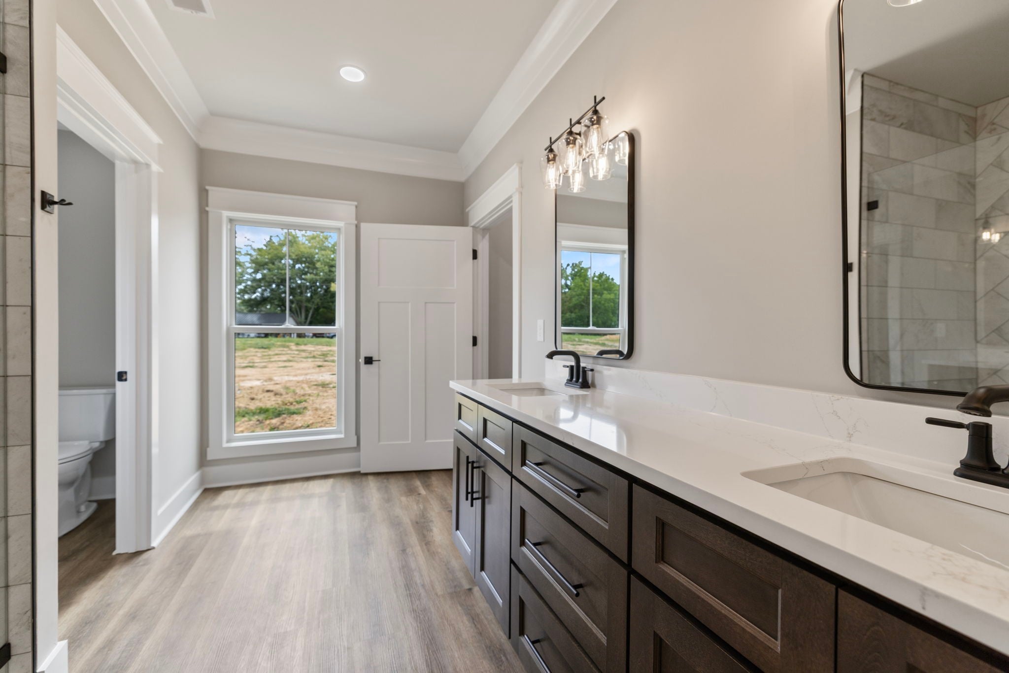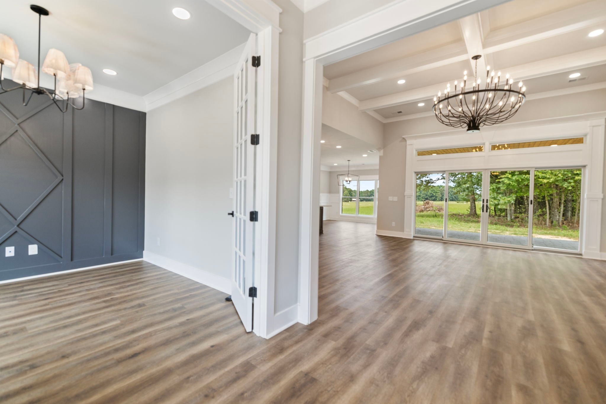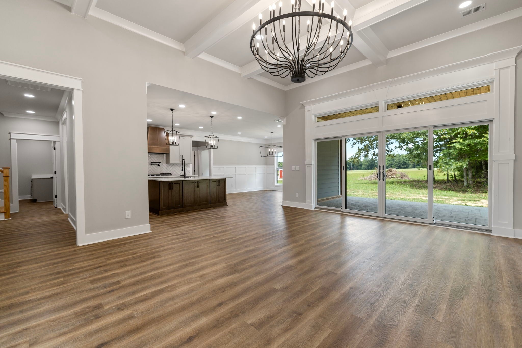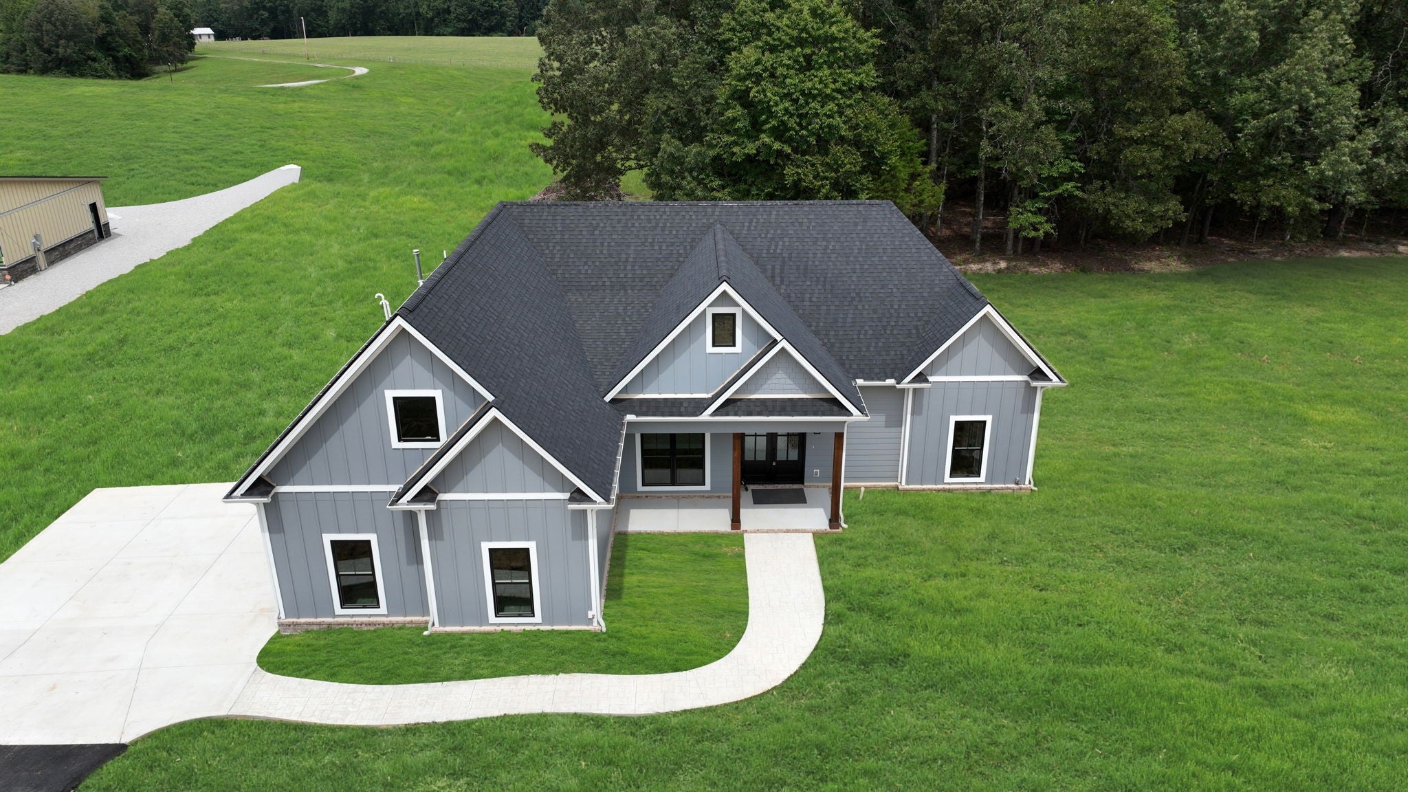This custom built 4-bedroom, 3-bath new construction, nestled on 2.92 acres of serene, partially-wooded land, offers versatility: blending modern style and multi-functionality. Home features expert craftsmanship and attention to detail: entry foyer, 9' ceilings, spacious great room, large kitchen/dining area featuring quartz countertops, stainless appliances- provides an inviting space for food, fun, and entertaining. The LVP floors throughout the home with tile in bathrooms further ensures lasting beauty and durability. On-demand tankless hot water heater- means there is Never a COLD shower! Primary bedroom is purposefully split from other main-level bedrooms for added privacy and on-suite bath has double vanities, tile (walk-in/wheel chair accessible) shower, and large walk-in closet. The coffered ceiling in the office/study adds a touch of class and distinction. Utility Room also features its own “Doggy Shower” – Wonderfully convenient for bathing your pooch at home! Upstairs 4th bedroom and full bath offer privacy and a place to retreat from the main floor living-areas. Outside you'll find: hardie board siding and rock exterior, tongue & groove ceilings under both front/back covered porches- Stamped back-porch floor beautifully accentuates the outdoor-living space. There are too many finishes you must see to appreciate fully! All measurements are approximate and not guaranteed, if important please remeasure (Buyer & Buyer's Agent to verify all pertinent information).