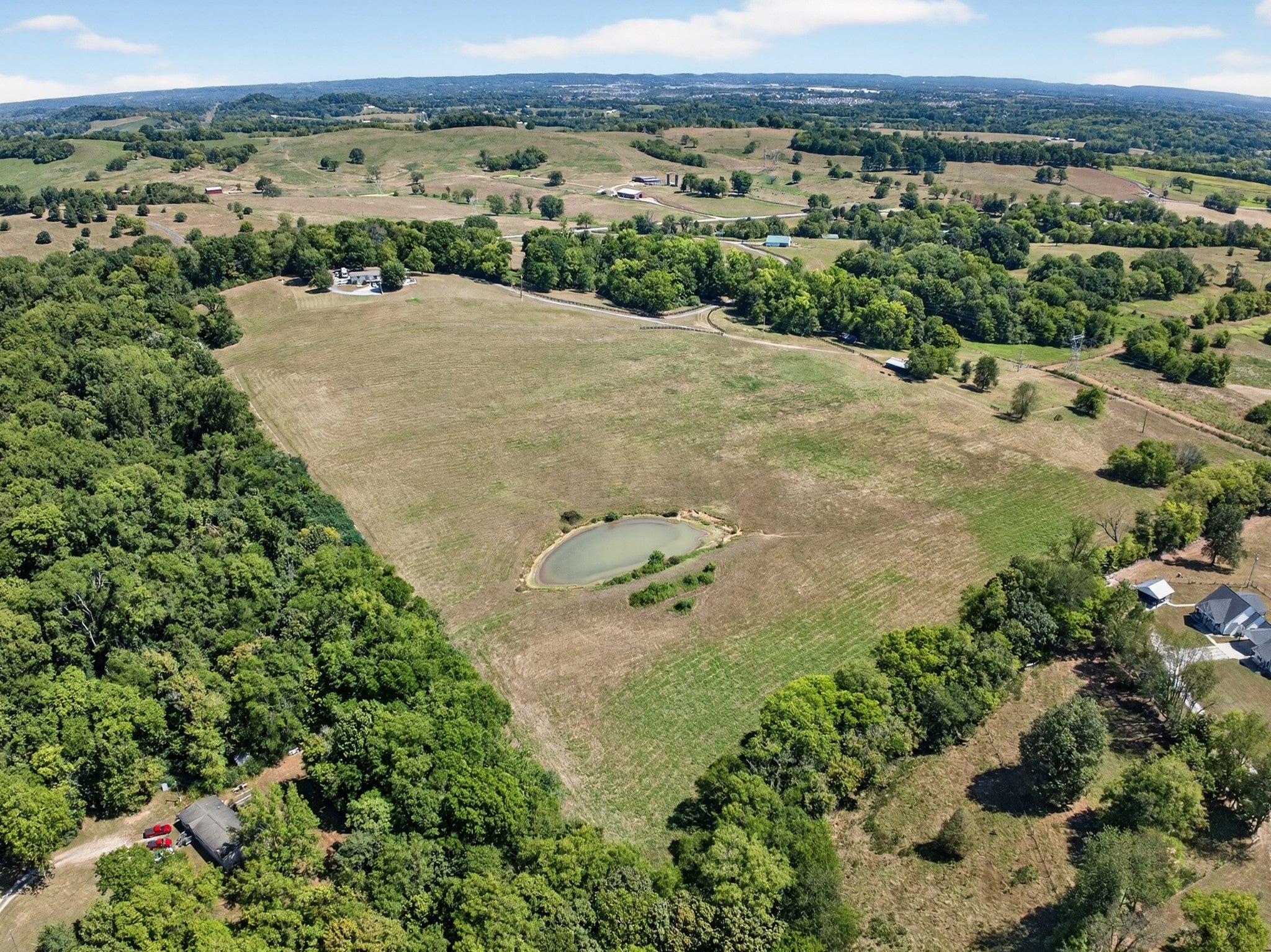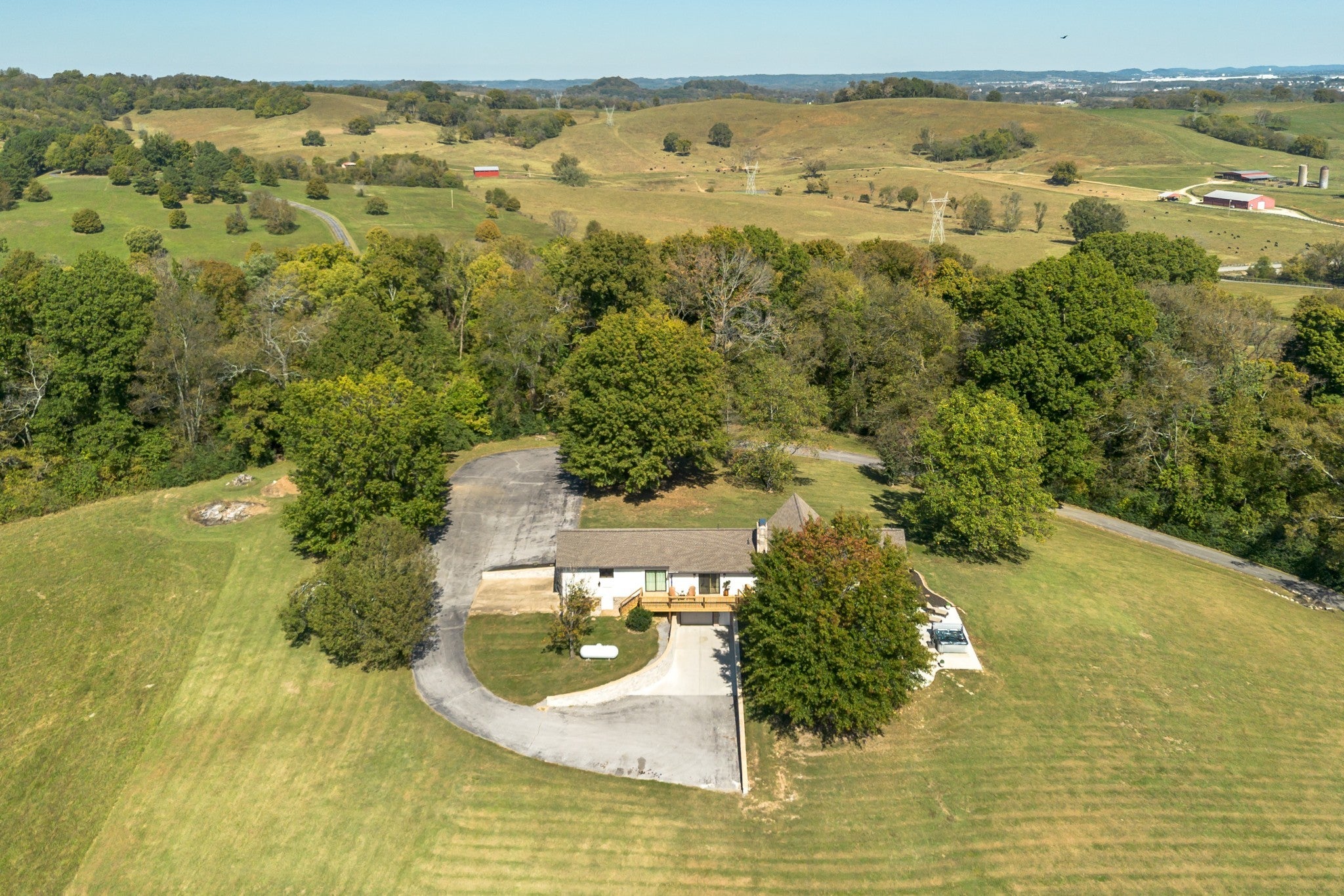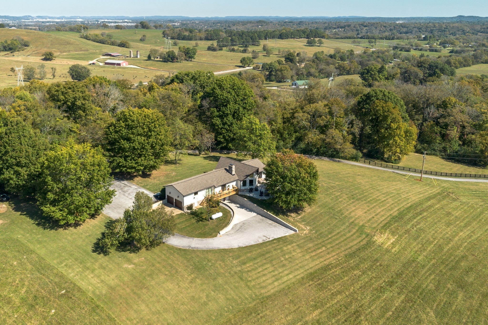 STUNNING views of the downtown Columbia skyline await you from this private 54.9-acre Estate in prime North Maury County on one of the most desired streets to live on with multi-million dollar homes surrounding you. Enter through the beautifully designed custom gate and follow the half-mile driveway to complete privacy, rolling pastures and panoramic views. The property offers a 3 bedroom (2 bedrooms on the main), 3 bathroom home PLUS 2 separate office spaces and a 3 car garage. An additional oversized family room in the finished basement was previously used as a 4th bedroom. A professionally remodeled home that is sure to impress, plus multiple opportunities for expansion, ideal for creating a legacy family multi-generational property. Two additional perc sites have been identified (one 3-bedroom & one 5-bedroom), with the county currently allowing for a family compound up to 6 homesites. Potential for additional perc sites. Fenced and ready for horses, cattle, or other livestock. The land features a large pond, freshly painted 4-rail wood fencing and two barns: a 60x70 metal equipment/hay barn and a 48x48 working cattle barn that can easily be customized w/stalls for horses. A 21x21 floored unfinished attic area above the 2 car garage is great for storage or finish out for additional living space. With Spring Hill Schools, high-speed internet & fiber available, no restrictions, and PANORAMIC VIEWS stretching for miles, this property offers unmatched BEAUTY, functionality, and opportunity. Easy access to Downtown Columbia(15 min), Spring Hill(16 min) Franklin/Cool Springs(38 min) Downtown Nashville & Airport(50 min). Farm & cattle equip negotiable. Owner/Agent