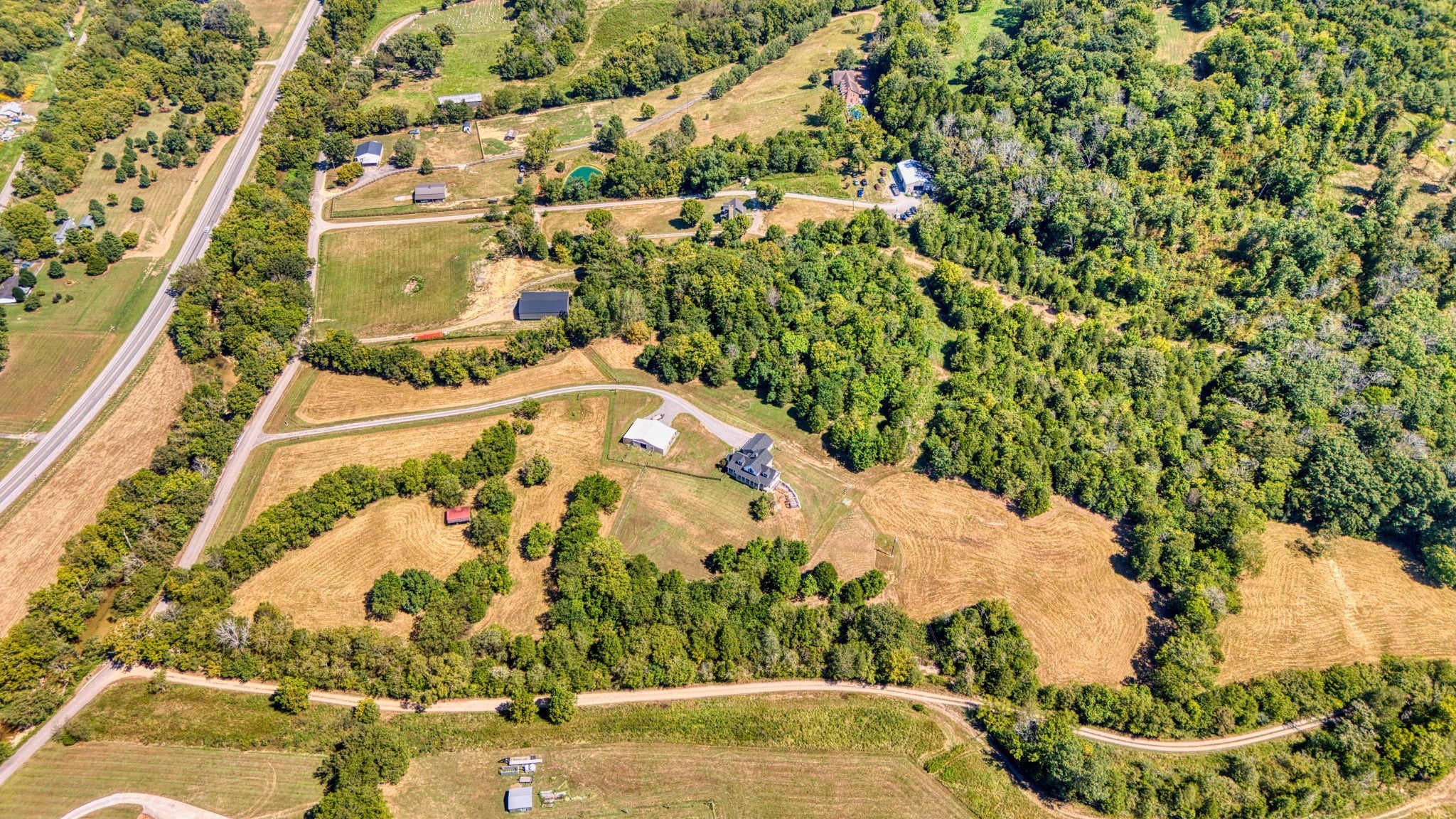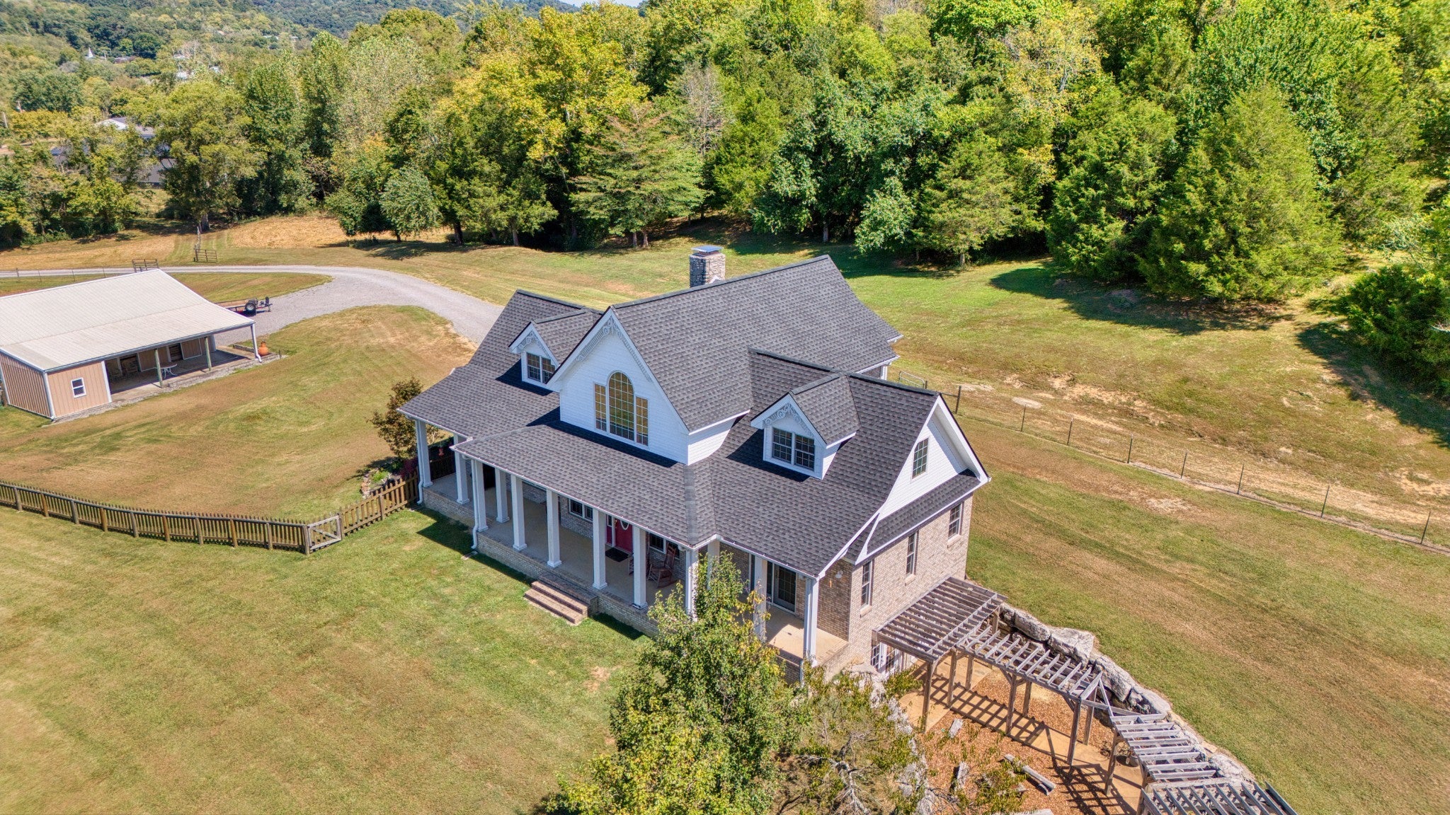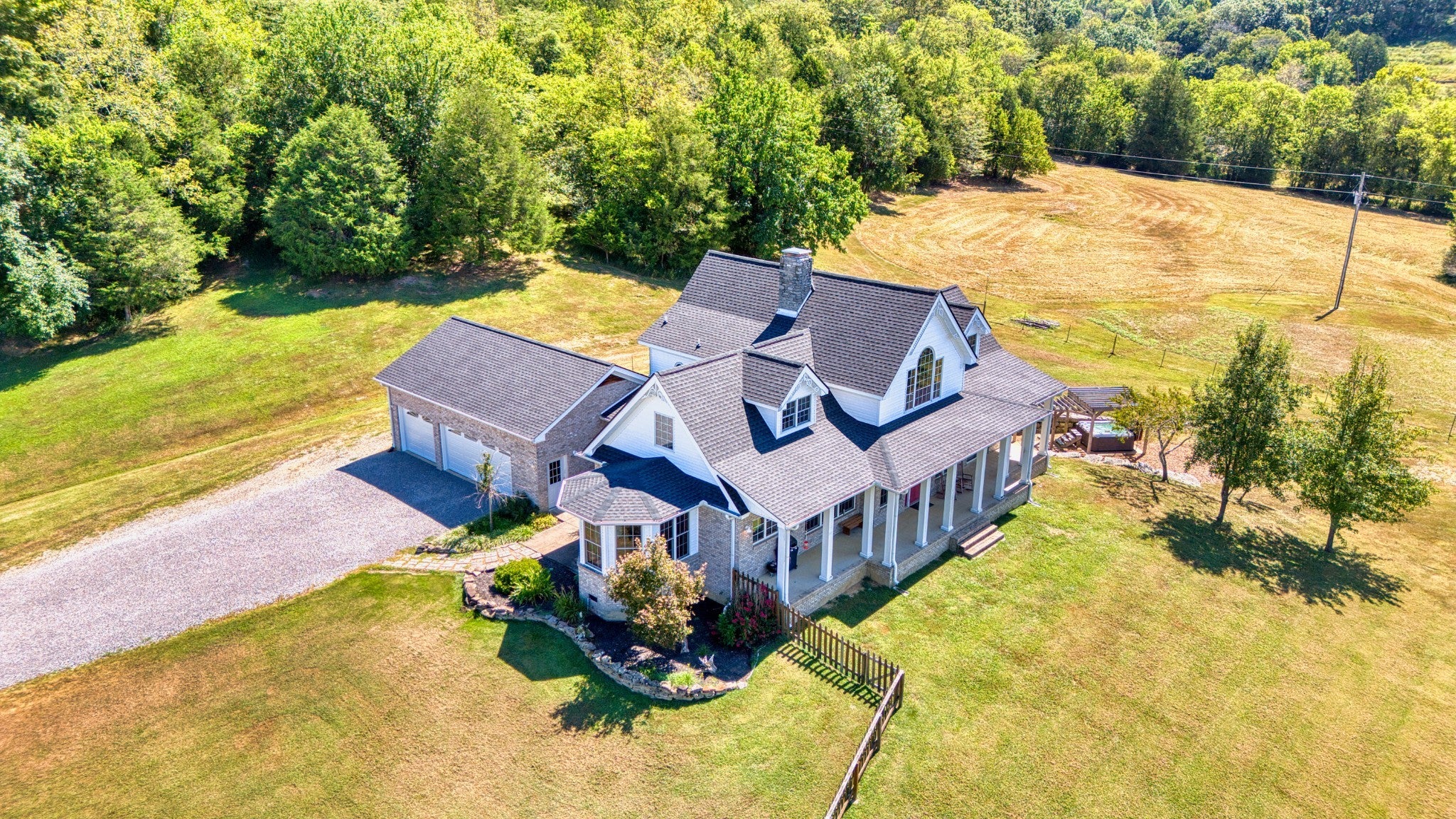 Welcome to your dream hobby farm in the heart of Middle Tennessee, where rustic charm meets modern comfort on 25 stunning acres. Ideal for horse lovers or anyone drawn to farm life, this property offers a 40x60 barn equipped with five horse stalls, a feed room, tack room, electric, and water—plus an additional structure for horse shading. Bledsoe Creek runs through the land, offering a serene natural backdrop and abundant wildlife. The home is a true showpiece, with a vaulted ceiling and a full-height stone fireplace that anchors both the upper and lower levels. Maple flooring runs throughout, creating a warm, inviting atmosphere. The kitchen is a standout with custom cabinets made from genuine Fender guitar wood, bringing a touch of rock-and-roll flair to your country lifestyle. Thoughtfully designed with pull-out slides and a walk-in pantry, it’s both stylish and functional. The main-level primary suite features a walk-in closet, a spa-like bathroom with a garden tub, walk-in shower, and skylight, plus French doors that open to a private sitting room on the front porch. Upstairs, you’ll find two additional bedrooms, a full bathroom, and a cozy loft-style sitting area that leads to a covered overlook deck with picturesque views of the property. The finished partial basement expands your living space with room for a home office, guest suite, or game room. A wood-burning stove keeps the space warm and inviting, and all basement furniture and accessories will remain with the home. Additional basement features include central heat and air, crawl space access, a spacious mechanical/storage room, and an under-stairs storage area suitable for use as a storm shelter. Step outside to a private outdoor retreat complete with a pergola, hot tub, fire pit, and plenty of room for entertaining under the stars. Approximately one acre is already fenced with wire, and the land offers ample opportunity for farming, recreation, and peaceful living.