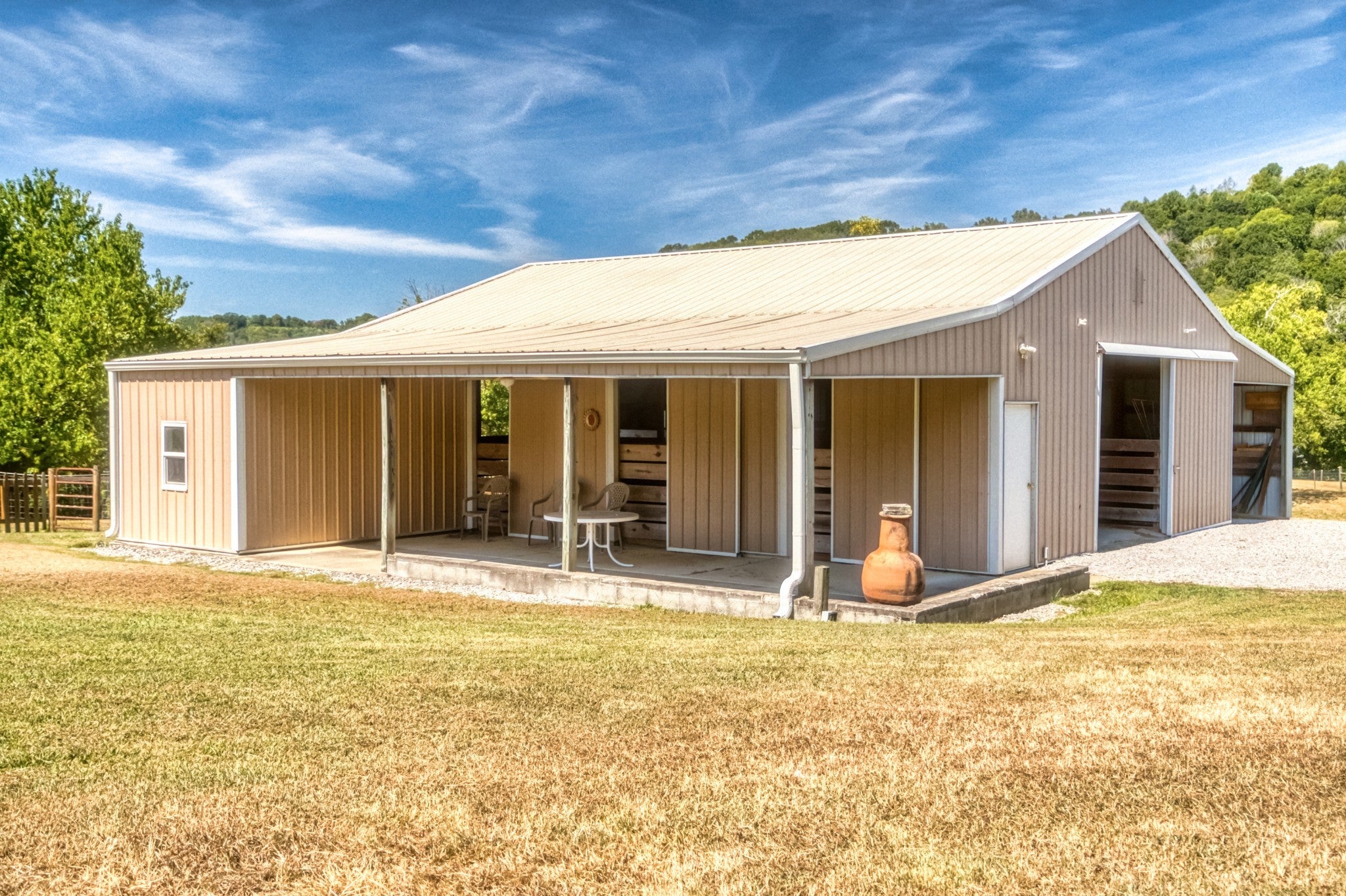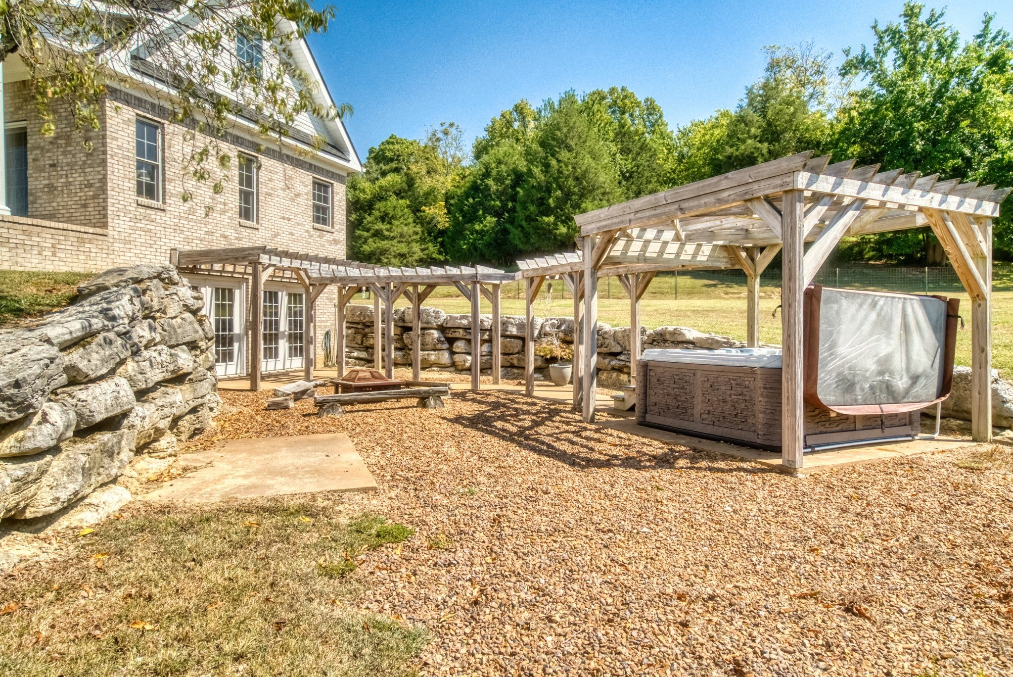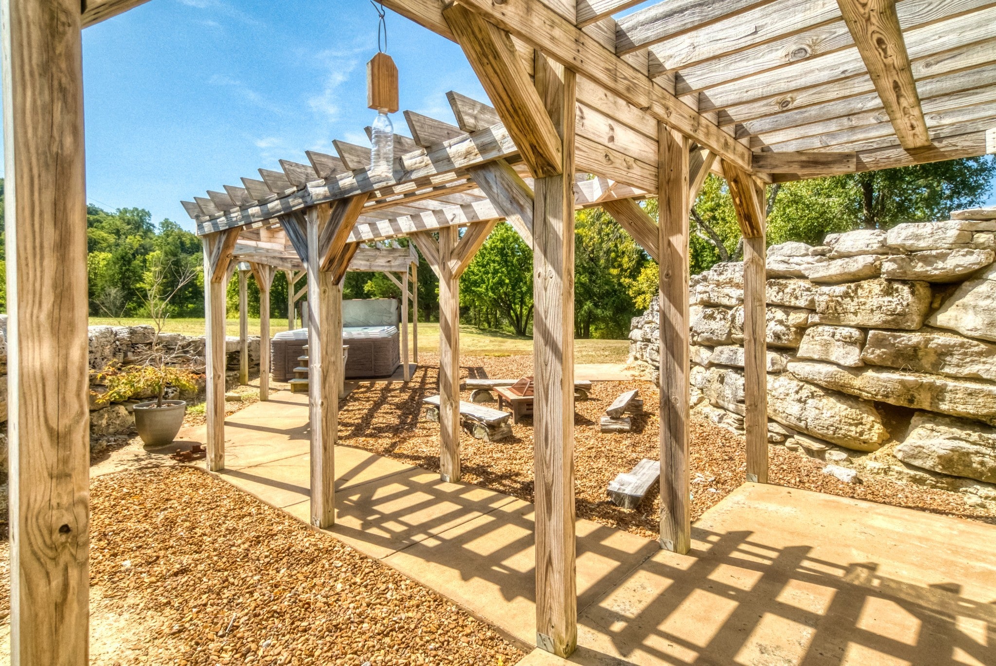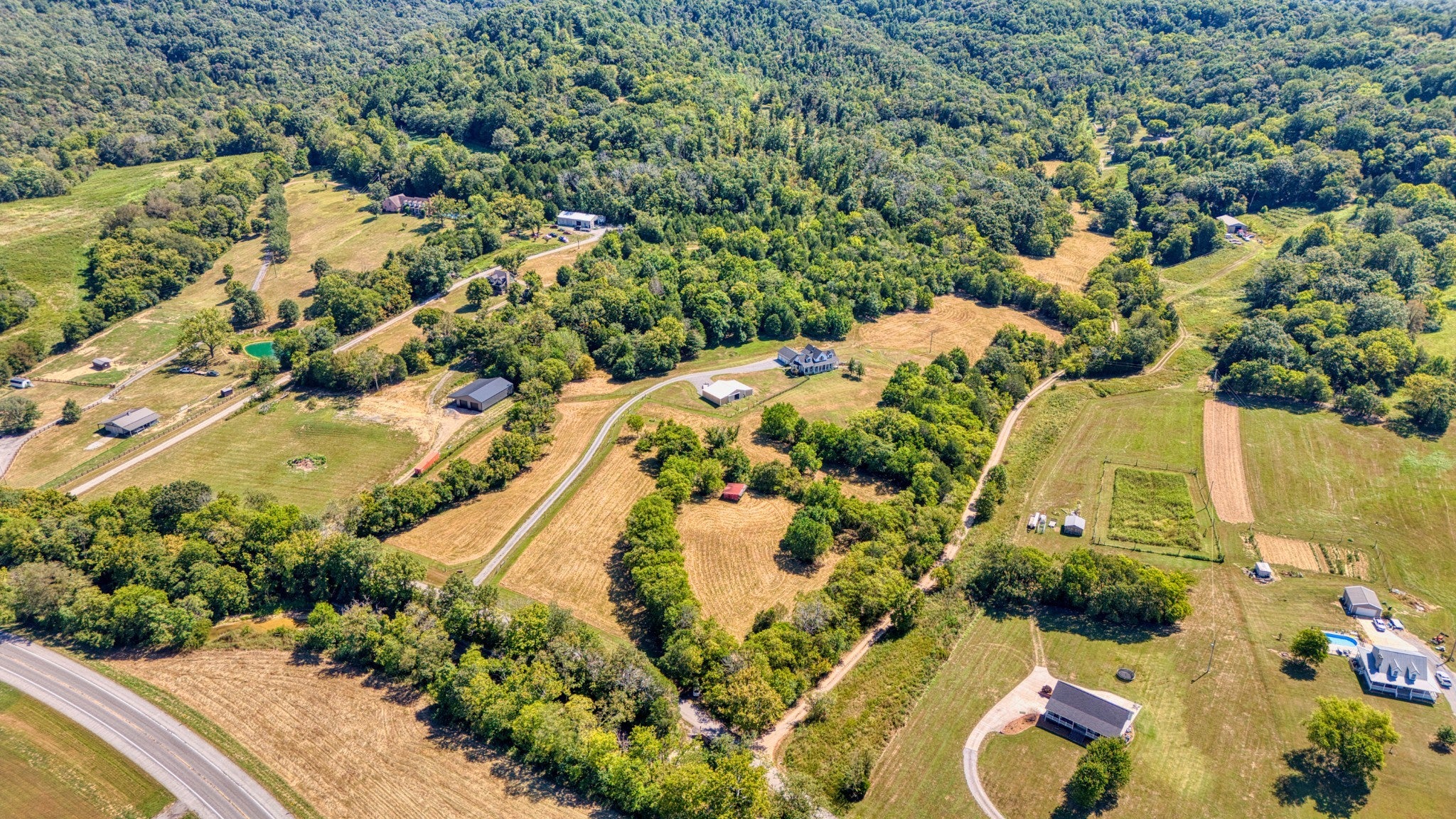 Welcome to your dream hobby farm in the heart of Middle Tennessee, where rustic charm meets modern comfort on 25 stunning acres. Ideal for horse lovers or anyone drawn to farm life, this property offers a 40x60 barn equipped with five horse stalls, a feed room, tack room, electric, and water—plus an additional structure for horse shading. Bledsoe Creek runs through the land, offering a serene natural backdrop and abundant wildlife. The home is a true showpiece, with a vaulted ceiling and a full-height stone fireplace that anchors both the upper and lower levels. Maple flooring runs throughout, creating a warm, inviting atmosphere. The kitchen is a standout with custom cabinets made from genuine Fender guitar wood, bringing a touch of rock-and-roll flair to your country lifestyle. Thoughtfully designed with pull-out slides and a walk-in pantry, it’s both stylish and functional. The main-level primary suite features a walk-in closet, a spa-like bathroom with a garden tub, walk-in shower, and skylight, plus French doors that open to a private sitting room on the front porch. Upstairs, you’ll find two additional bedrooms, a full bathroom, and a cozy loft-style sitting area that leads to a covered overlook deck with picturesque views of the property. The finished partial basement expands your living space with room for a home office, guest suite, or game room. A wood-burning stove keeps the space warm and inviting, and all basement furniture and accessories will remain with the home. Additional basement features include central heat and air, crawl space access, a spacious mechanical/storage room, and an under-stairs storage area suitable for use as a storm shelter. Step outside to a private outdoor retreat complete with a pergola, hot tub, fire pit, and plenty of room for entertaining under the stars. Approximately one acre is already fenced with wire, and the land offers ample opportunity for farming, recreation, and peaceful living.