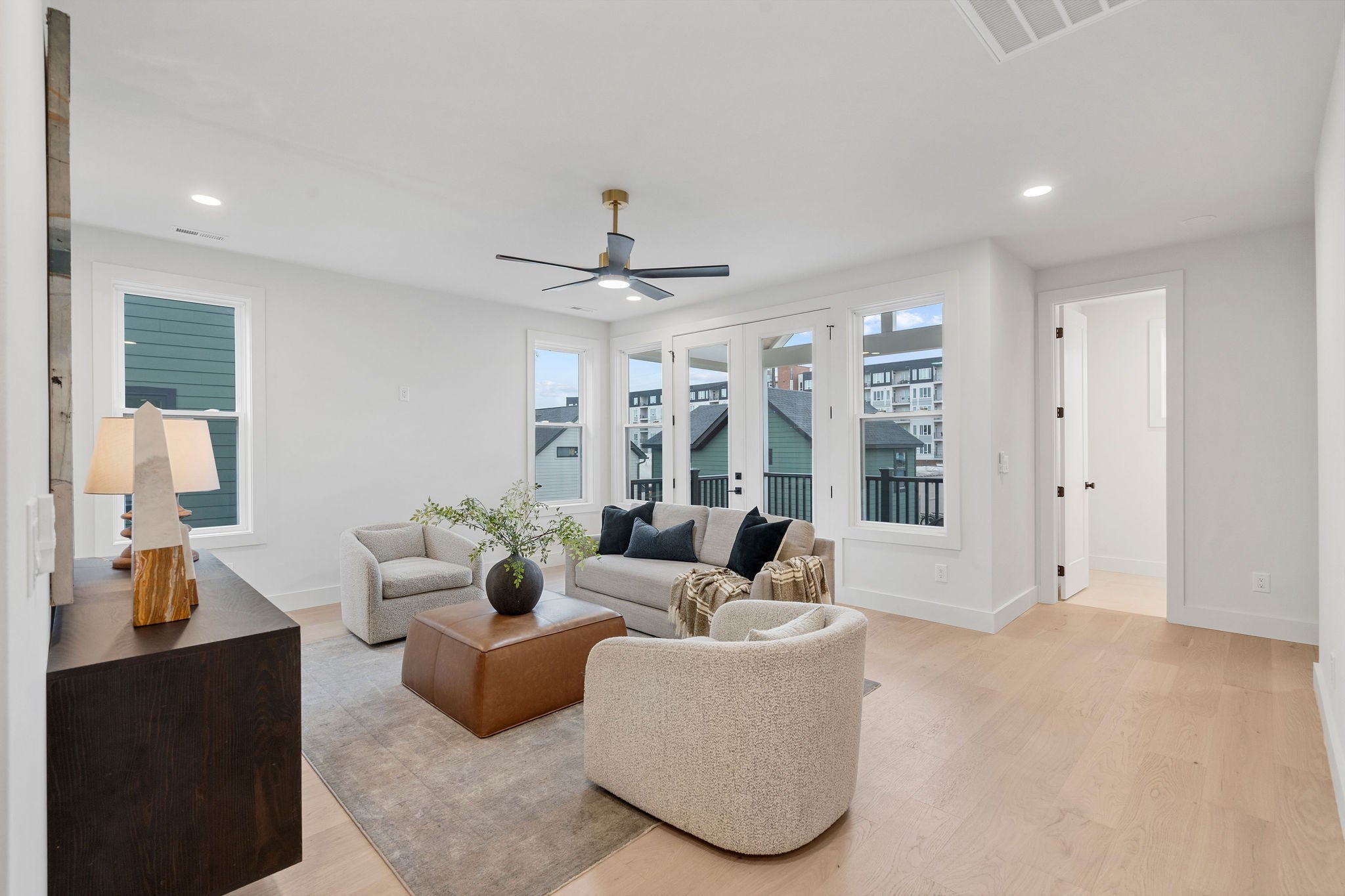 This inspired new build by Brass Tacks Construction blends modern interior design with luxury form and function, and offers a detached 1 bed 1 bath studio apartment for use as an office or *owner-occupied Airbnb*! The 3,154 SF main home features 4 bedrooms, 3 full baths, 2 half-baths, and showcases a thoughtfully designed layout with high-end finishes throughout. The designer decorated open living area/kitchen/dining floor plan is perfect for entertaining, and the prep-kitchen allows additional space to keep the mess out of sight of your guests. The main level features a study with built-ins and the primary bedroom with a huge walk-in closet and owner's laundry. The second level features three bedrooms with en suite bathrooms, as well as an ample utility room and massive loft recreation area. Outside features a large covered balcony with outdoor fireplace and a detached two-car garage with studio apartment.