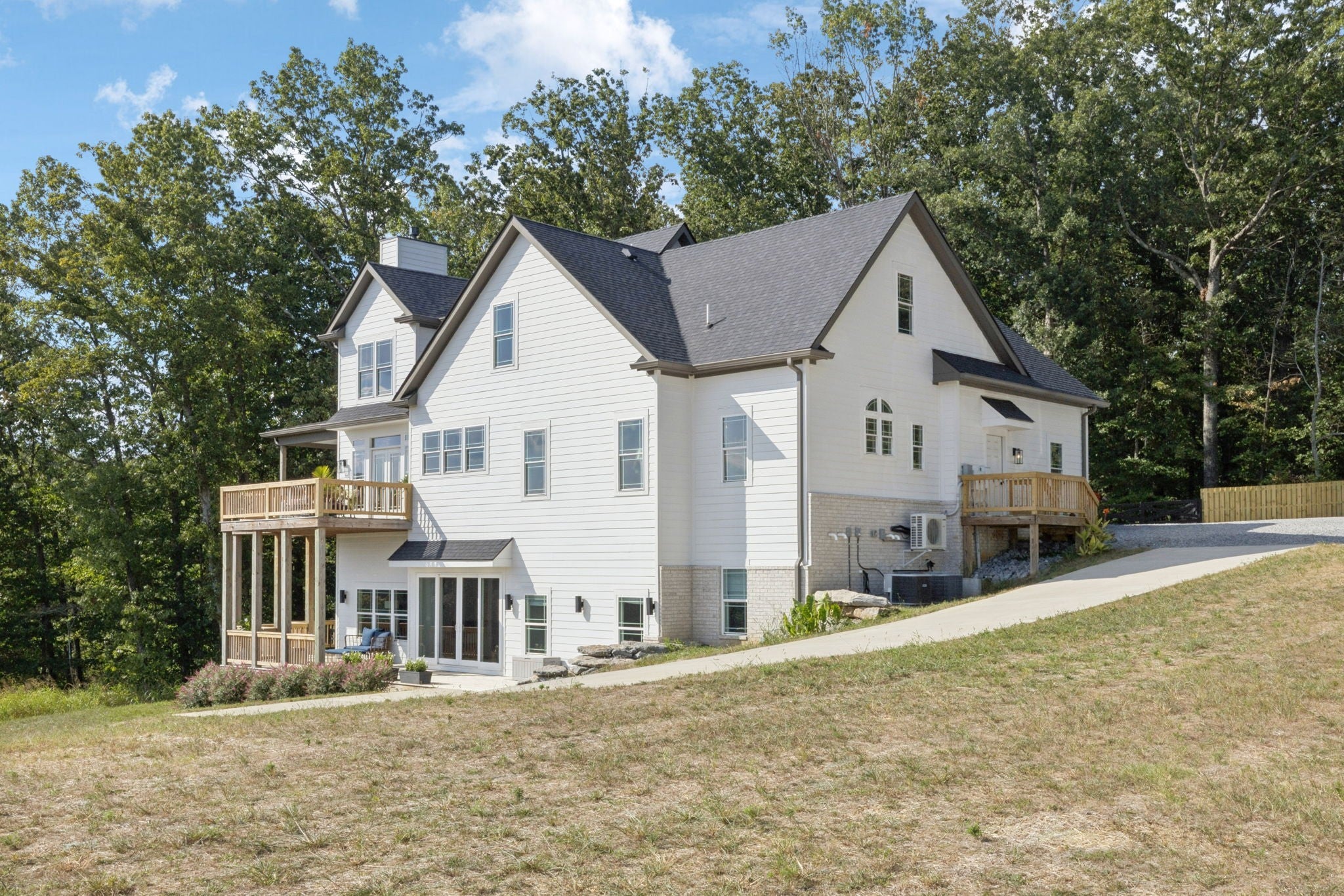 Welcome to a rare retreat where timeless design meets modern luxury. Nestled on 5.1 private acres and just 20 minutes from Nashville, this custom-built estate offers five spacious bedrooms, four and a half bathrooms, and a level of craftsmanship that sets it apart. A gated driveway opens to a home designed for both comfort and sophistication, with wraparound porches that invite you to relax and enjoy the surrounding landscape. Inside, the main-level primary suite offers a true sanctuary, boasting a lavish spa-inspired bathroom with a soaking tub, marble flooring, and elegant finishes. Throughout the home, quartz countertops, premium stainless-steel appliances, and designer touches elevate the kitchen and living spaces, while the flexible floor plan includes an in-law suite and a reinforced interior room for safety and peace of mind. An additional outbuilding provides the perfect opportunity for a private home office, art studio, or retreat, while the oversized two-car garage and abundant storage ensure practicality matches style. Whether you envision quiet mornings surrounded by nature, evenings entertaining guests, or simply a serene escape from city life, this estate offers an unparalleled lifestyle in a truly exceptional setting.