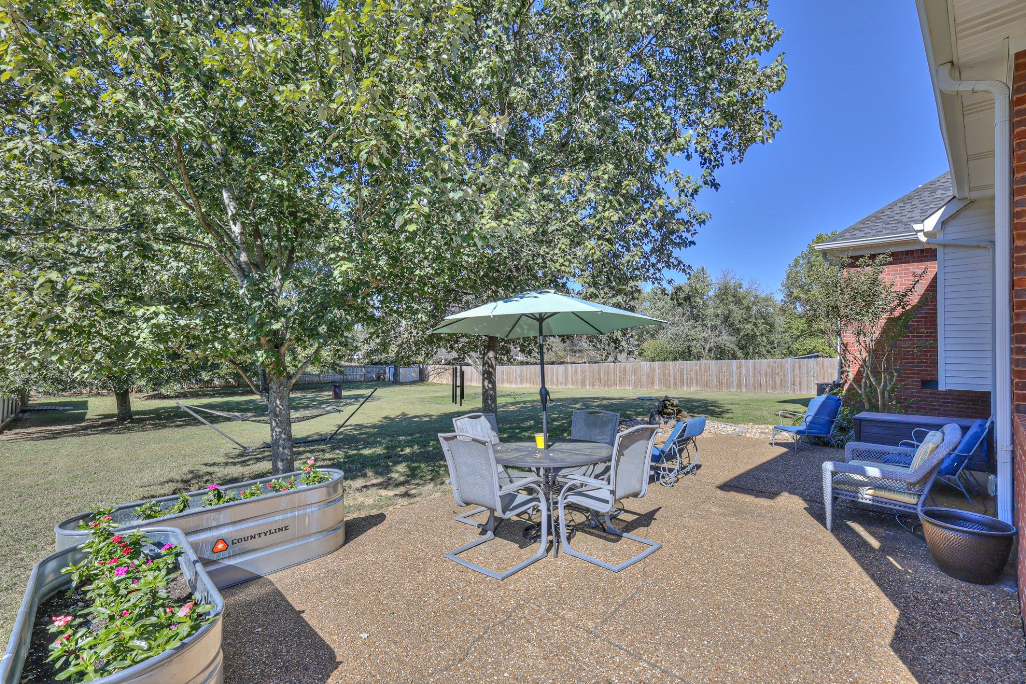REDUCED. $5000 call agent for Info .....over half acre treed lot Beautiful all brick home with park like setting. Beautiful trees and gorgeous landscaping plus a privacy fence. covered back porch to enjoy your morning coffee and an extra large patio, 15x30, to enjoy entertaining your friends and family..kitchen with new granite tops, bar, and breakfast area... all living spaces have hardwood with new carpet in bedrooms..crown molding..newer roof, new water heater..new HVAC..large shed with power will stay.. has a really really nice carport for extra parking or parking for your boat since you are only a couple miles from the lake.. plus a 2 car Attached garage. must see this home!!!!! no HOA … has paved walking trails!