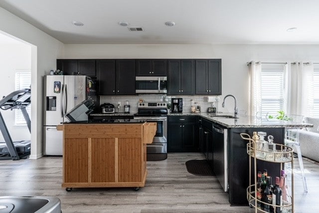 - Electric Oven, Cooktop, Dishwasher, Microwave, Refrigerator, Stainless Steel Appliance(s)