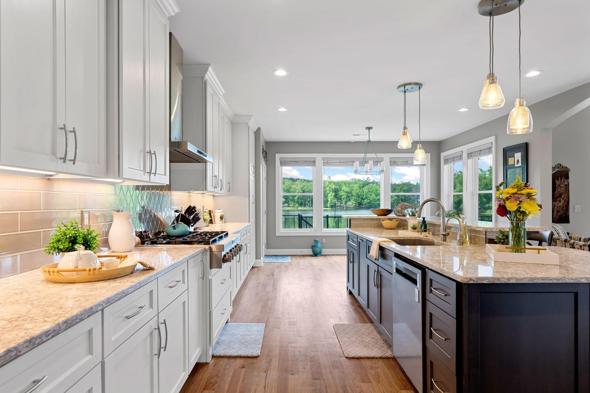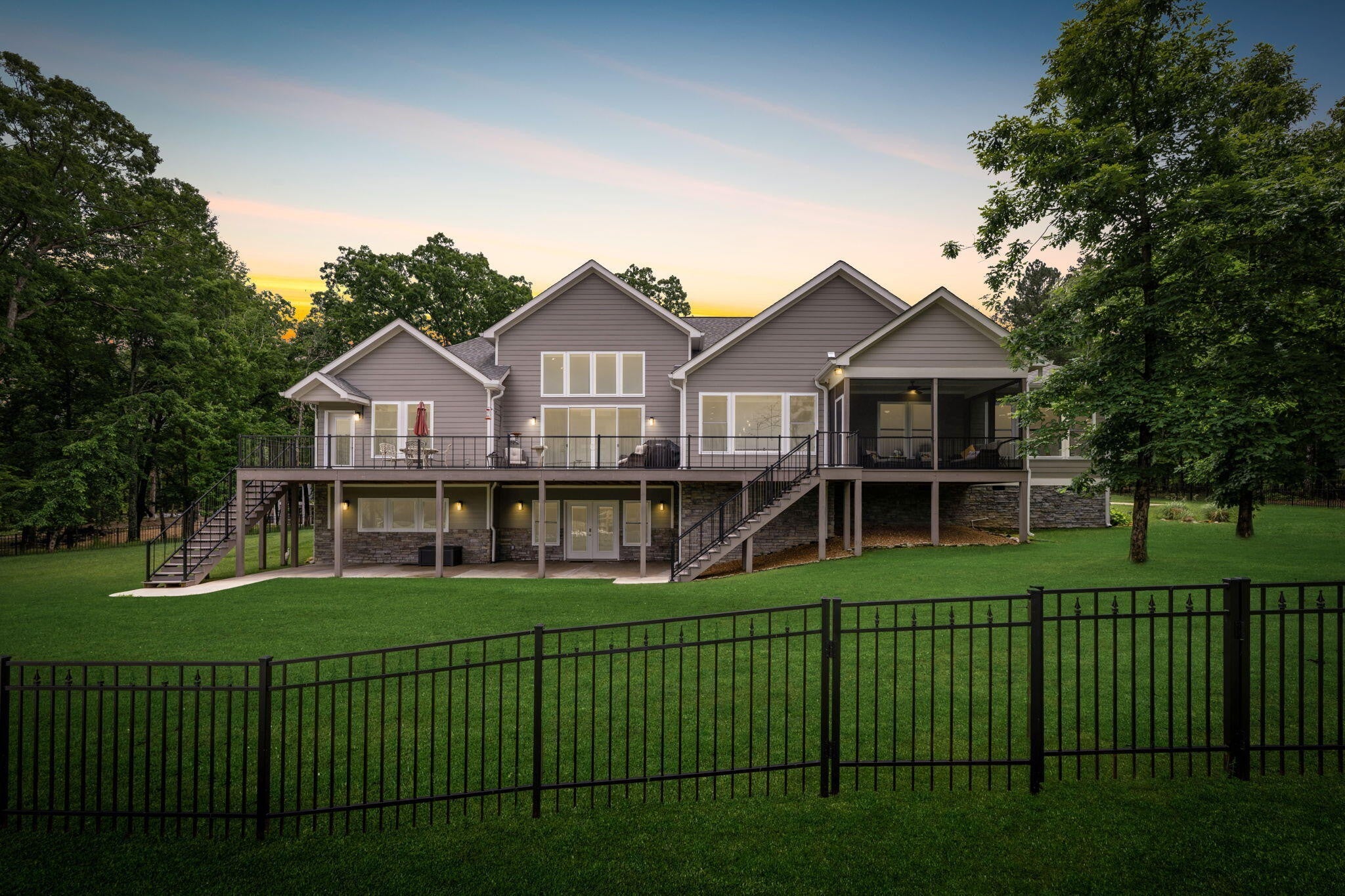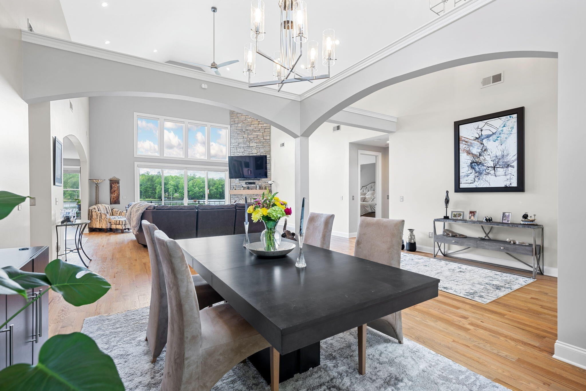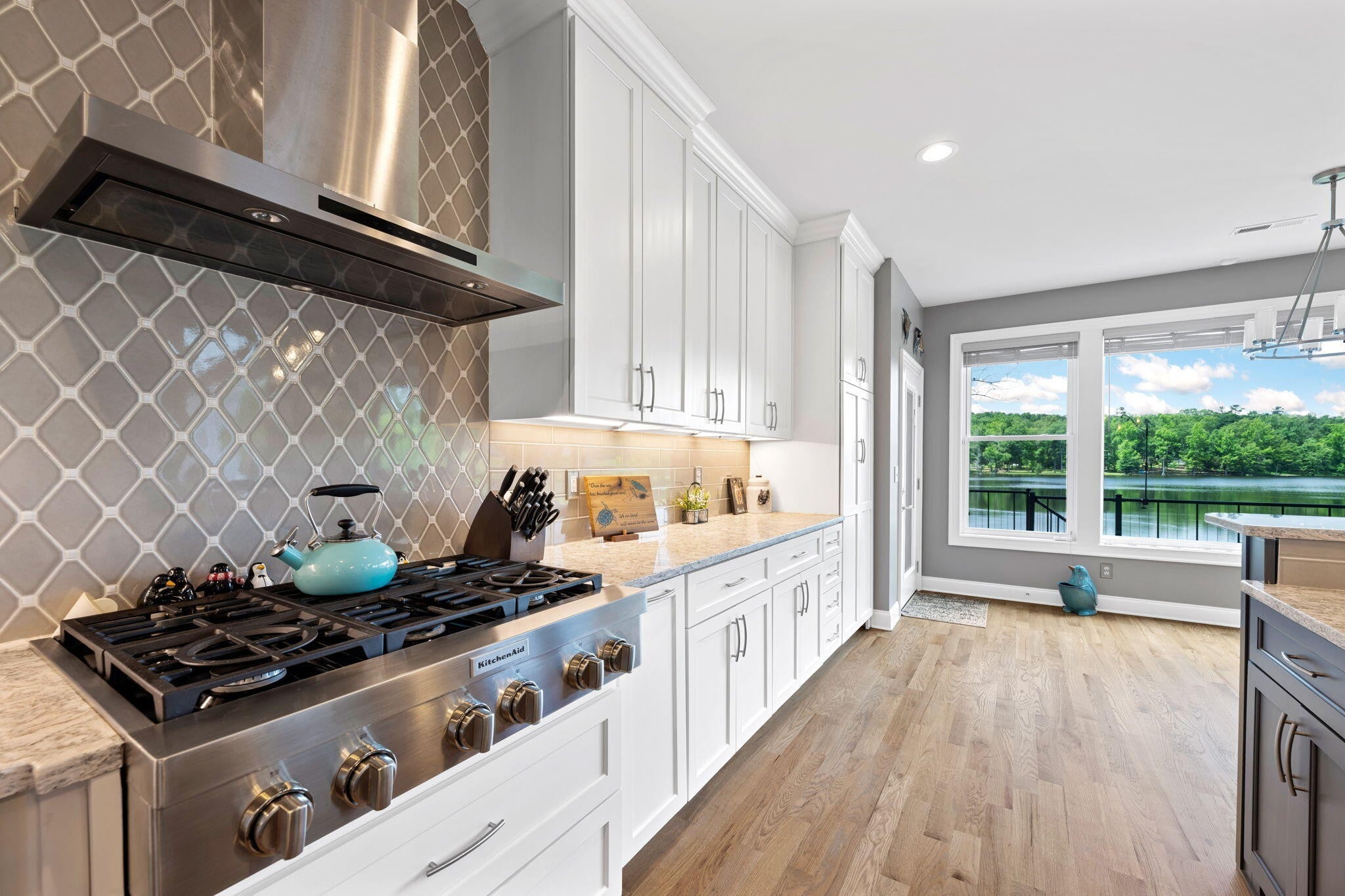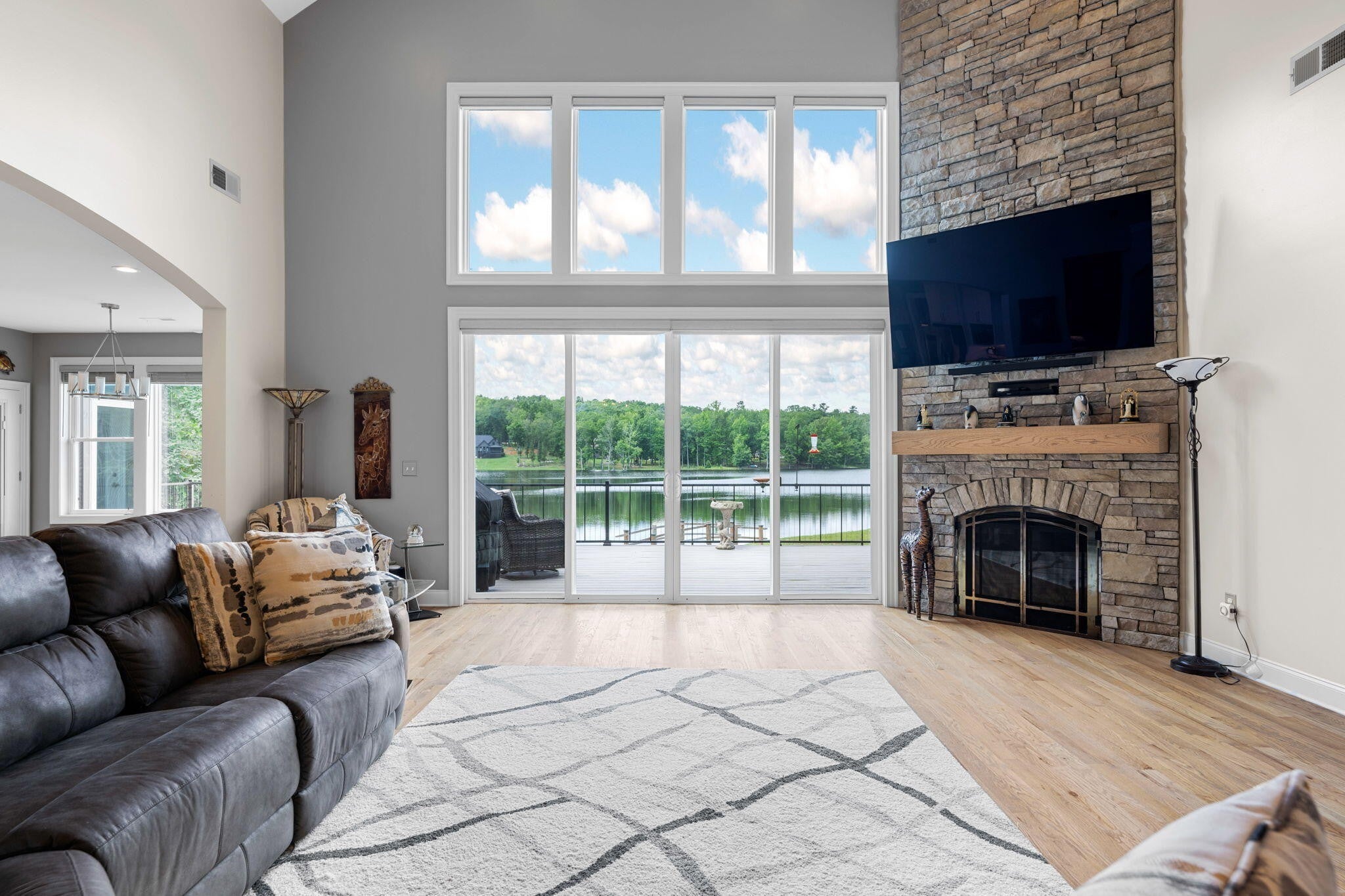 Come and see why this is the perfect 'forever' home for you and your family. Sitting on one of the largest gated community lots in Hamilton County, this home combines all of the amenities of a true custom build, with the incredible peace & privacy of a country setting. Start looking forward to the most relaxing part of your day, which is driving home with very little traffic, and nothing but a lovely scenic drive ahead. Enter the double gates at the community's entrance and enjoy driving past acres of dense woods and gorgeous custom homes. Take your time driving around the lake itself for glimpses of the water, the deer, or just the abundant scenery. The biggest advantage of this location is the ease of access to all of Chattanooga. Downtown destinations are a simple drive across 153 and Amnicola Hwy, with no worries about construction issues. Plenty of shopping in Ooltewah, and Cambridge Square is a delightful commute. Hamilton Place and Cleveland shops are both lower traffic and fairly close as well. The home itself is well placed along the waterfront of this private lake, with hundreds of feet of shoreline to explore. It's surrounded by trees to hide it from the road, for the ultimate in privacy. It was designed to be a retreat from the hustle and bustle of life, and all of the noise that goes with it. This private lake has fairly few homes allowed, to ensure the peace is forever. Inside, the owner copied a trusted floor plan that flows incredibly well and shows off the views to perfection. The front doors open up to the Great Room, which is the center of this home, with floor to ceiling views of the water. The adjoining kitchen is the heart of this home, made for entertaining and sharing all along this huge open area. It offers counter seating, breakfast nook and a formal dining area as well, all designed to keep your guests close by and comfortable. A large roaring fireplace and stone wall dominates this room and accents the water view.