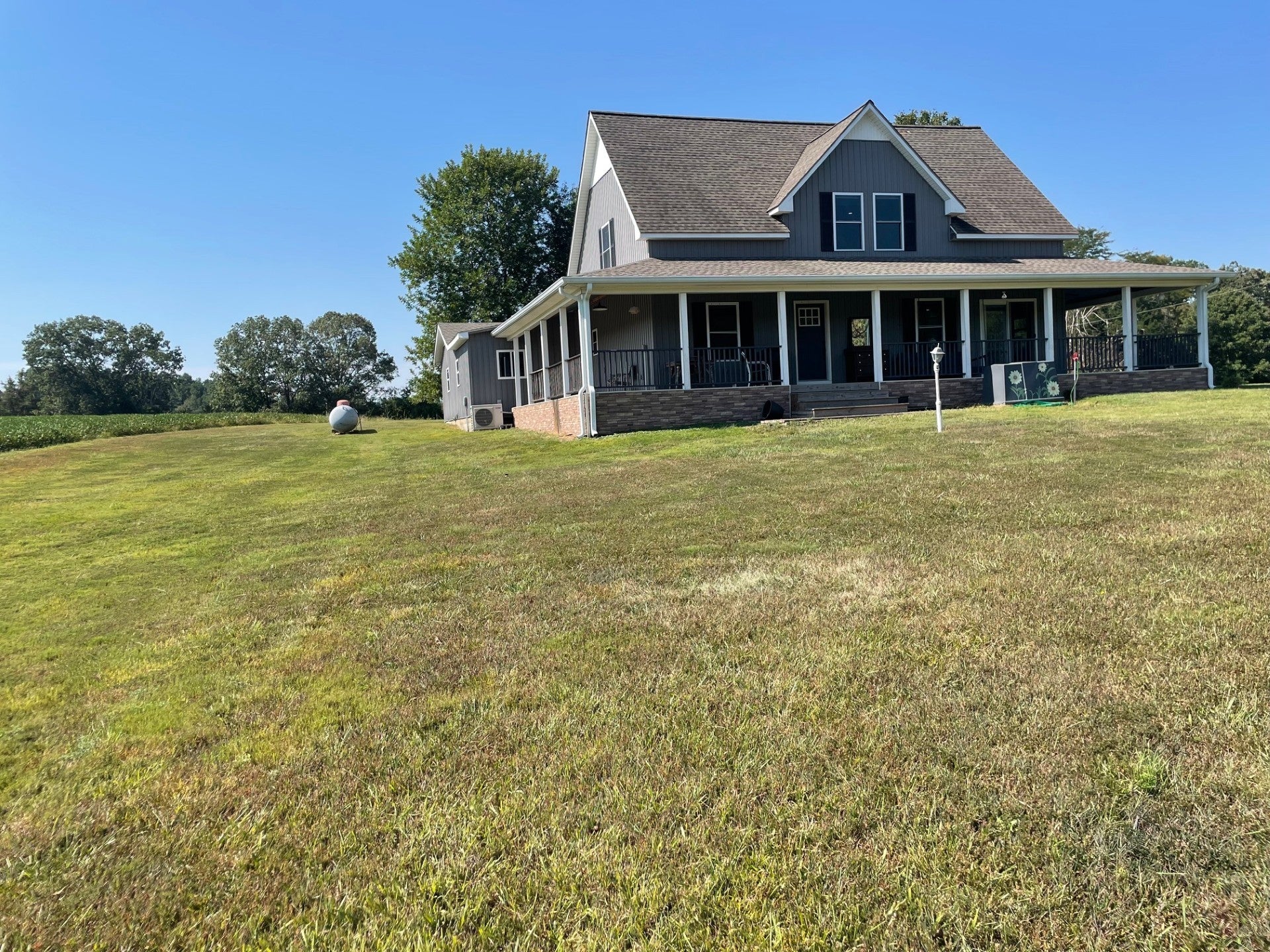 SECLUSION!! Custom built home on 54+/- acres just minutes from the Kentucky state line. Uniquely designed three bedroom two bathroom home features: Custom kitchen cabinets with granite and butcher block countertops, farmhouse sink, stainless steel appliances including gas range/oven and tile backsplash. Open floor design with high ceilings and a loft room overlooking the living area, 10x21 master suite with bathroom and walk in closet, brick veneer tile flooring in hallway-guest bathroom and utility room. The original 480 square feet "cabin" was built in 1975 and has the 10.5x 12.5 bedroom, the den and plenty of storage areas. The property is a blend of 25 acres in rotation crop, 10.5 +/- acres of open yard/pasture, and 18.5+/- acres of marketable timber. Barn/storage building on edge of yard. There is also a pond with a dock. Annual crop income is $2,750.