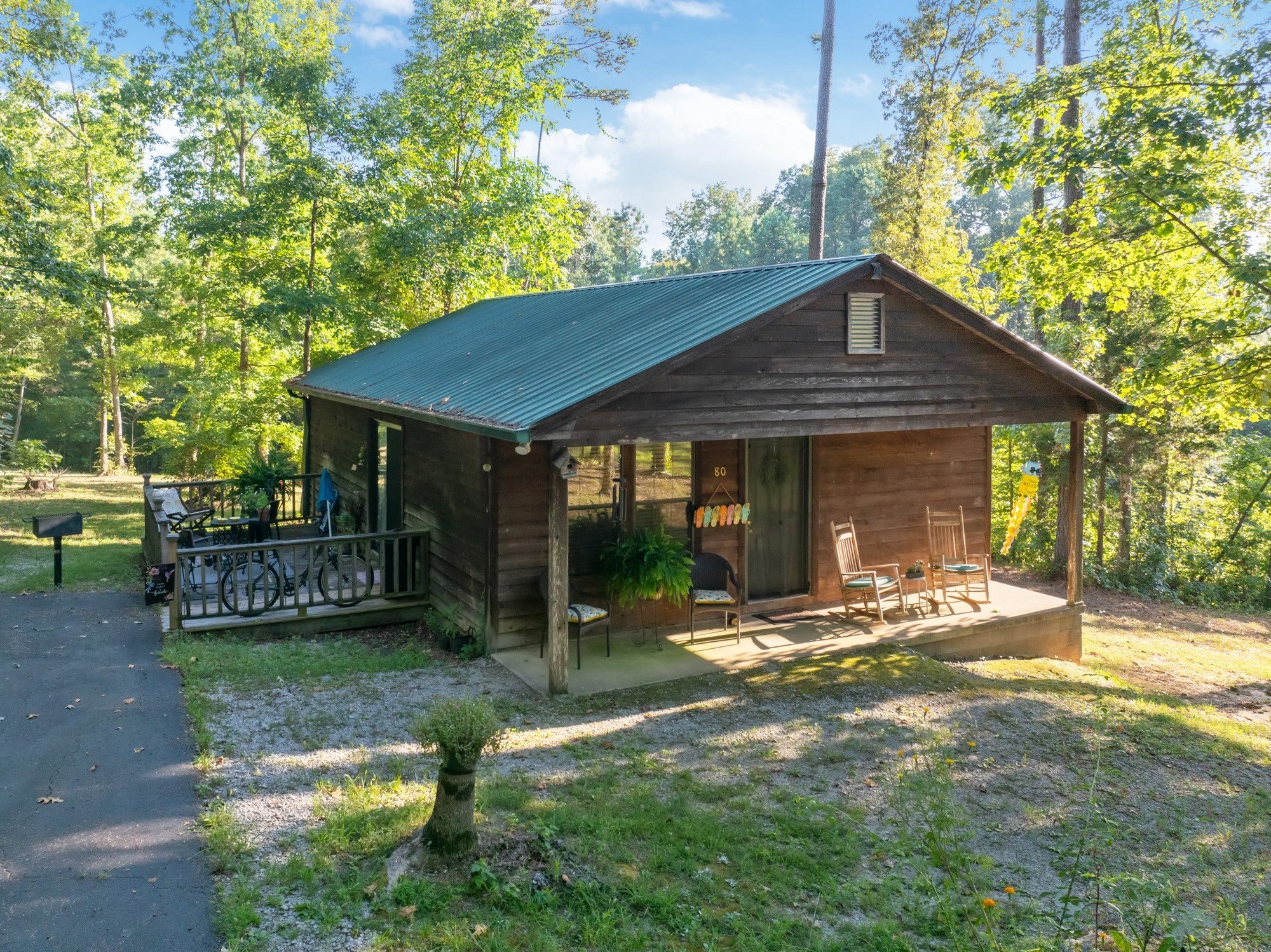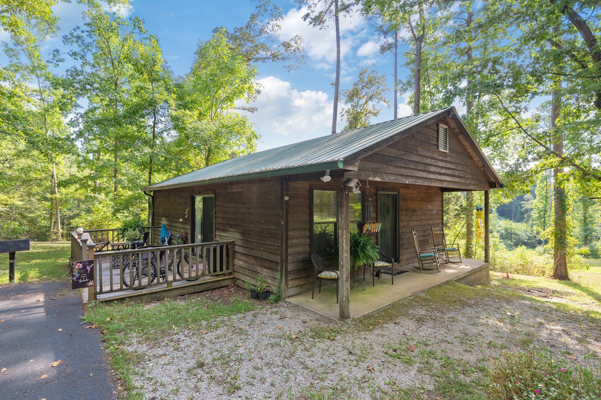 Secluded retreat featuring 7 charming cabins on 12.81 acres in a gated community with a private drive leading to all cabins. Currently operated as a 55+ community, 5 of the cabins are rented, offering excellent income potential. The main cabin is a spacious 2-bedroom, 3-bath home with 1,600 sq. ft. and is occupied by the owner. Five cabins are 2-bedroom, 1-bath units with 768 sq. ft. each, and one cabin—currently used as the office cabin—is a studio with 1 bedroom, 1 bath, and 512 sq. ft. Located next to Chickasaw State Park, this property offers an unbeatable setting for investment, a family retreat, or creating your own vision—all with privacy and natural beauty. Visit chickasawchalet.com for more information.