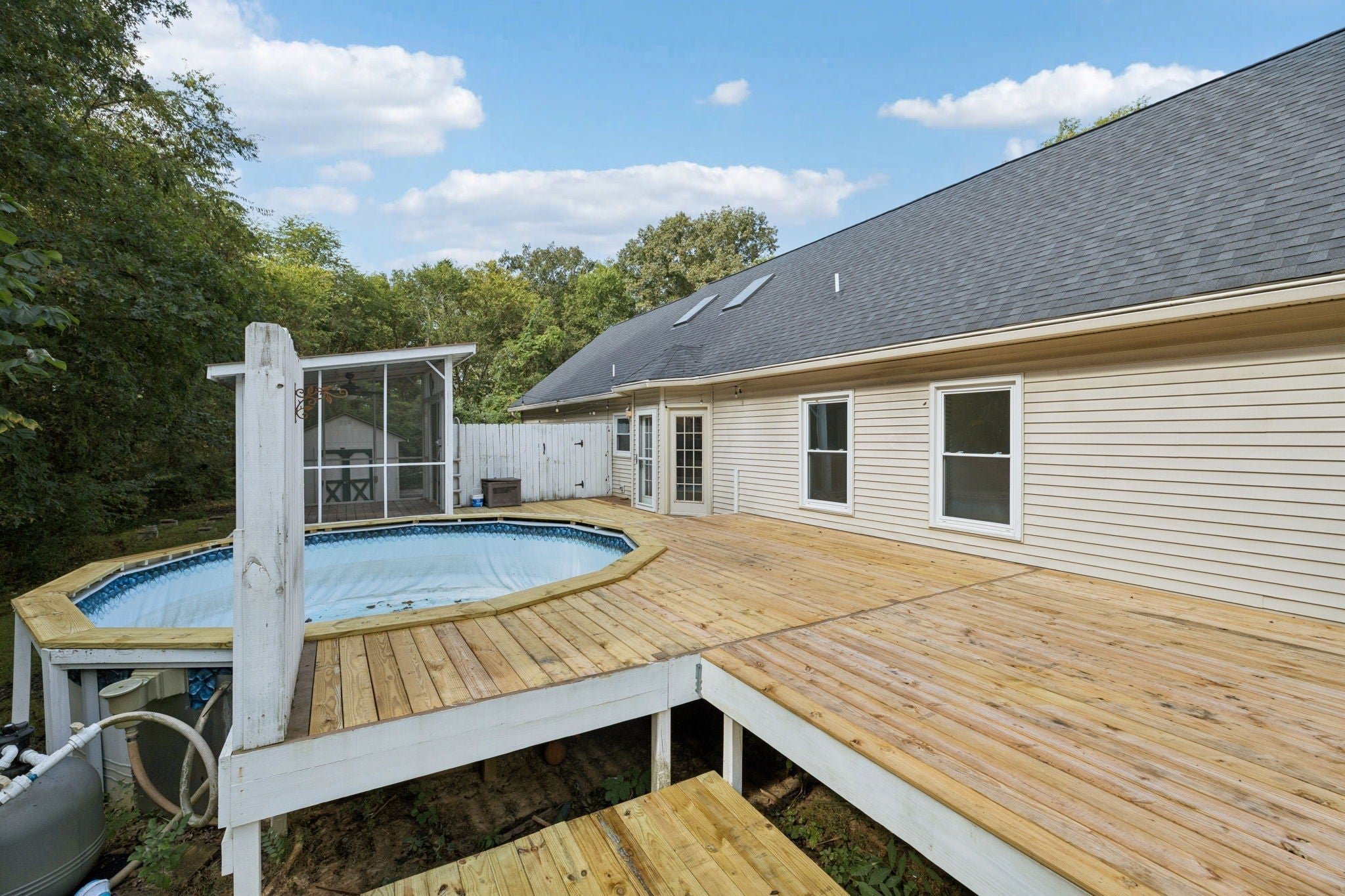 Discover this beautifully maintained 3-bed, 3-bath, 3,273 SF home with 2 flex rooms—ideal for a 5-bed layout, dual offices, or an office & bonus room—offering flexibility & comfort for multi-generational living, remote work, or hosting guests with ease. New lifetime-warrantied composite shingle roof & dual HVAC systems, both just 3 years old, ensure comfort & peace of mind. A full ADT security system with upgraded smoke & carbon monoxide detectors adds an extra layer of safety. Inside, enjoy brand-new ceiling fans with integrated lighting, energy-efficient LED recessed lighting with built-in night lights, fresh accent wall paint & a fully renovated hall bath. The kitchen features a dedicated coffee bar with hidden outlets tucked inside the adjacent cupboard—perfect for keeping your morning routine stylish & clutter-free. Step outside to an entertainer’s dream: an above-ground pool with oversized gravel filtration meets a resurfaced deck with an inset space ideal for a hot tub or future lower-level expansion. The screened-in porch includes a ceiling fan, lighting & outlet plugs—ideal for a cozy outdoor living room. Edison lighting adds ambiance across the deck & front firepit area, nestled under mature trees with a charming brick layout. 2 elderberry bushes line the front walk, while 5 fruit trees offer seasonal harvests & orchard charm. The expansive driveway accommodates guests with ease, & a detached shed adds extra storage. RV hookups & an EV charging plug make this home future-ready. Located in North Murfreesboro, this home offers easy access to outdoor recreation, including Cedars of Lebanon State Park, Stones River Greenway, Walter Hill Park & river access points like Jefferson Springs Recreation Area. Whether you're into biking, walking, disc golf, or soaking in Tennessee’s natural beauty, this home blends modern convenience with country charm.