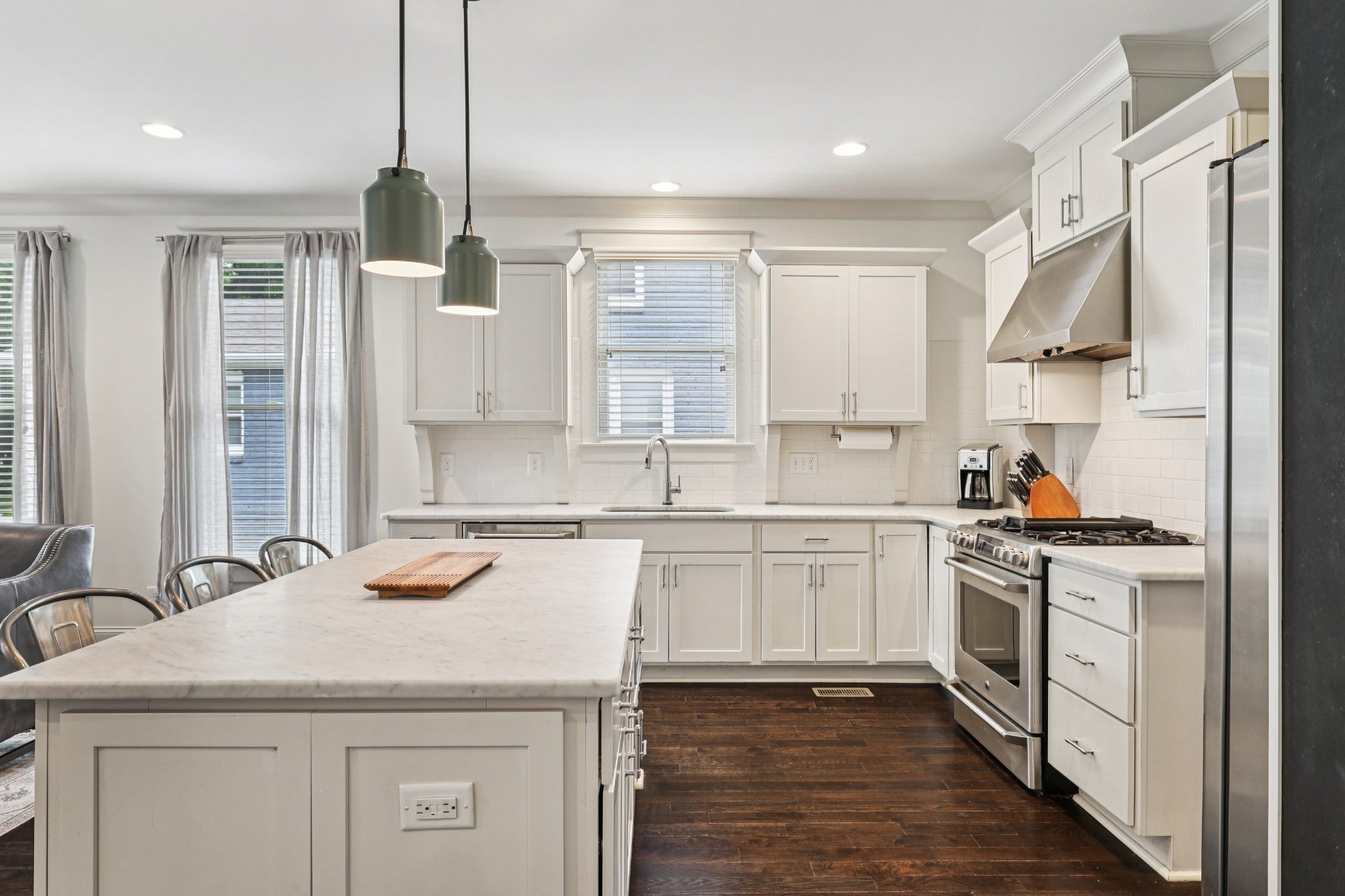 This spacious single family home on a generously sized lot presents a unique opportunity for living large in 12South! From the circular driveway to the gated rear entry, 2809 Vaulx offers amenities rarely available in the neighborhood. Tall ceilings are set off by a striking stone fireplace in the great room, connecting seamlessly to the elegant kitchen with marble counters. The layout offers a separate formal dining room with butler's pantry with an office and primary suite on the main level. Upstairs is a large bonus room, two bedrooms with a jack-n-jill bath, and a fourth bedroom with its own bath.