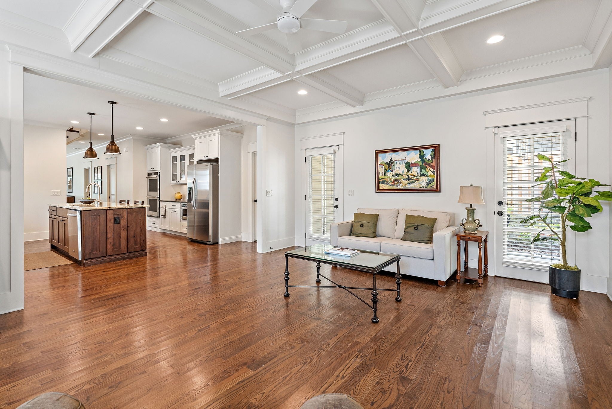 - Bookcases, Built-in Features, Ceiling Fan(s), Extra Closets, Open Floorplan, Redecorated, Walk-In Closet(s), Kitchen Island