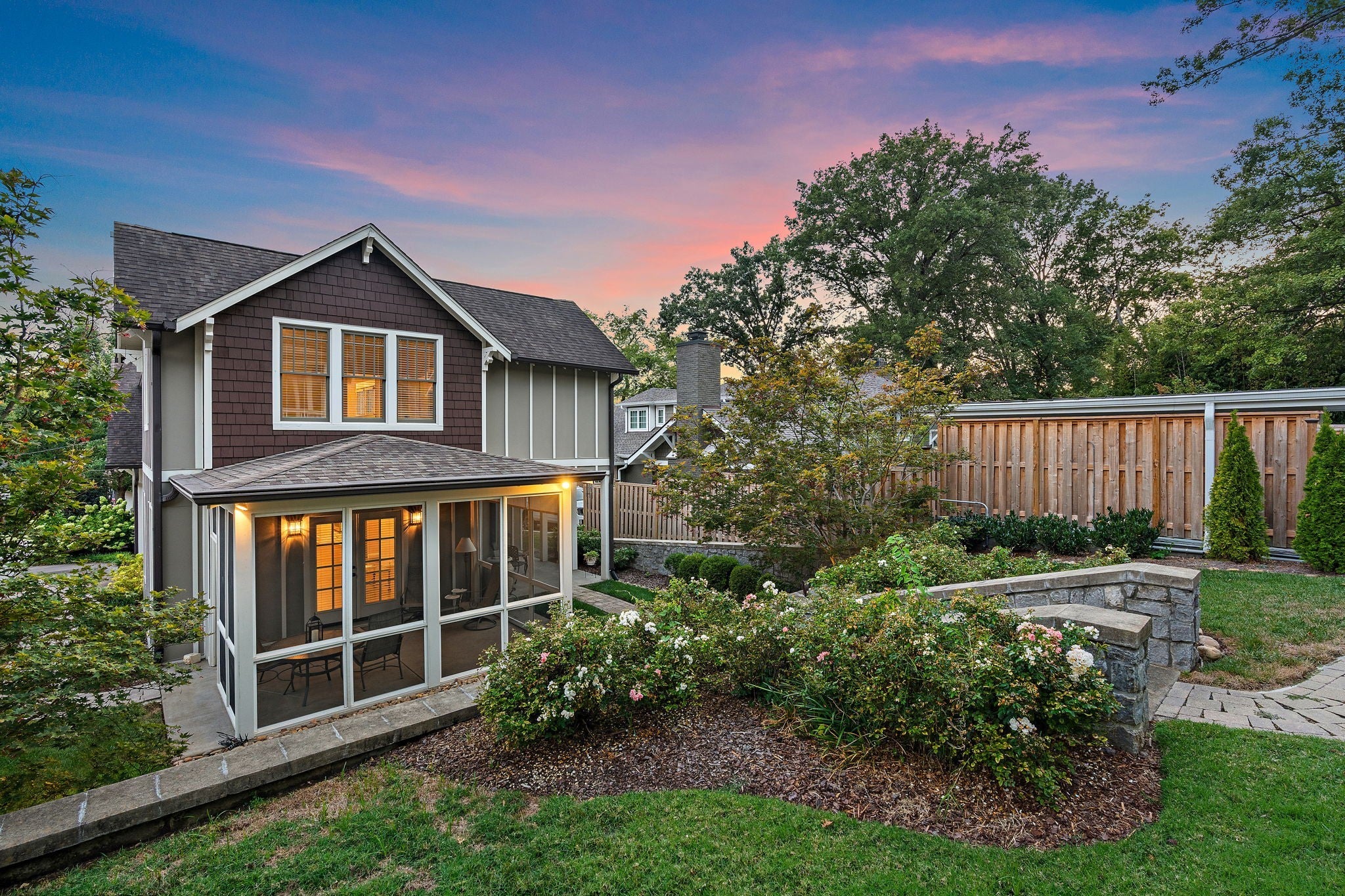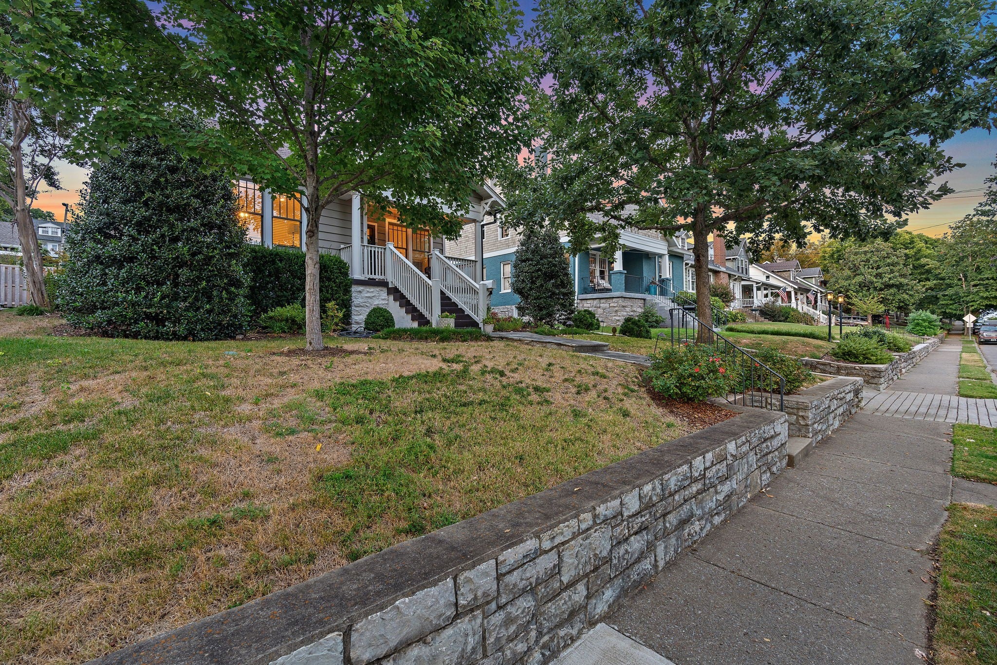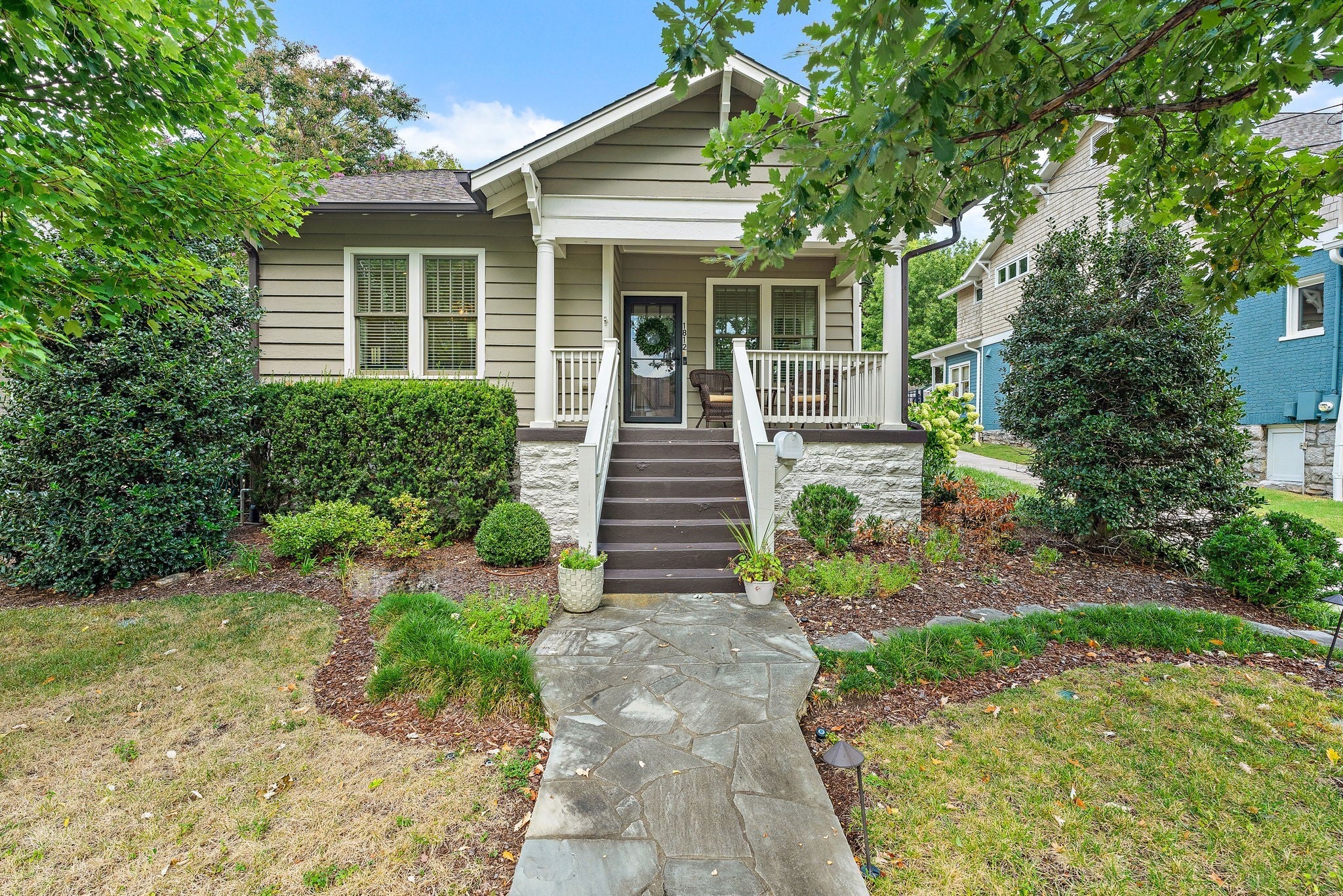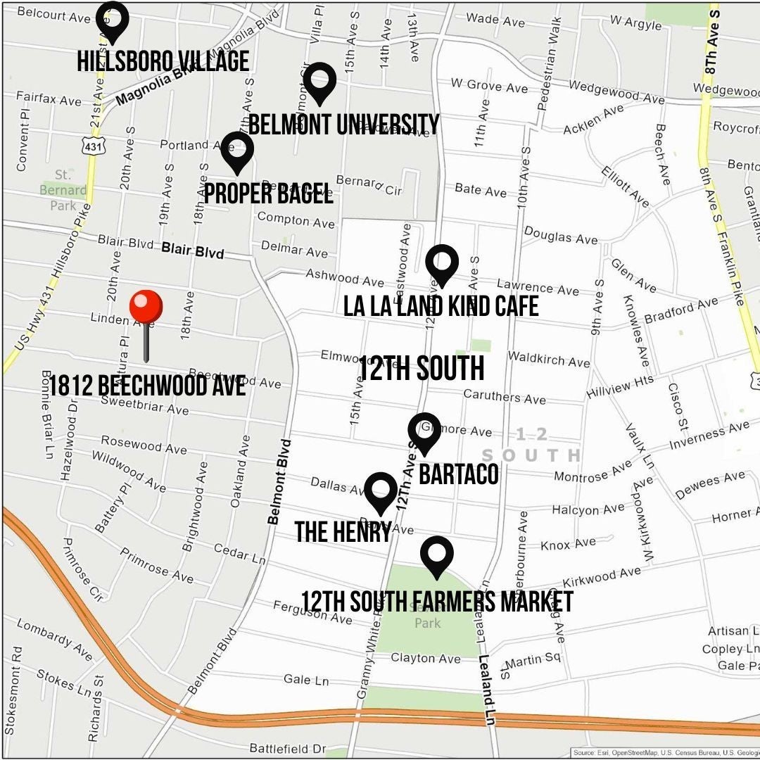 Walkable to 12th South, Hillsboro Village, and so much more, this updated Craftsman style home offers well-planned space with excellent flow and has been meticulously maintained in pristine condition. The main level features a primary suite with a spacious bath including double vanities, a free-standing soaking tub, large shower, and a walk-in closet with natural light. An adjacent room provides flexibility as a study, nursery, or additional living space. The kitchen includes a Dacor 5-burner gas cooktop, KitchenAid double oven and dishwasher, side-by-side refrigerator/freezer, and an oversized island with seating. The kitchen opens to the family room with coffered ceiling and French doors leading to a screened porch and a second covered side porch. A large dining and sitting area, beautiful millwork, and hardwood floors throughout most of the home complete the main level. Upstairs offers three bedrooms, one with en-suite bath, a second full bath, and a spacious flex room that can serve as a bonus room or optional bedroom. An oversized hallway includes an alcove ideal for a home office, plus abundant walk-in attic storage. The beautifully landscaped tiered backyard features a stone path leading to a two-car carport with storage and alley access. Additional off-street parking with step-free entry is also available. If you're looking for the perfect blend of location and charm, this is it. Sidewalks guide you to restaurants, grocery, and shopping. Also, you are minutes from interstate access, Green Hills, Vanderbilt, Belmont and more!