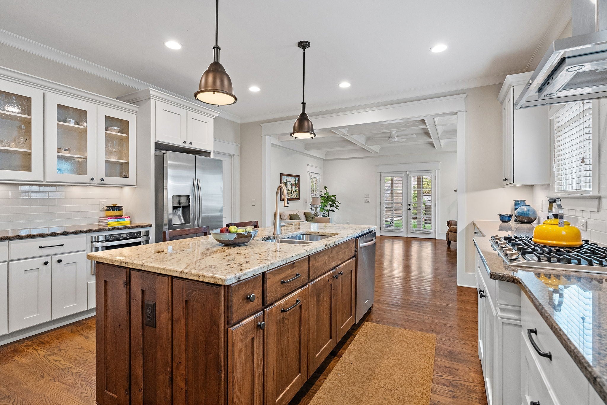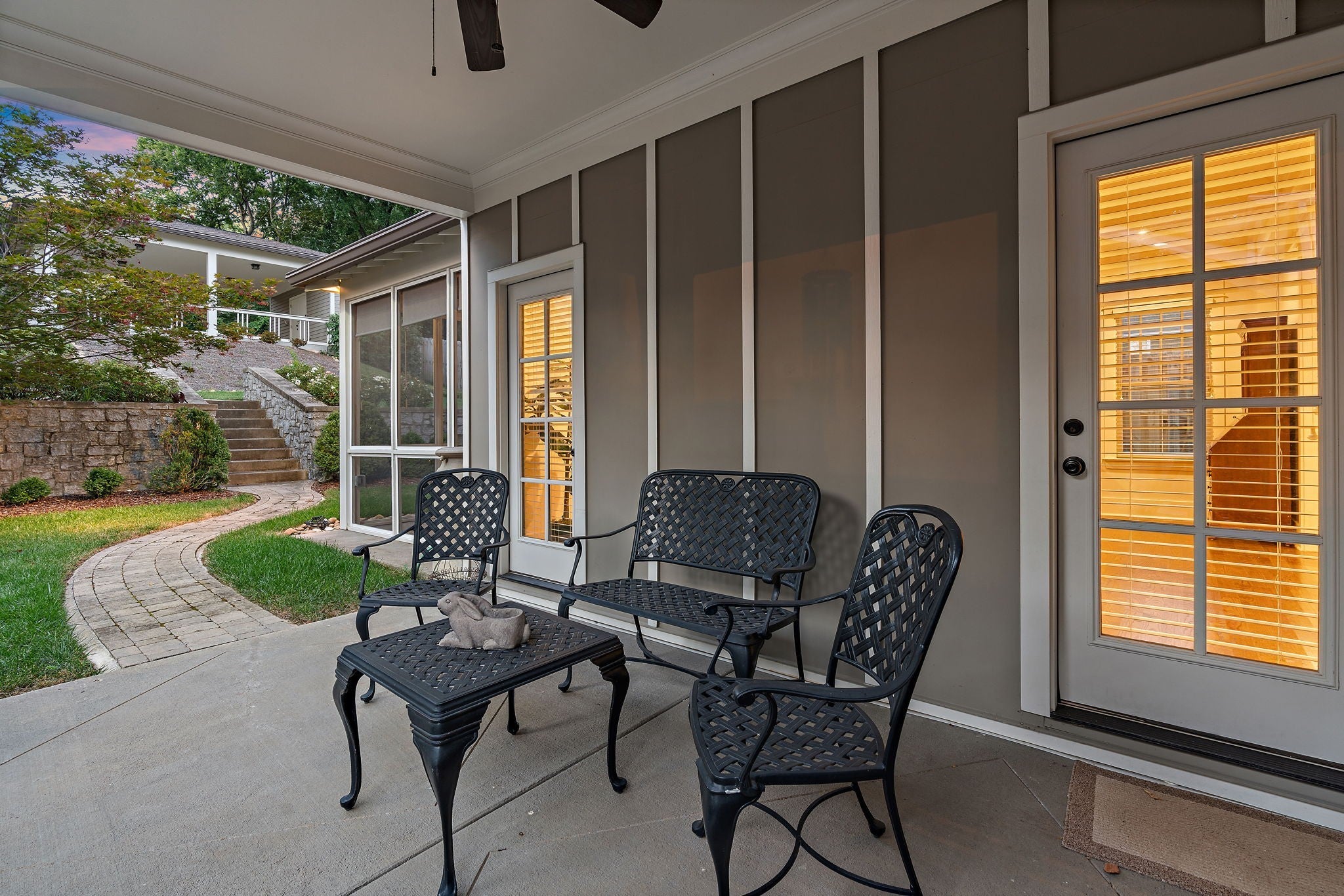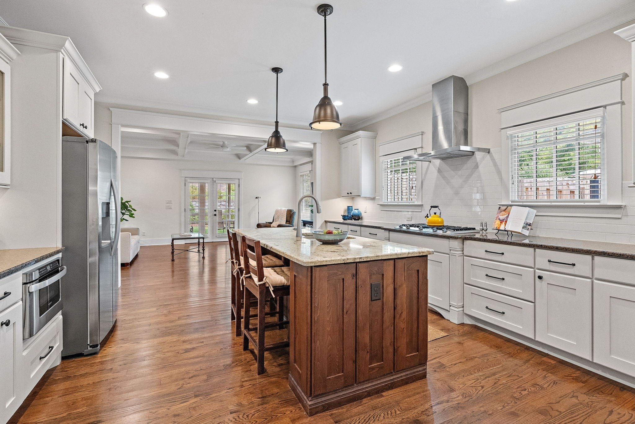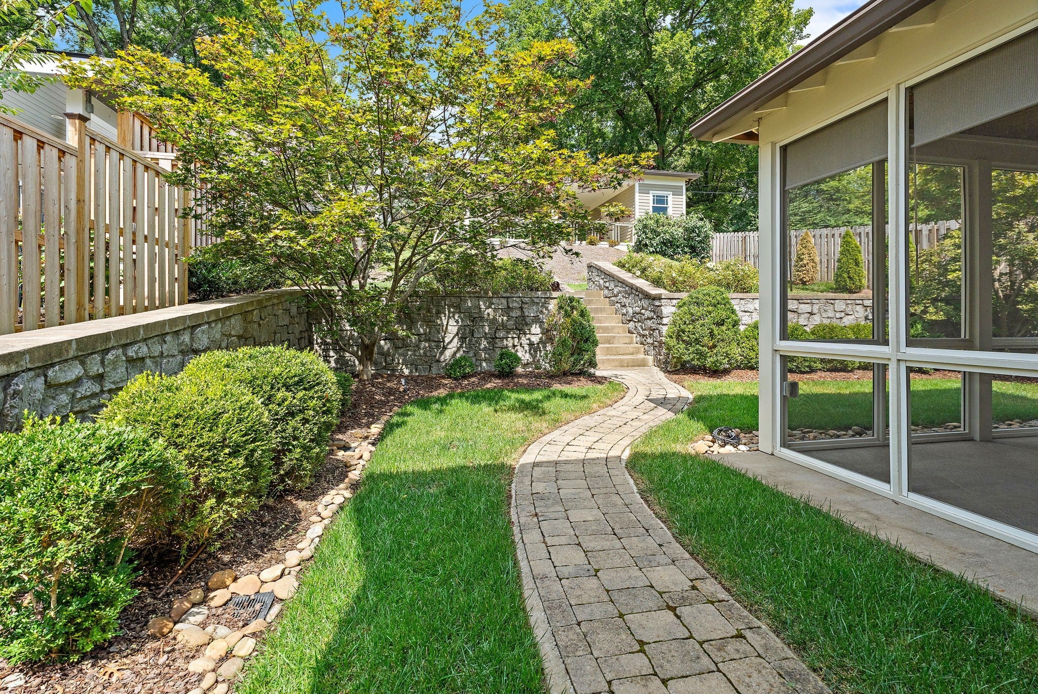 Walkable to 12th South, Hillsboro Village, and so much more, this updated Craftsman style home offers well-planned space with excellent flow and has been meticulously maintained in pristine condition. The main level features a primary suite with a spacious bath including double vanities, a free-standing soaking tub, large shower, and a walk-in closet with natural light. An adjacent room provides flexibility as a study, nursery, or additional living space. The kitchen includes a Dacor 5-burner gas cooktop, KitchenAid double oven and dishwasher, side-by-side refrigerator/freezer, and an oversized island with seating. The kitchen opens to the family room with coffered ceiling and French doors leading to a screened porch and a second covered side porch. A large dining and sitting area, beautiful millwork, and hardwood floors throughout most of the home complete the main level. Upstairs offers three bedrooms, one with en-suite bath, a second full bath, and a spacious flex room that can serve as a bonus room or optional bedroom. An oversized hallway includes an alcove ideal for a home office, plus abundant walk-in attic storage. The beautifully landscaped tiered backyard features a stone path leading to a two-car carport with storage and alley access. Additional off-street parking with step-free entry is also available. If you're looking for the perfect blend of location and charm, this is it. Sidewalks guide you to restaurants, grocery, and shopping. Also, you are minutes from interstate access, Green Hills, Vanderbilt, Belmont and more!