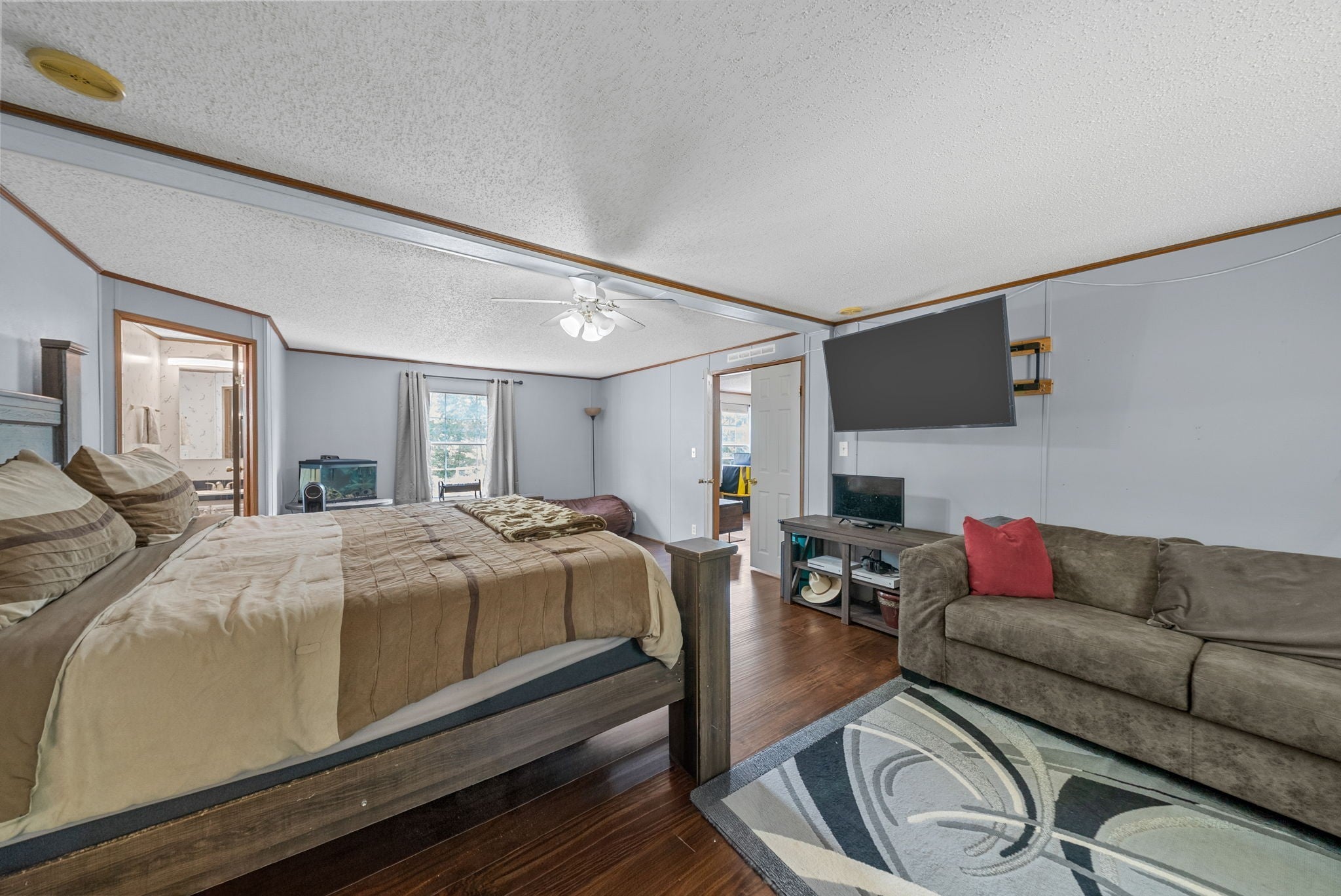 Spacious and inviting, this 3-bedroom, 2-bath manufactured home sits on nearly 2 acres, offering room to spread out inside and out. The split floor plan gives everyone their own space, while the heart of the home features a cozy fireplace and an open layout that’s perfect for gathering. You’ll also love the walk-in pantry, giving you plenty of storage for all your kitchen needs, a breakfast bar and a dining area that makes meal-time easy and convenient! The primary suite is truly a retreat—so spacious it can fit a sitting area—with two walk-in closets and a private bath. Even better, every bedroom in the home has its own walk-in closet, so storage is never an issue.This property combines the best of country living with the comfort of a well-designed home with plenty of land around you. Across the road you'll find a pond and walking trails for the neighborhood to enjoy. Located less than a mile off of Hwy 79 makes it a short commute to Clarksville, Ft Campbell gate 10, & Dover. Don't wait, properties like this don't come along very often.