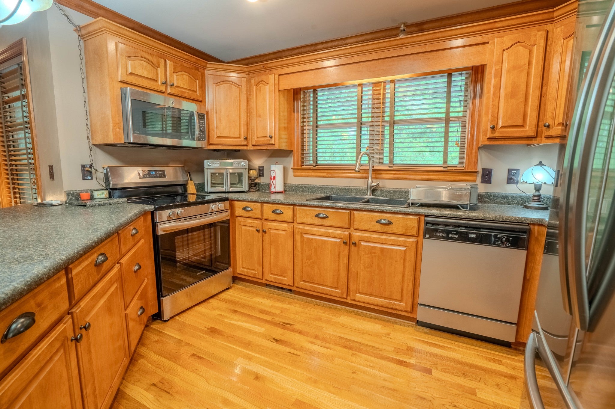 - Electric Oven, Cooktop, Electric Range, Dishwasher, Microwave, Refrigerator, Stainless Steel Appliance(s)
