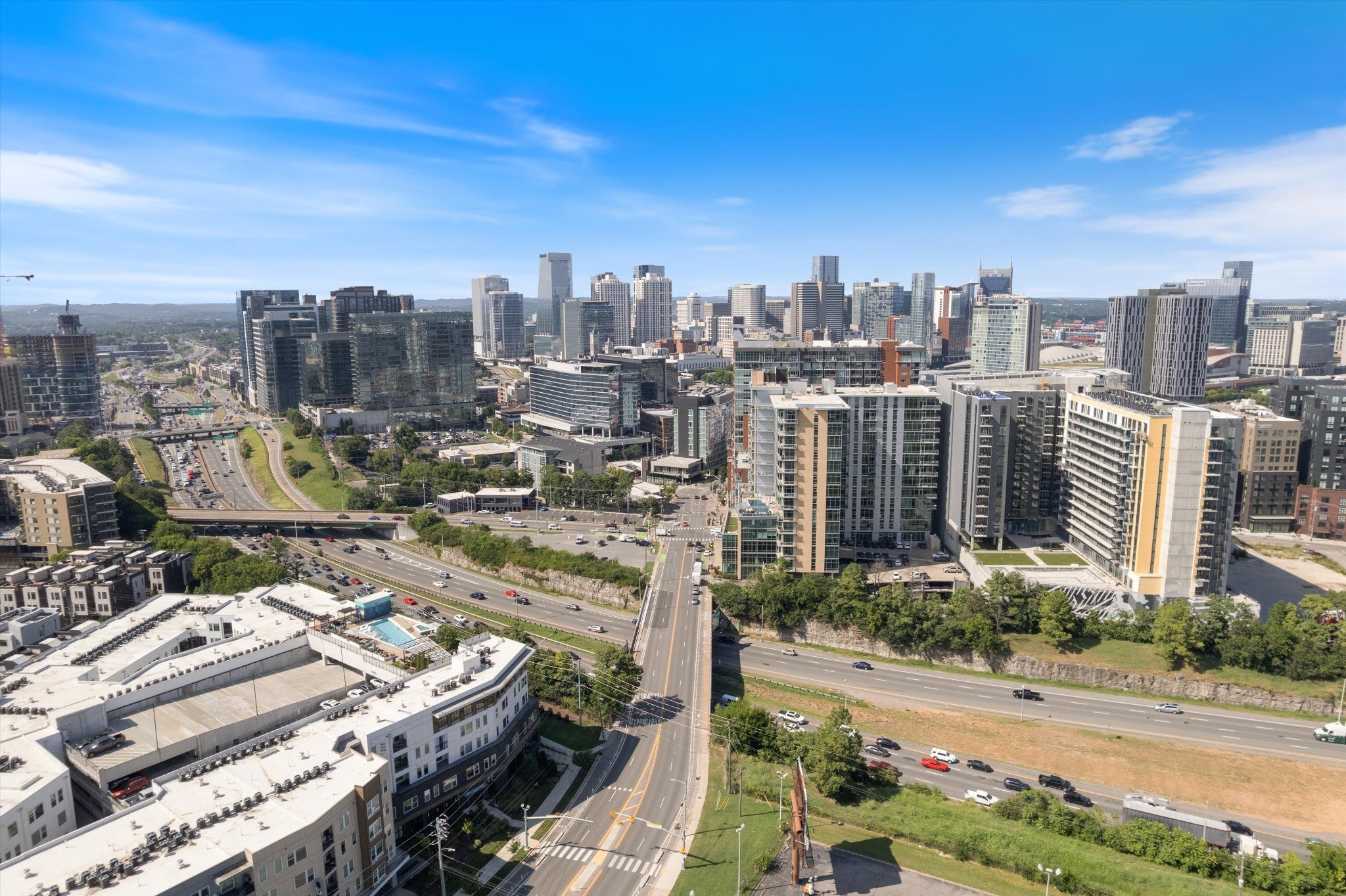 50% off of Terrazzo move in/out fee with executed lease. Discover elevated living in the heart of The Gulch with this rare top-floor residence at Terrazzo. This spacious 2 bedroom, 2.5 bath unit features upgraded ceiling height, an open layout with floor-to-ceiling windows showcasing sweeping views of the rolling Tennessee hills. The modern kitchen flows effortlessly into the dining and living areas, creating an ideal setting for entertaining or quiet evenings at home. Each bedroom offers an en-suite bath and generous closet space, while the primary suite includes a large walk-in closet and spa-like retreat. Terrazzo residents enjoy resort-style amenities just steps away, including a pool, outdoor grills, fire pits, fitness center, and Resident’s Lounge. The building also provides 24/7 concierge service, secure garage parking, and unmatched walkability to world-class dining, shopping, and entertainment. With its premier location, private top-floor setting, and stunning hill views, this home offers a rare opportunity to experience one of Nashville’s most exclusive addresses.