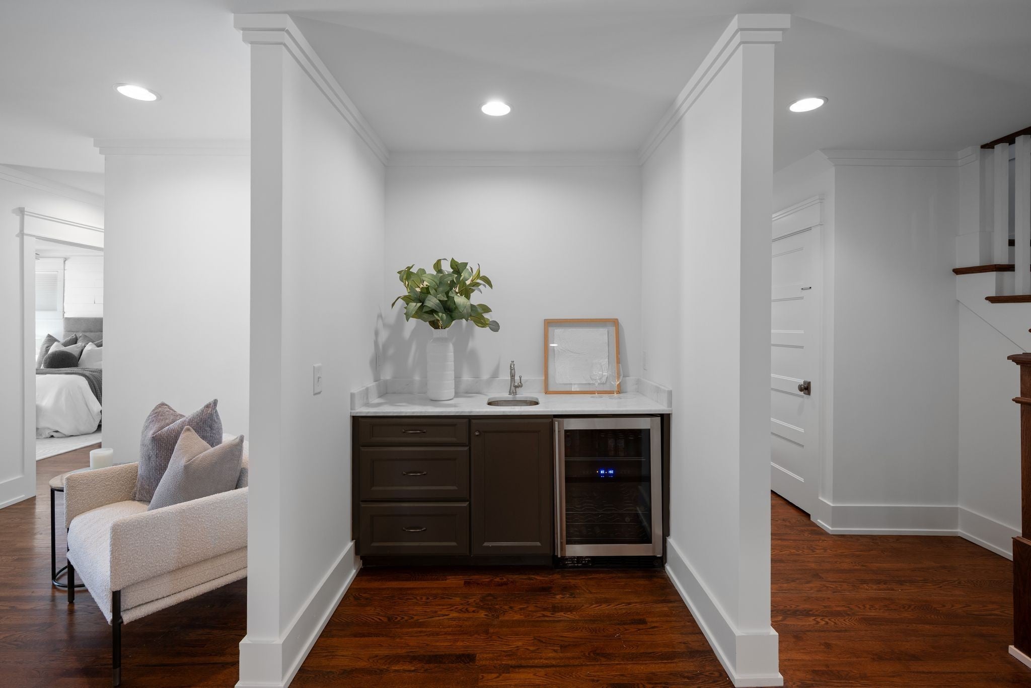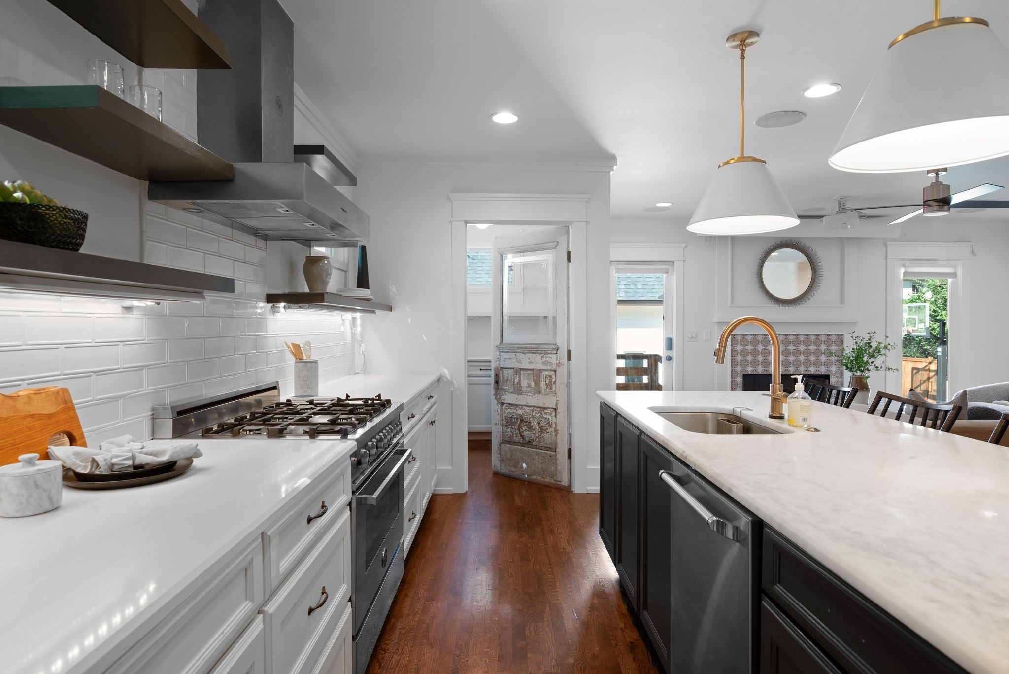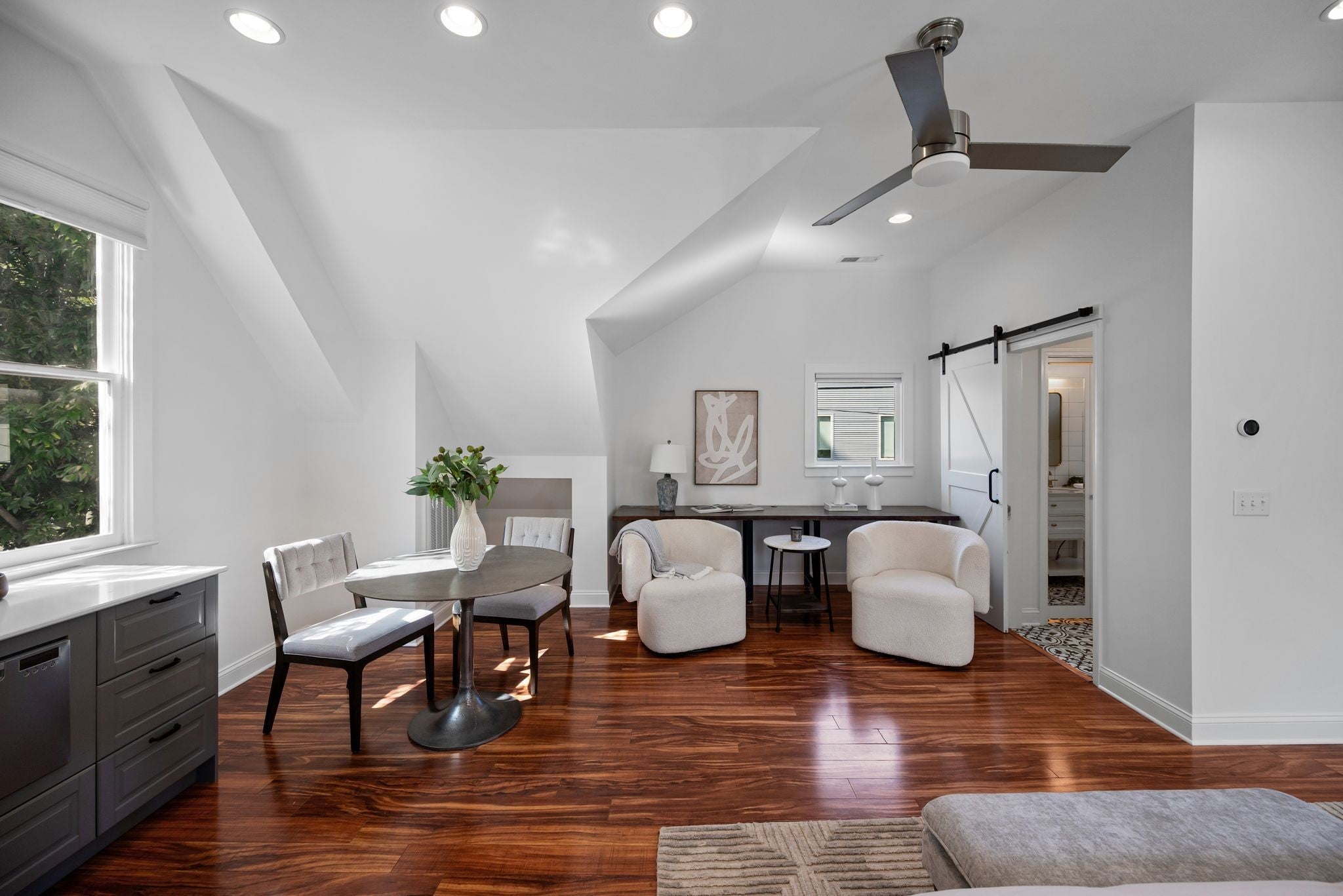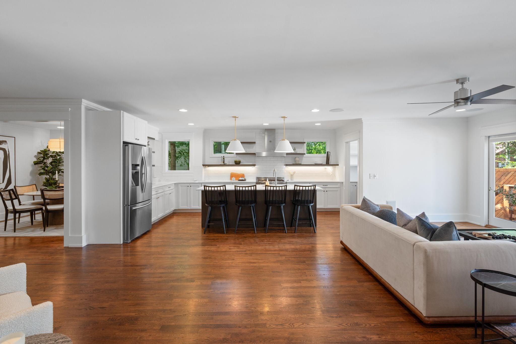 Beautifully renovated historic residence in the heart of walkable Hillsboro West End with that coveted combination of classic charm and contemporary flow.4 bedrooms plus DADU apartment! Front living room with warm hardwood floors leads to an open kitchen, dining, and den area with gas fireplace, thoughtfully designed for casual nights at home or elegant dinner parties. The kitchen sports a large marble island, 36” Bertazzoni range, and a spacious pantry with ample storage. A serene primary suite offers a relaxing retreat with oversized bath complete with a spa-inspired shower, dual separate vanities, and custom walk-in closet. A guest bedroom and full bath are conveniently located on the main level. Upstairs, a flexible bonus room with a wet bar and moveable wall allows for a variety of uses—lounge, home office, or hang space. Two spacious additional bedrooms upstairs, each with walk-in closets and adjoining bath. A versatile hobby room/office includes a Murphy bed and hidden laundry hookups for convenience. Stepping outside the main living area you’ll find a large custom deck with accent fencing, ideal for alfresco entertaining and relaxation. The fully air-conditioned 2 car garage features showroom-quality epoxy flooring, frosted glass garage doors, and a convenient half bath.. and above the garage is a gorgeous, sun splashed apartment with kitchen and luxe bath. The expansive yard provides a sport court with a basketball goal and plenty of room for a pool. Additional amenities include a living room projector with surround sound and retractable screen, whole-home smart lighting, in-ceiling speakers throughout, a spacious basement with extra storage and laundry, landscape lighting, and a delightful side porch with swing!