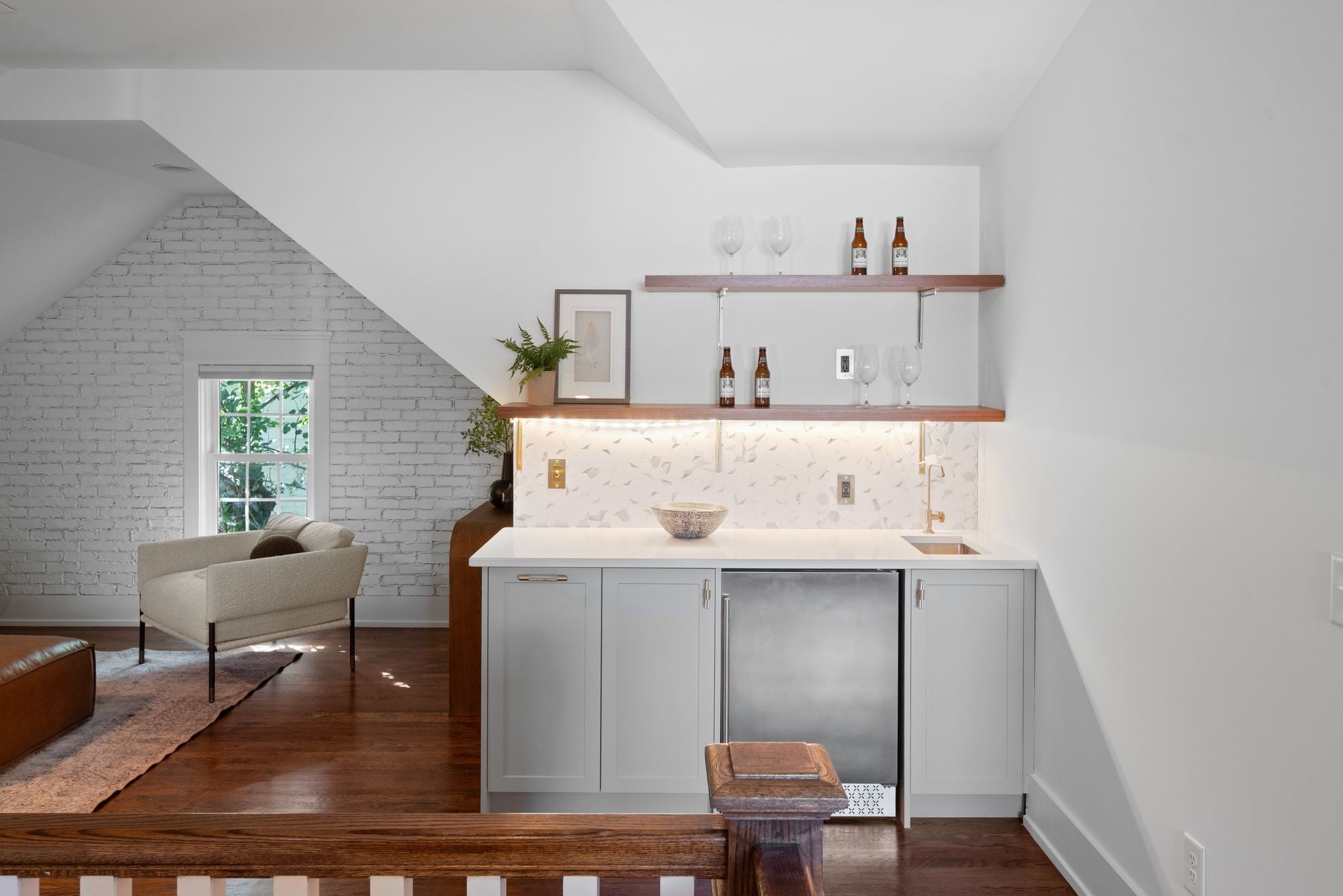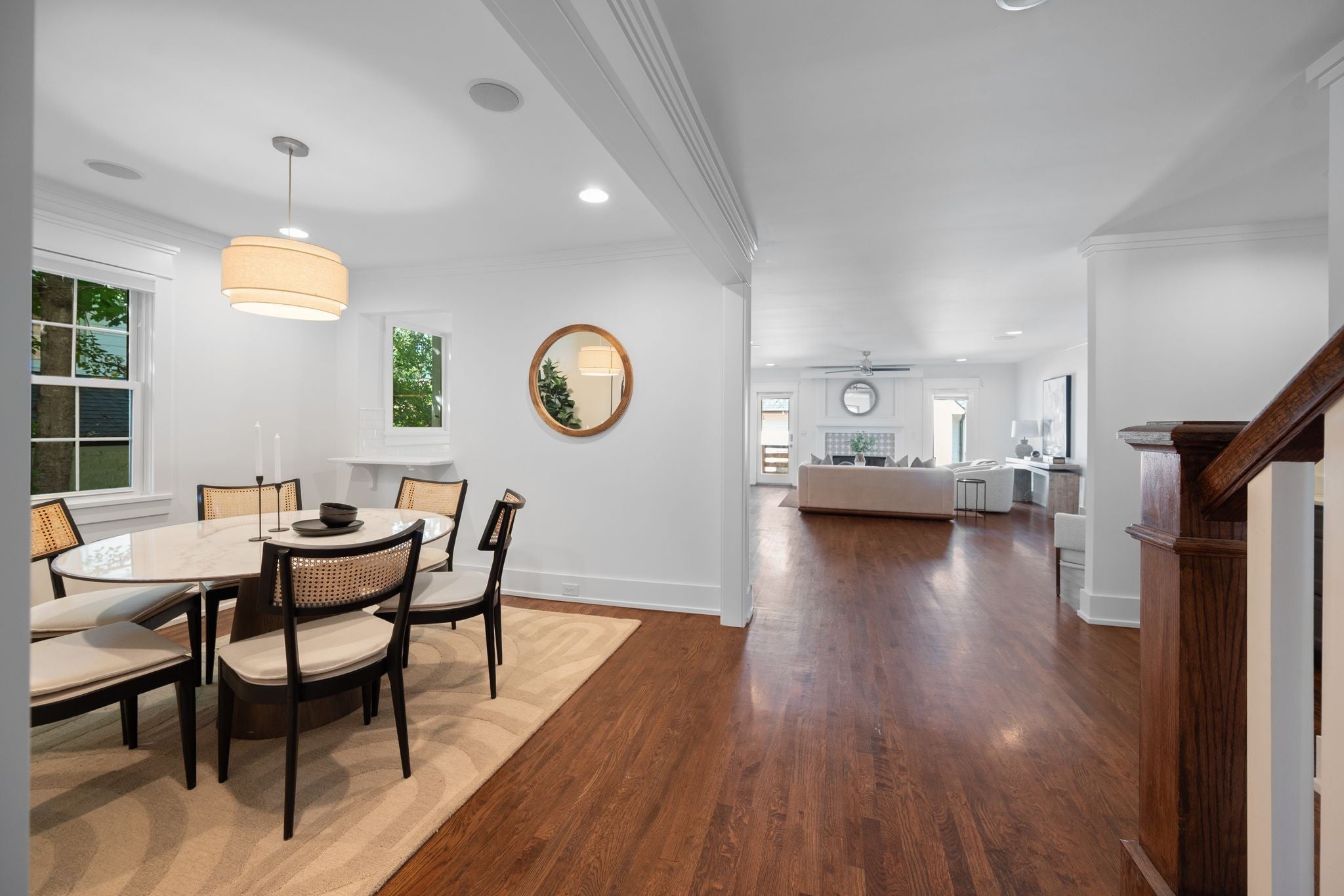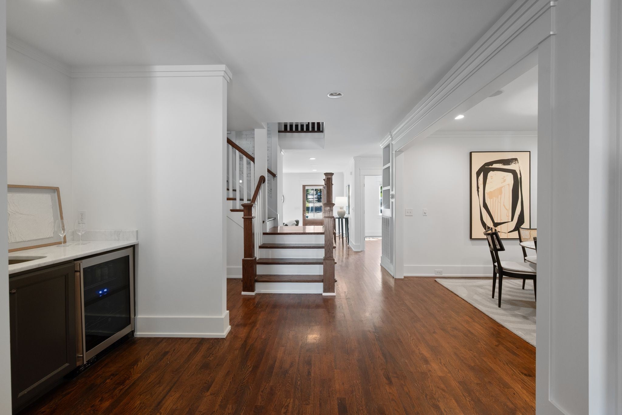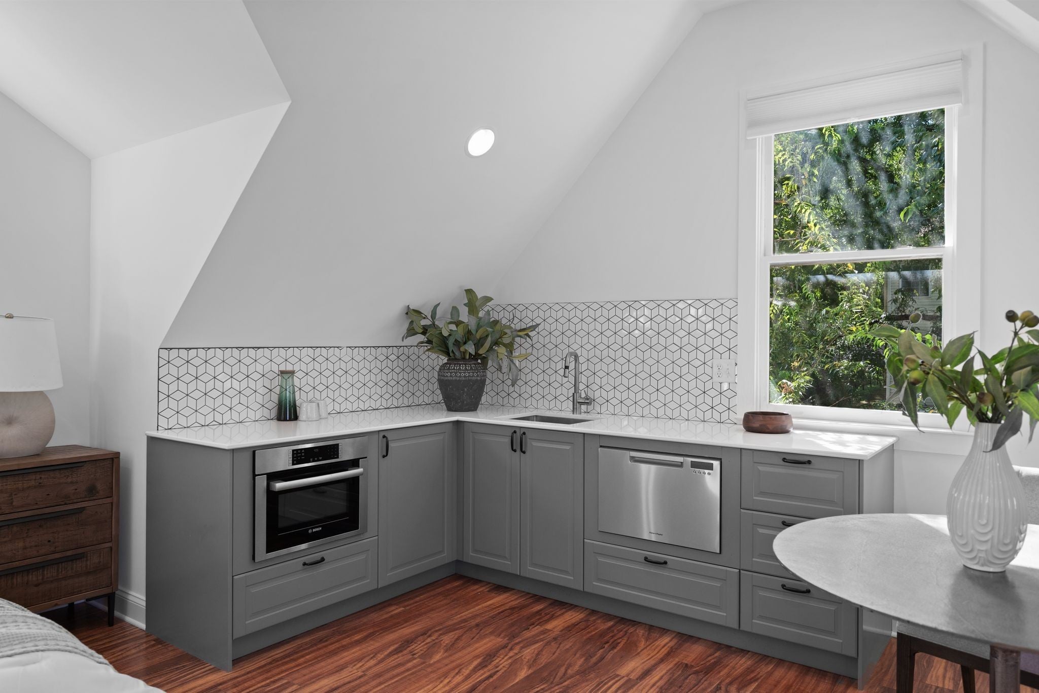 Beautifully renovated historic residence in the heart of walkable Hillsboro West End with that coveted combination of classic charm and contemporary flow.4 bedrooms plus DADU apartment! Front living room with warm hardwood floors leads to an open kitchen, dining, and den area with gas fireplace, thoughtfully designed for casual nights at home or elegant dinner parties. The kitchen sports a large marble island, 36” Bertazzoni range, and a spacious pantry with ample storage. A serene primary suite offers a relaxing retreat with oversized bath complete with a spa-inspired shower, dual separate vanities, and custom walk-in closet. A guest bedroom and full bath are conveniently located on the main level. Upstairs, a flexible bonus room with a wet bar and moveable wall allows for a variety of uses—lounge, home office, or hang space. Two spacious additional bedrooms upstairs, each with walk-in closets and adjoining bath. A versatile hobby room/office includes a Murphy bed and hidden laundry hookups for convenience. Stepping outside the main living area you’ll find a large custom deck with accent fencing, ideal for alfresco entertaining and relaxation. The fully air-conditioned 2 car garage features showroom-quality epoxy flooring, frosted glass garage doors, and a convenient half bath.. and above the garage is a gorgeous, sun splashed apartment with kitchen and luxe bath. The expansive yard provides a sport court with a basketball goal and plenty of room for a pool. Additional amenities include a living room projector with surround sound and retractable screen, whole-home smart lighting, in-ceiling speakers throughout, a spacious basement with extra storage and laundry, landscape lighting, and a delightful side porch with swing!