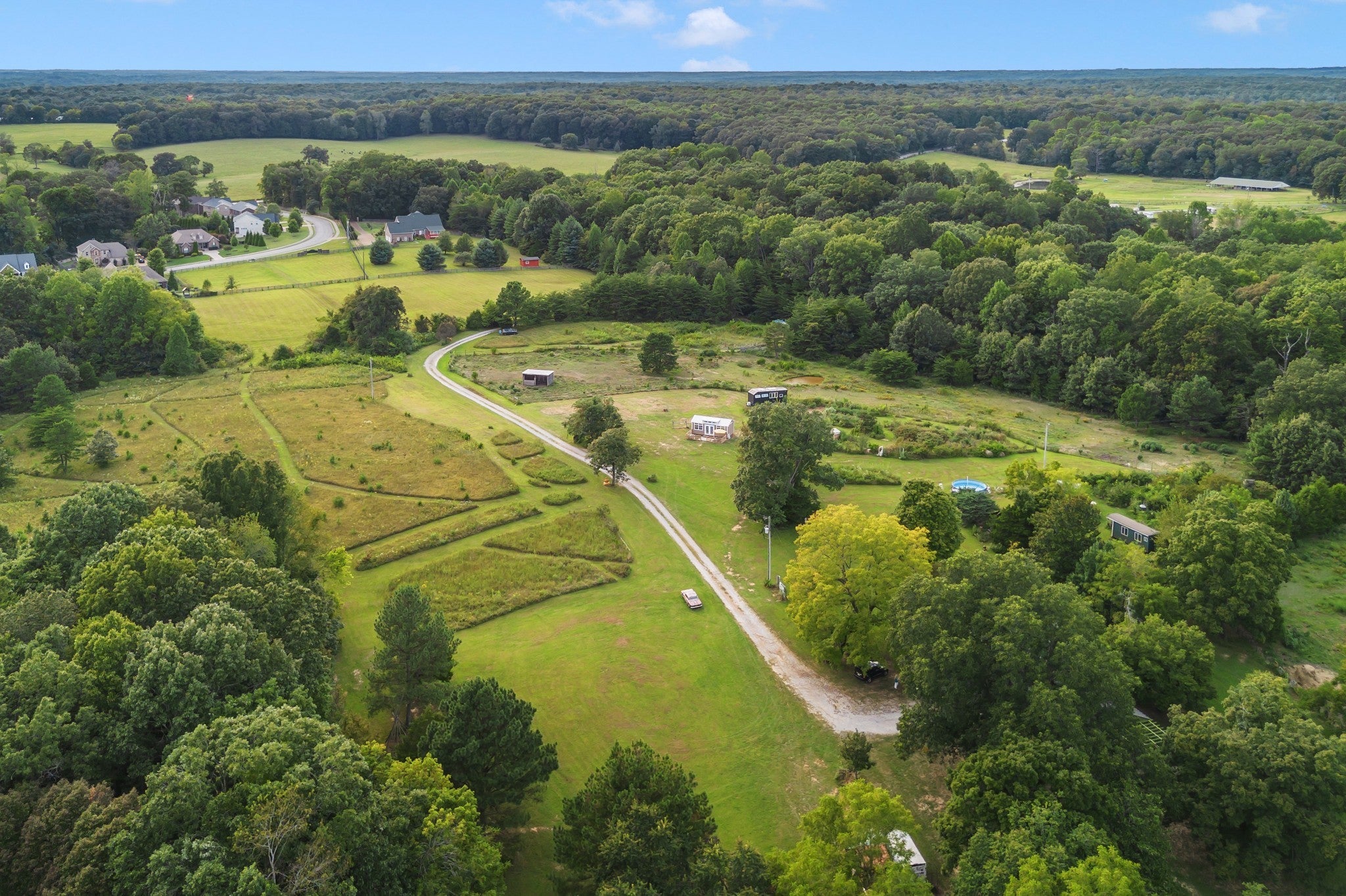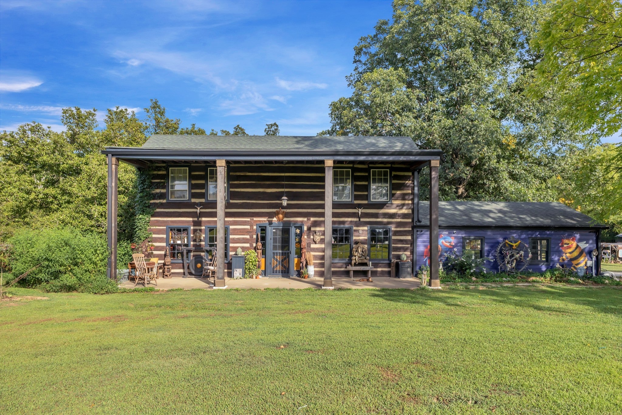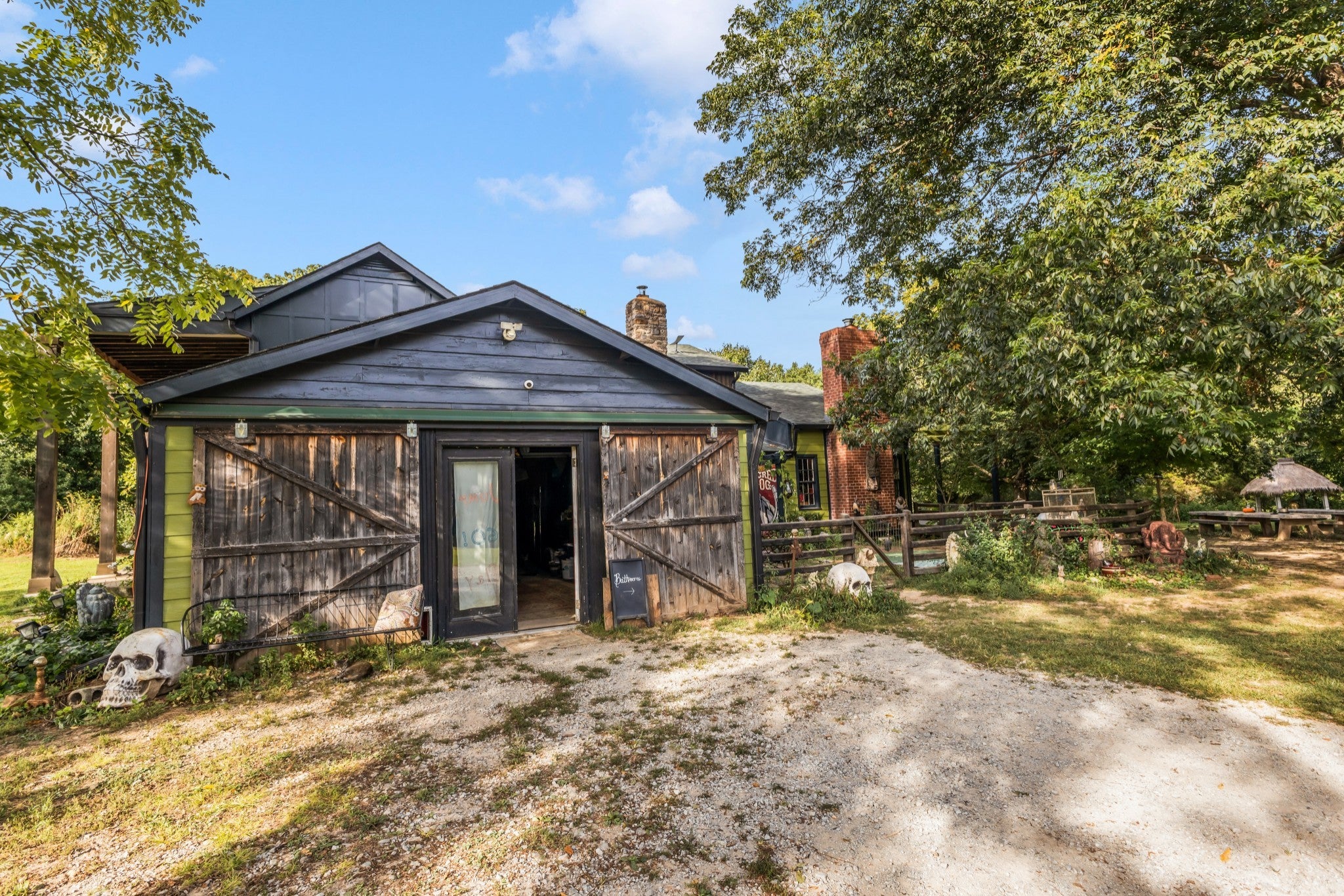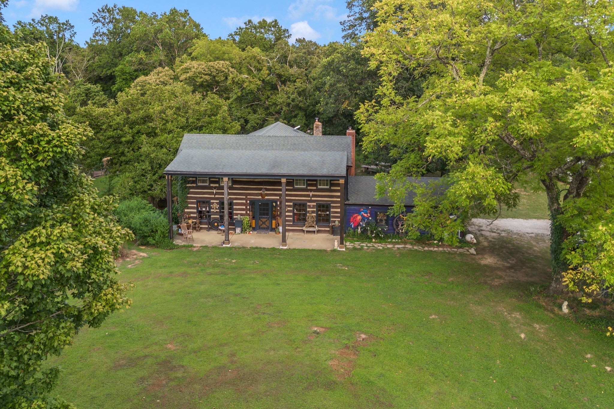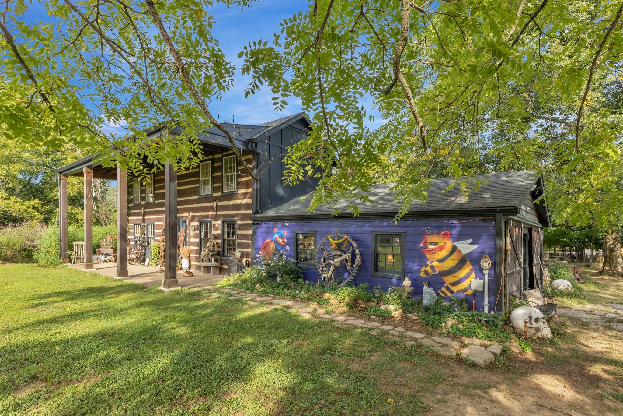 RARE opportunity to own a Historic Williamson County Homestead & Equestrian Estate on 46+ acres—just 25 minutes to downtown Nashville and 12 minutes to Bellevue via I-40. This multi-era log cabin is truly one-of-a-kind: the original front portion dates to 1797, the main addition from 1898 (hearth inscription), and a 1960s rear additioncompletes the home. In total: 5BR/2BA plus recording studio, with recent upgrades including a new water heater, updated electrical, septic, and pipework. Formerly home to Sacred Dog Ranch, the property has gained national attention—featured on HGTV’s Christina Goes to the Country, in Billboard Magazine, and in music videos by Billy Strings, Sierra Ferrell, Alyson Russell, Brittany Howard, Bubba Sparxxx, Yelawolf, Junior Reid, and most recently Dasha. Filming and creative rentals generate approx. $30K annually. Property highlights include a large barn, horse paddocks, fenced pastures, riding trails, greenhouse, and 30,000 sq. ft. of organic gardens with medicinal plants, pollinator banks, and clover pastures. A spring-fed year-round creek, additional creeks, and ponds add sought-after water features. Income-producing elements include guest cabins, rentable tiny homes and campers (some with murals and kitchenettes), and multiple RV hookups, with operational businesses available to convey. Utilities: spring, city, and 2018 well water, ROC solar, and 400-amp power. Greenbelt designation reduces property taxes by approx. 2/3. Perfect for a Tennessee retreat, eco-resort, farm-to-table homestead, intentional community, equestrian estate, or off-the-grid family compound. A rare high-vibrational sanctuary offering legacy, lifestyle, and unmatched opportunity. NO HOA! Motivated sellers seek the next stewards to cherish this sanctuary. See property link for more details on income potential & business operations.