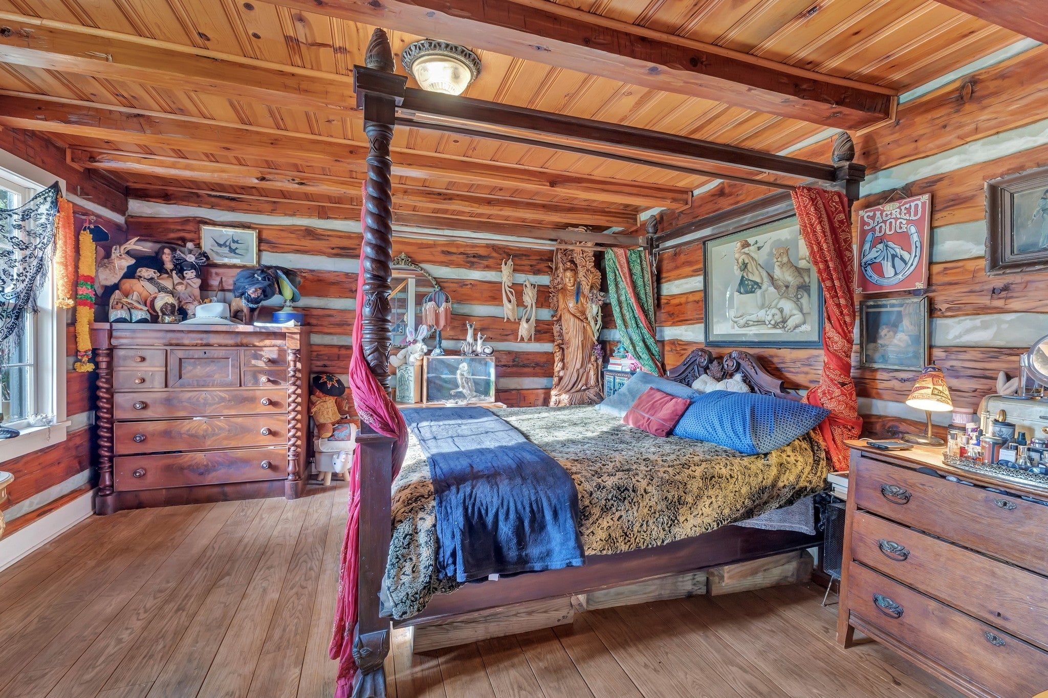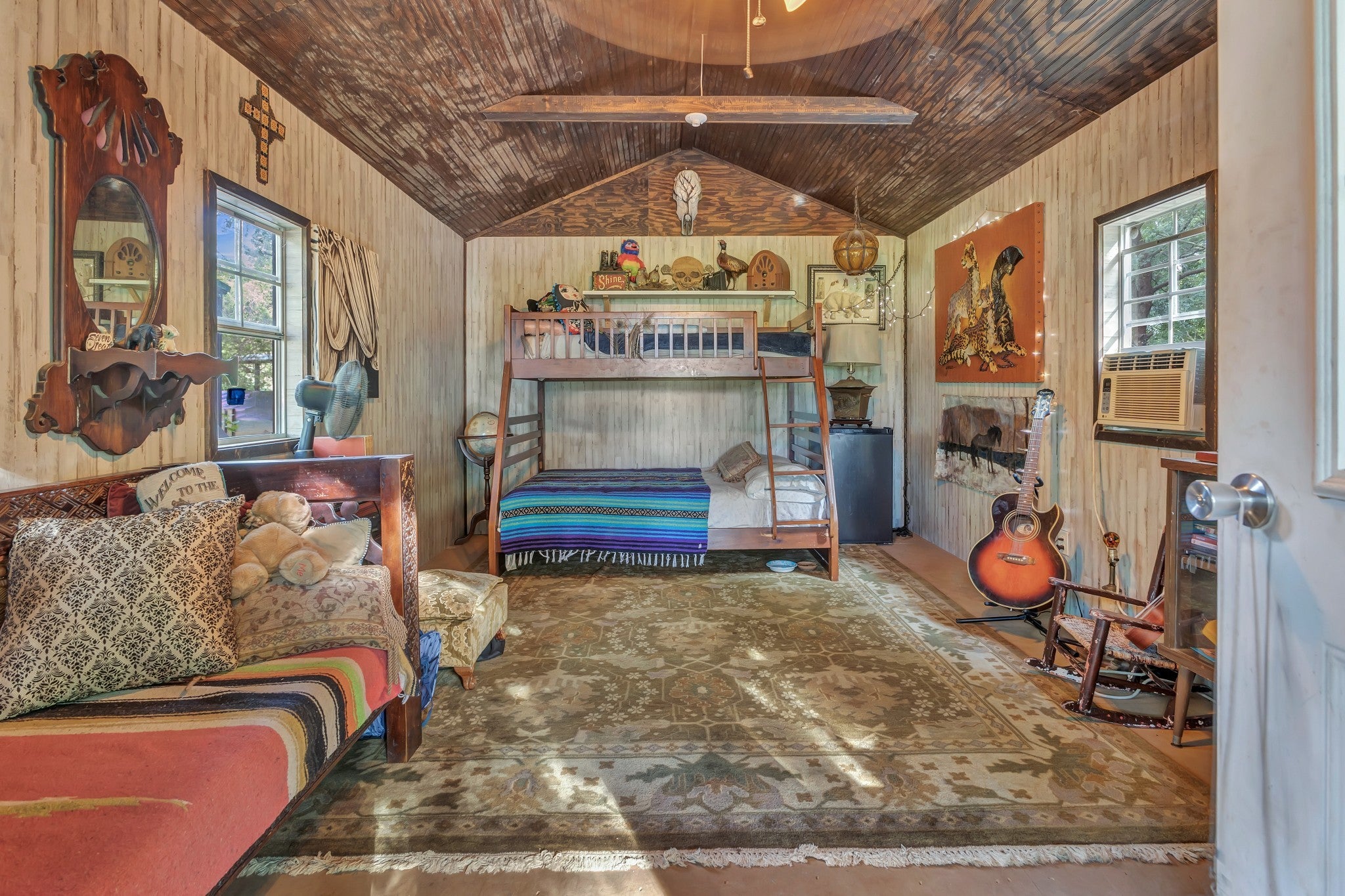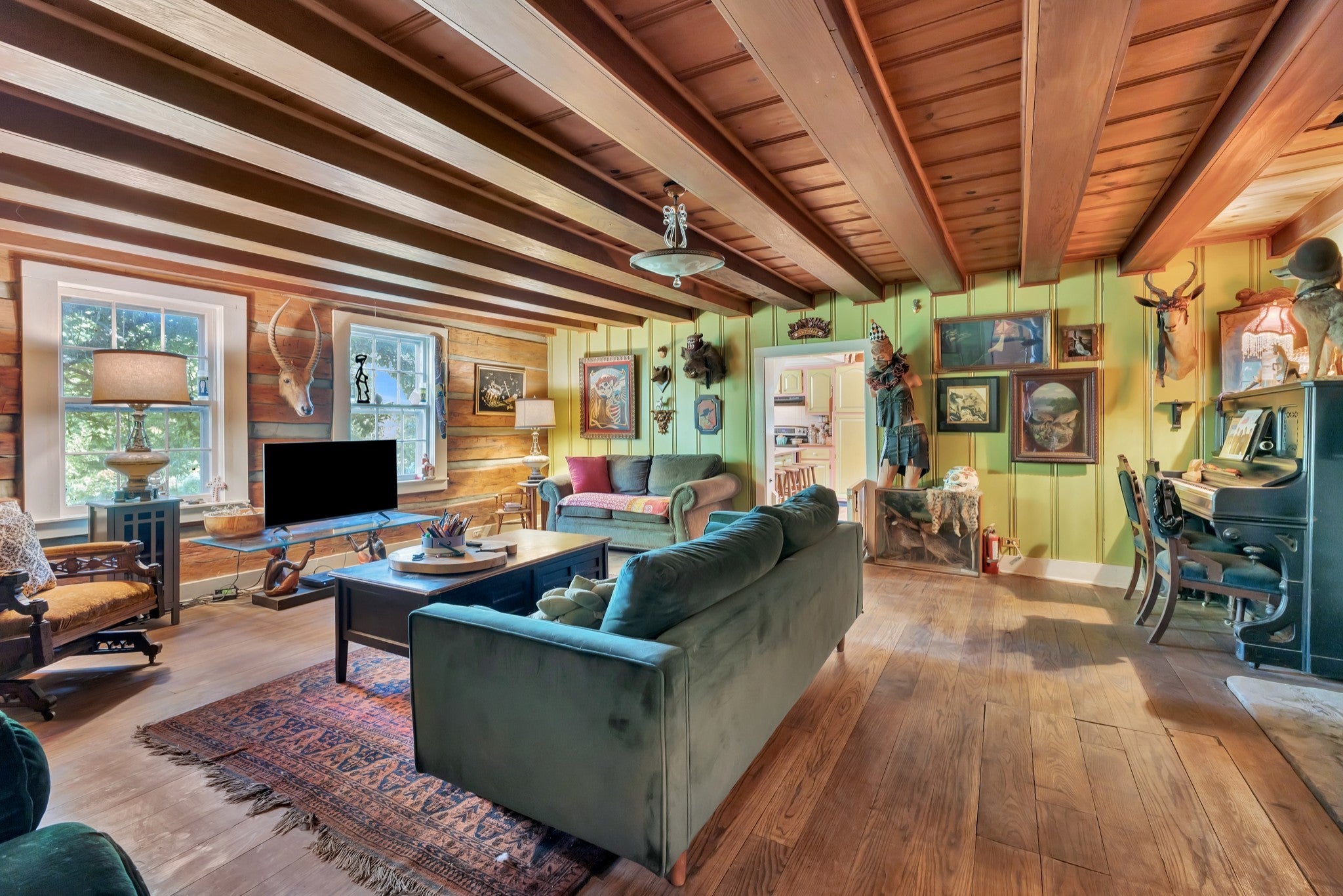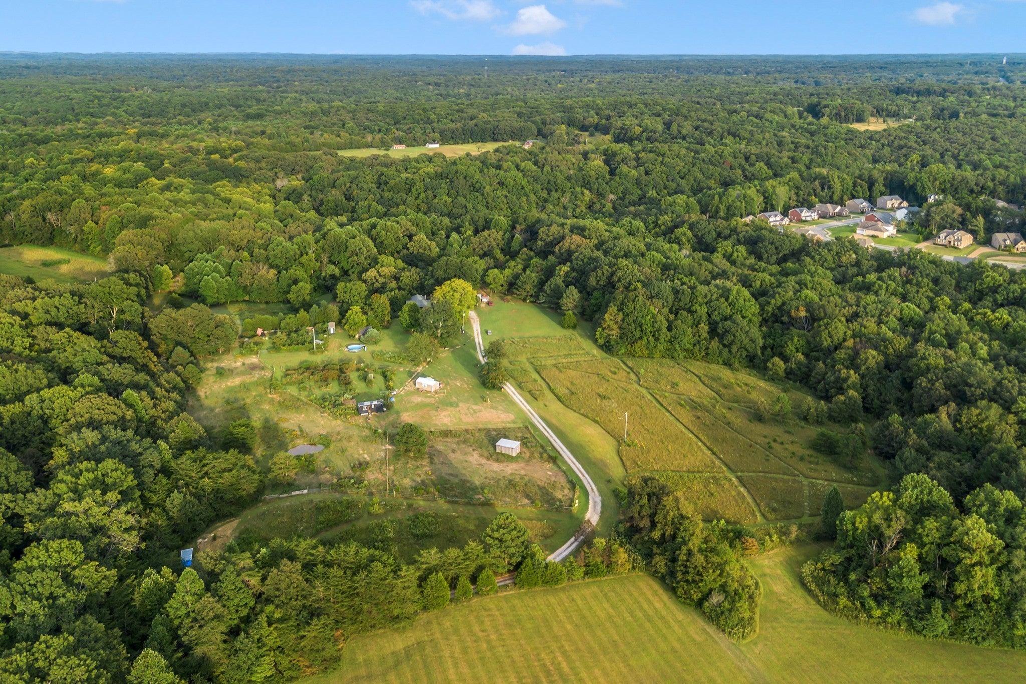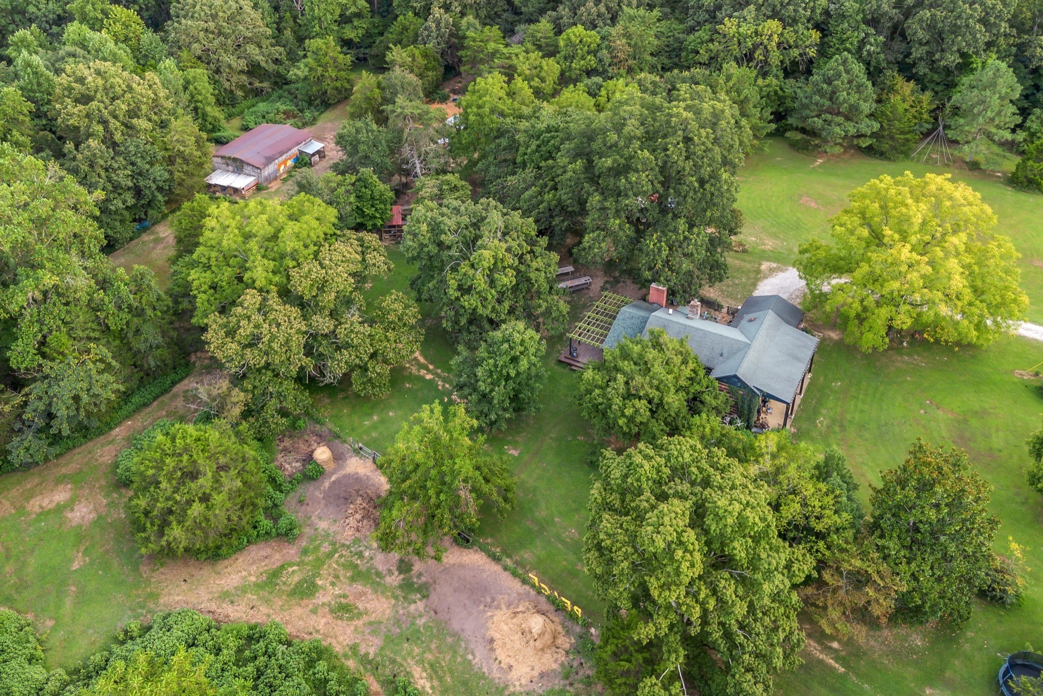 RARE opportunity to own a Historic Williamson County Homestead & Equestrian Estate on 46+ acres—just 25 minutes to downtown Nashville and 12 minutes to Bellevue via I-40. This multi-era log cabin is truly one-of-a-kind: the original front portion dates to 1797, the main addition from 1898 (hearth inscription), and a 1960s rear additioncompletes the home. In total: 5BR/2BA plus recording studio, with recent upgrades including a new water heater, updated electrical, septic, and pipework. Formerly home to Sacred Dog Ranch, the property has gained national attention—featured on HGTV’s Christina Goes to the Country, in Billboard Magazine, and in music videos by Billy Strings, Sierra Ferrell, Alyson Russell, Brittany Howard, Bubba Sparxxx, Yelawolf, Junior Reid, and most recently Dasha. Filming and creative rentals generate approx. $30K annually. Property highlights include a large barn, horse paddocks, fenced pastures, riding trails, greenhouse, and 30,000 sq. ft. of organic gardens with medicinal plants, pollinator banks, and clover pastures. A spring-fed year-round creek, additional creeks, and ponds add sought-after water features. Income-producing elements include guest cabins, rentable tiny homes and campers (some with murals and kitchenettes), and multiple RV hookups, with operational businesses available to convey. Utilities: spring, city, and 2018 well water, ROC solar, and 400-amp power. Greenbelt designation reduces property taxes by approx. 2/3. Perfect for a Tennessee retreat, eco-resort, farm-to-table homestead, intentional community, equestrian estate, or off-the-grid family compound. A rare high-vibrational sanctuary offering legacy, lifestyle, and unmatched opportunity. NO HOA! Motivated sellers seek the next stewards to cherish this sanctuary. See property link for more details on income potential & business operations.